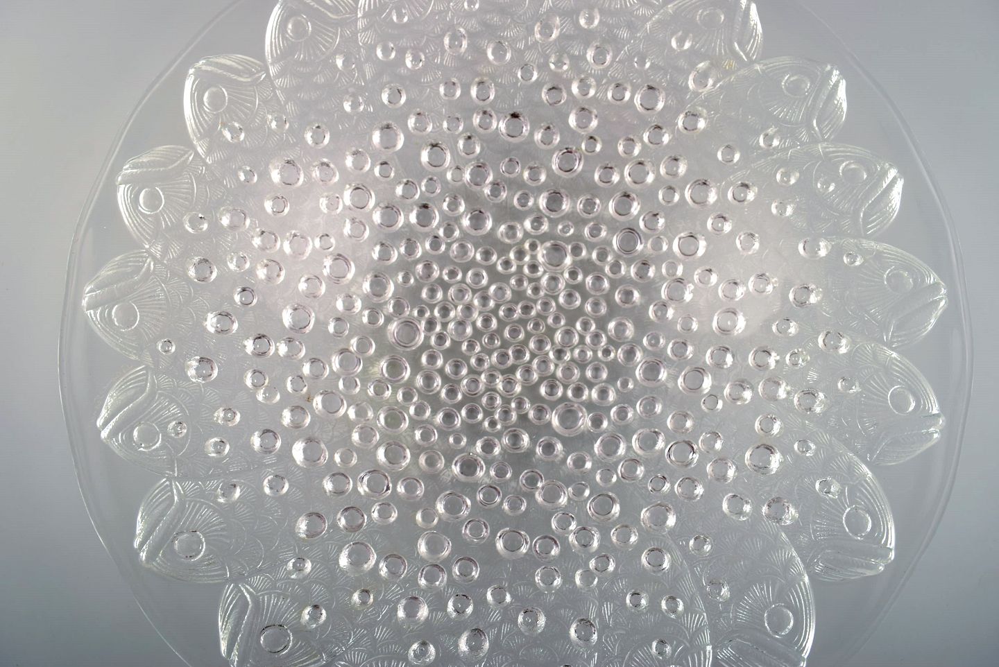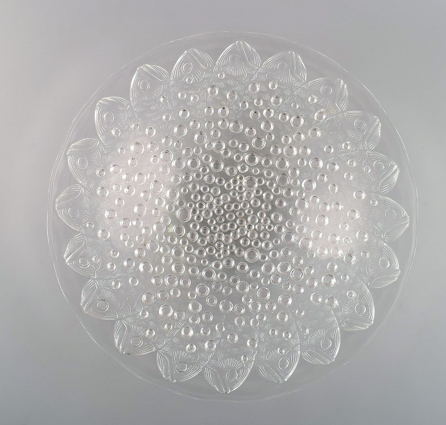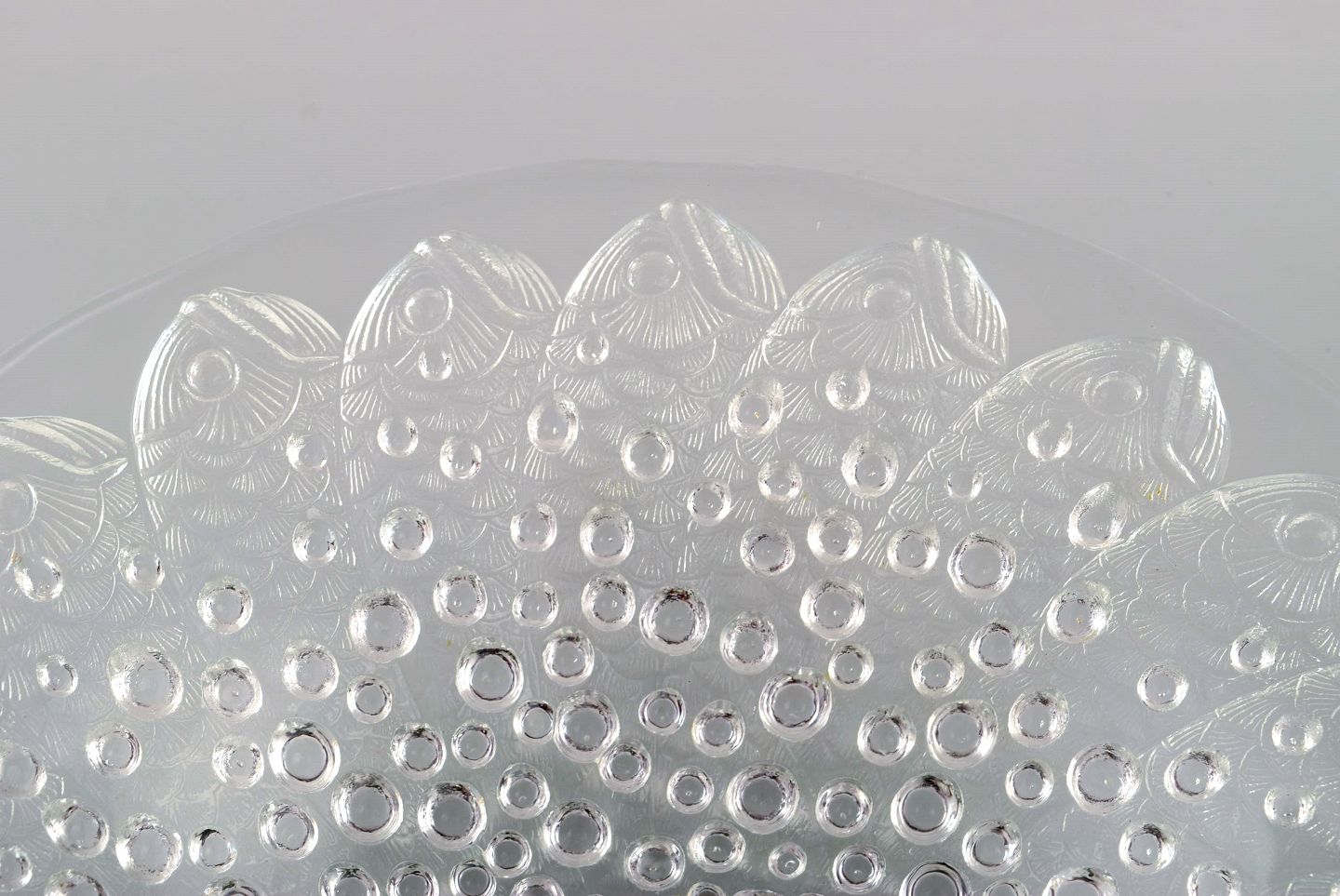 Stor René Lalique "Roscoff" skål dekoreret med fisk. Midt 1900-tallet. Måler: 35 x 7 cm. I flot stand. Signeret.
