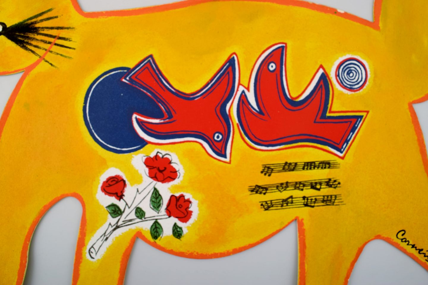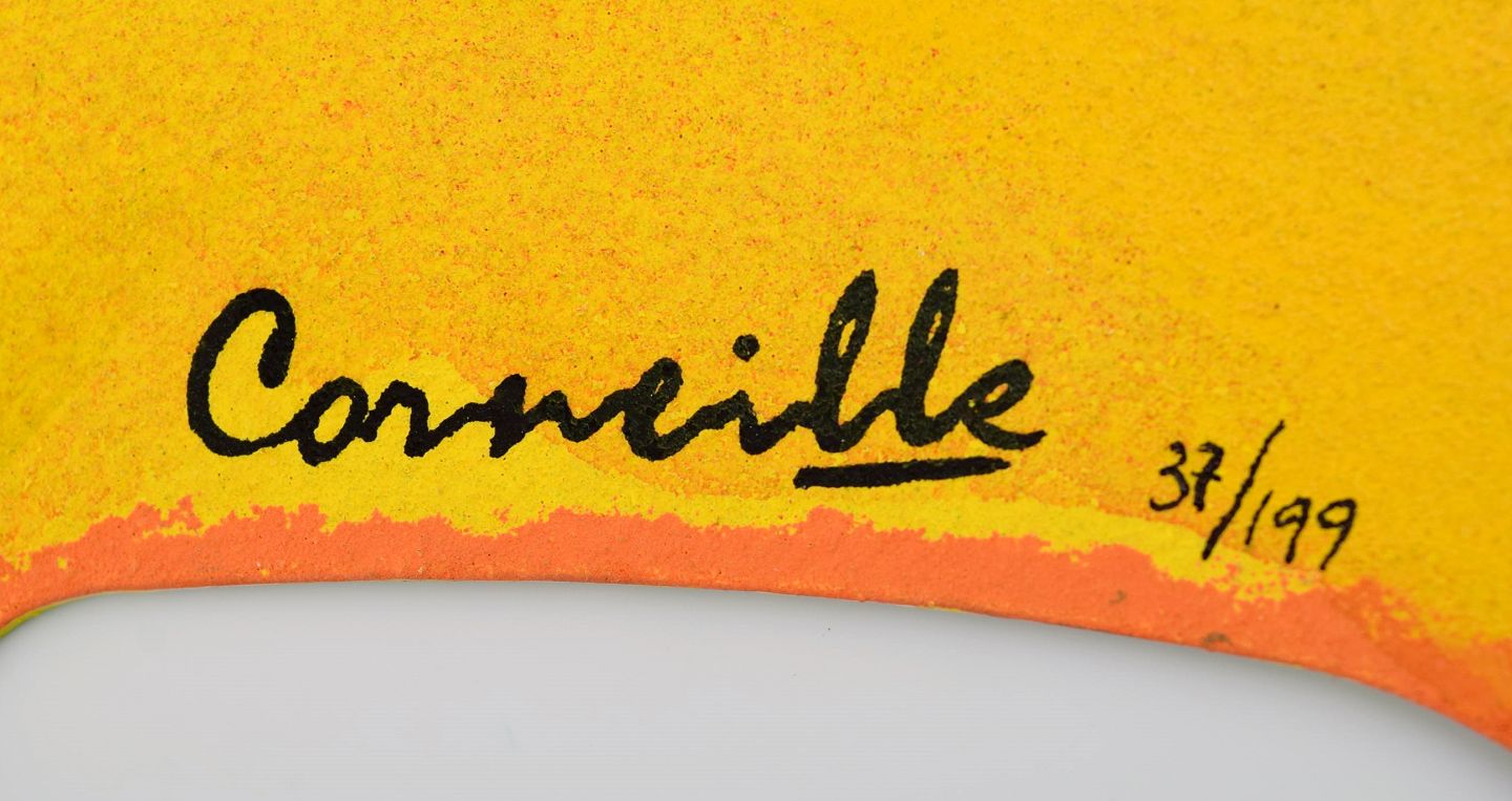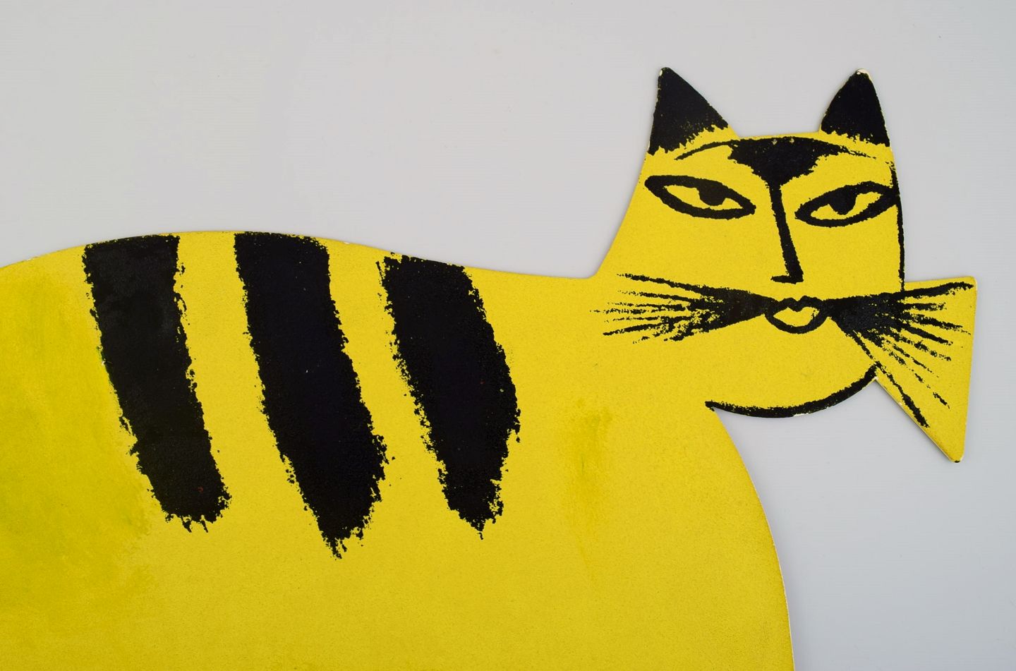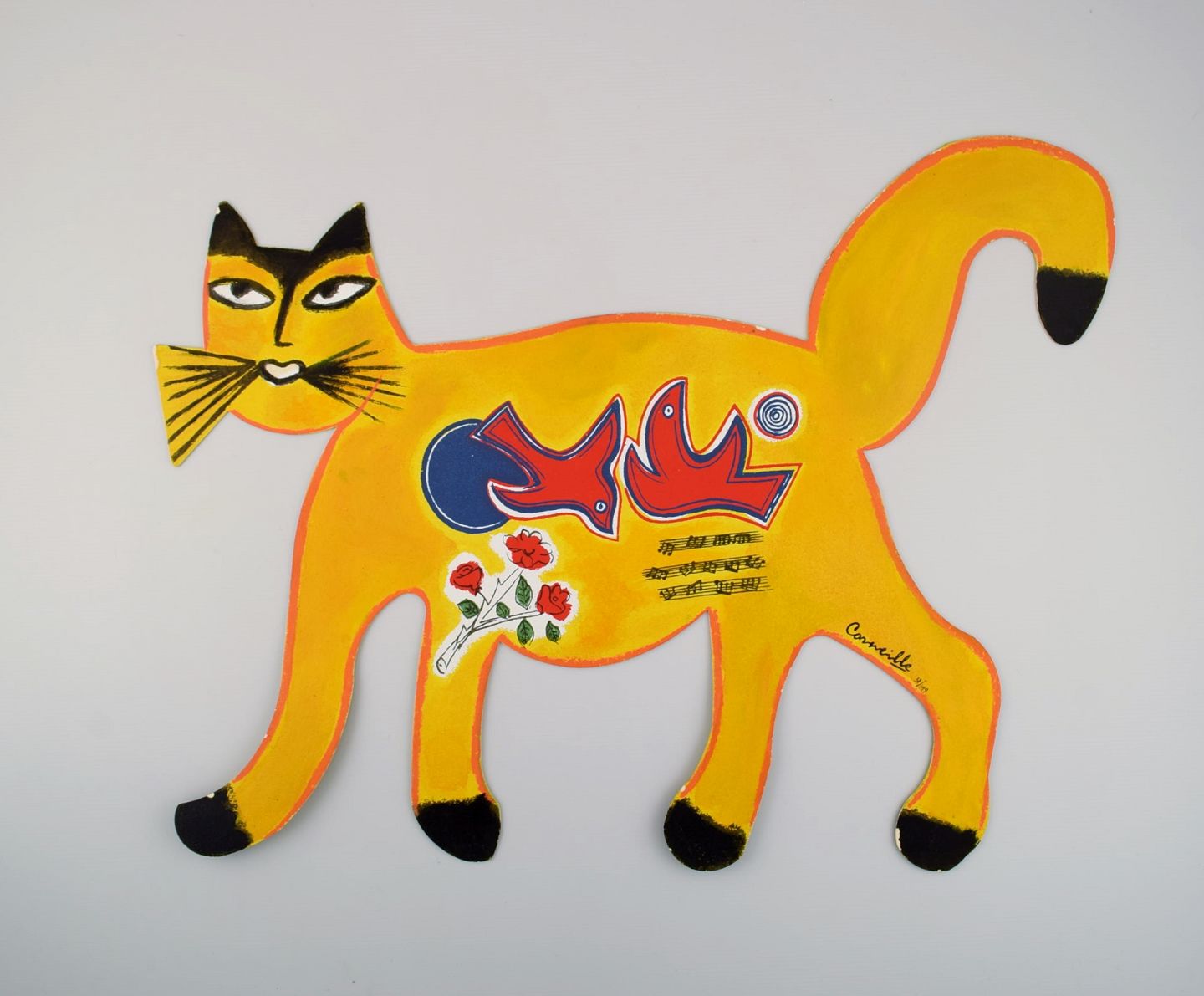 Corneille (1922-2010), Cobrakunstner. Stor kat i håndmalet metal. Dekoreret på begge sider. Nummereret: 37/199. Sent 1900-tallet. Måler: 73 x 55 cm. Signeret og nummereret. I flot stand.