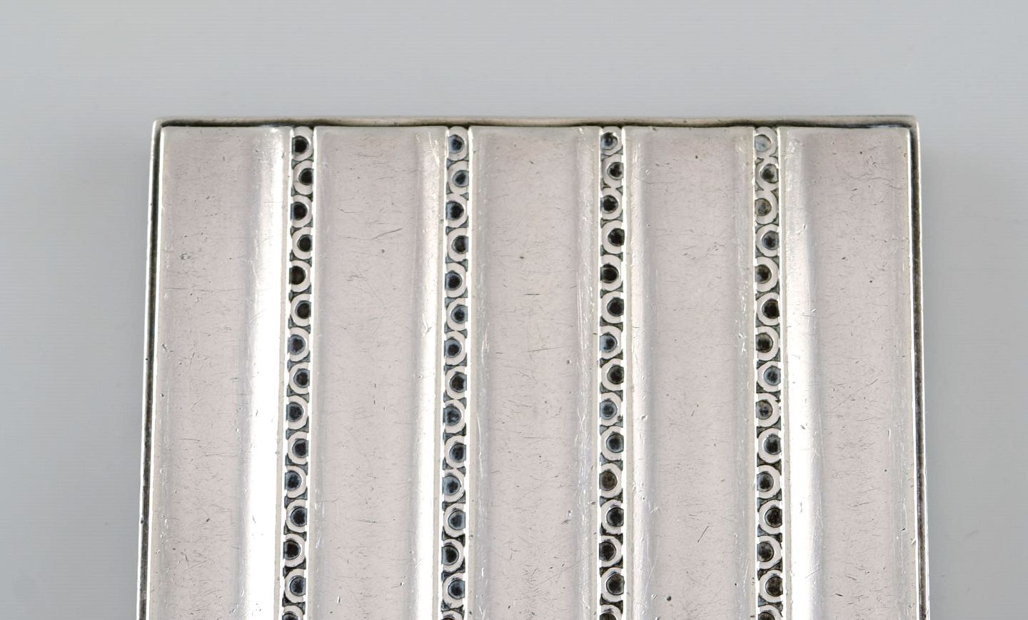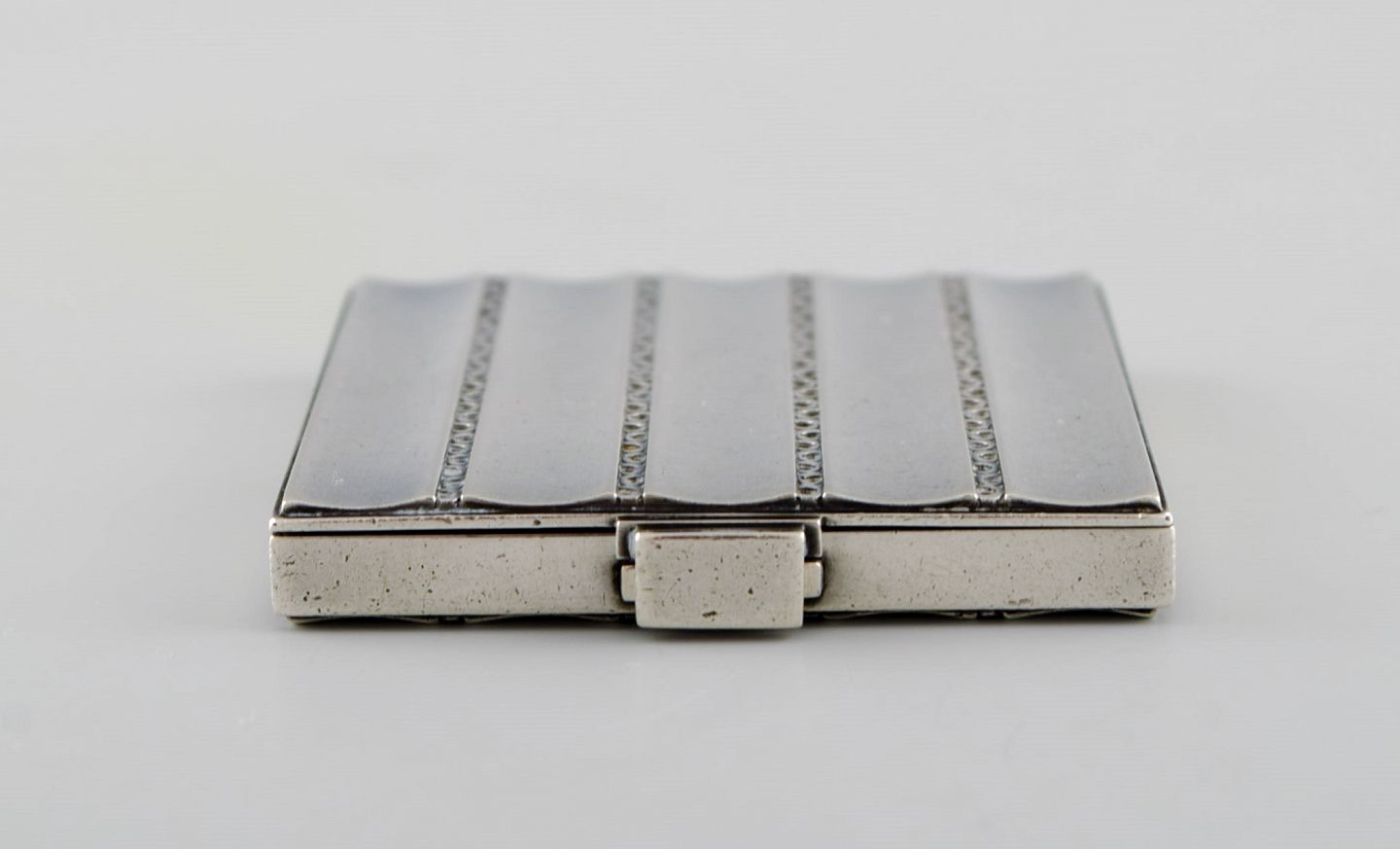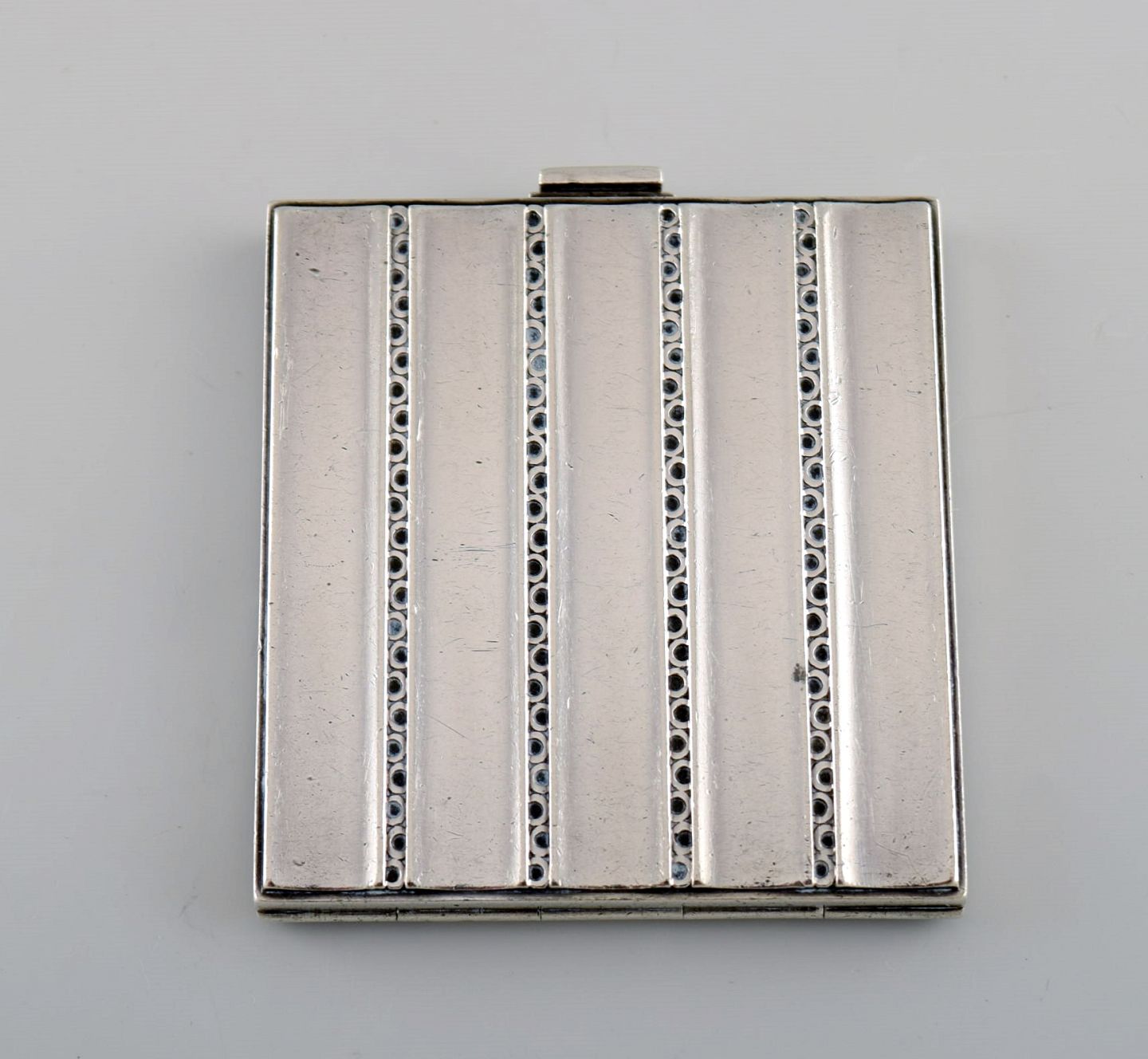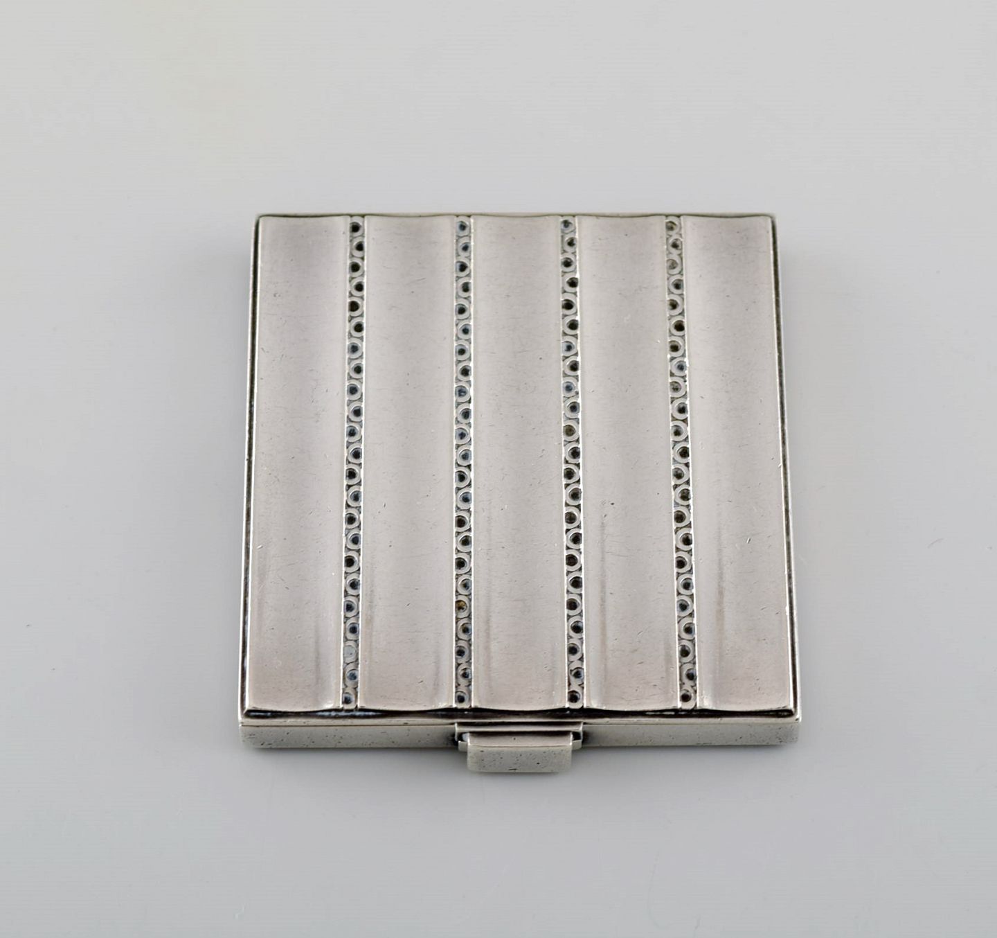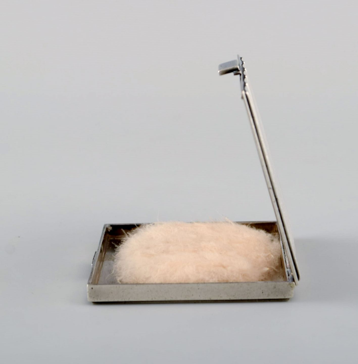 Georg Jensen art deco pudderdåse i sterlingsølv med indvendigt spejl. Design 279. Dateret 1933-1944.