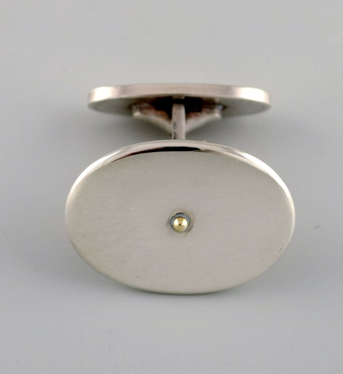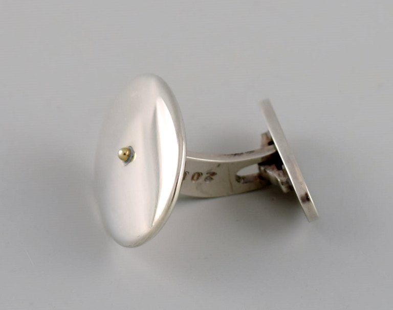 Et par modernistiske Georg Jensen manchetknapper i sterlingsølv og guld. Modelnummer 200. Midt 1900-tallet. Måler: 22 x 16 mm. I flot stand. Stemplet.