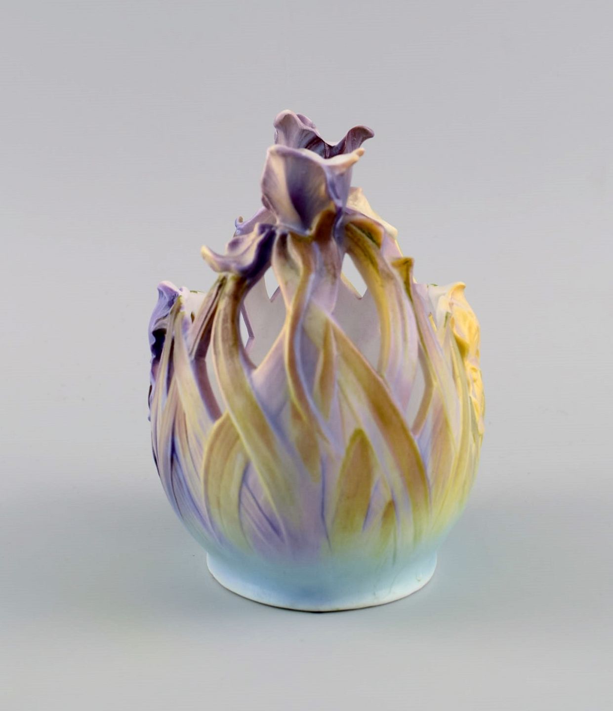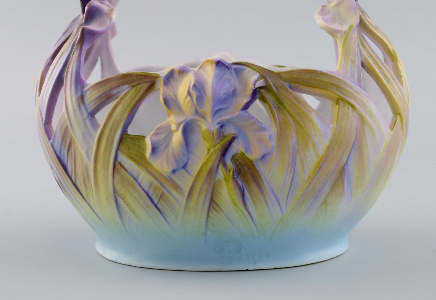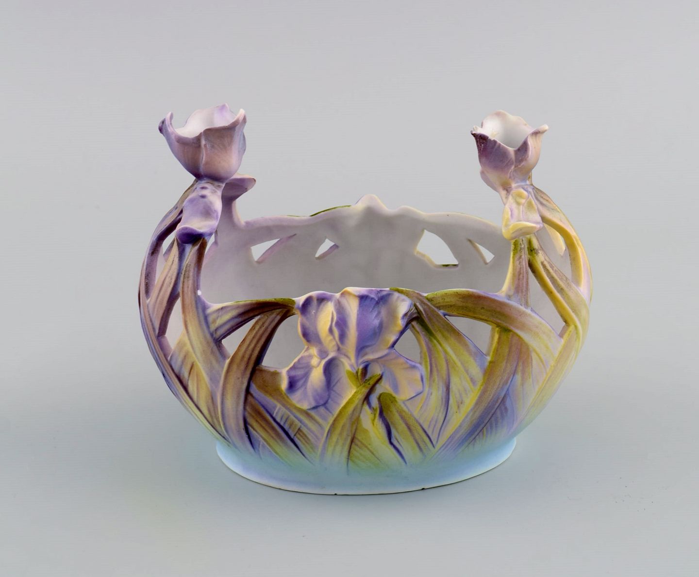 Heubach, Tyskland. Antik art nouveau skål i gennembrudt porcelæn med håndmalede blomster. Ca 1900.