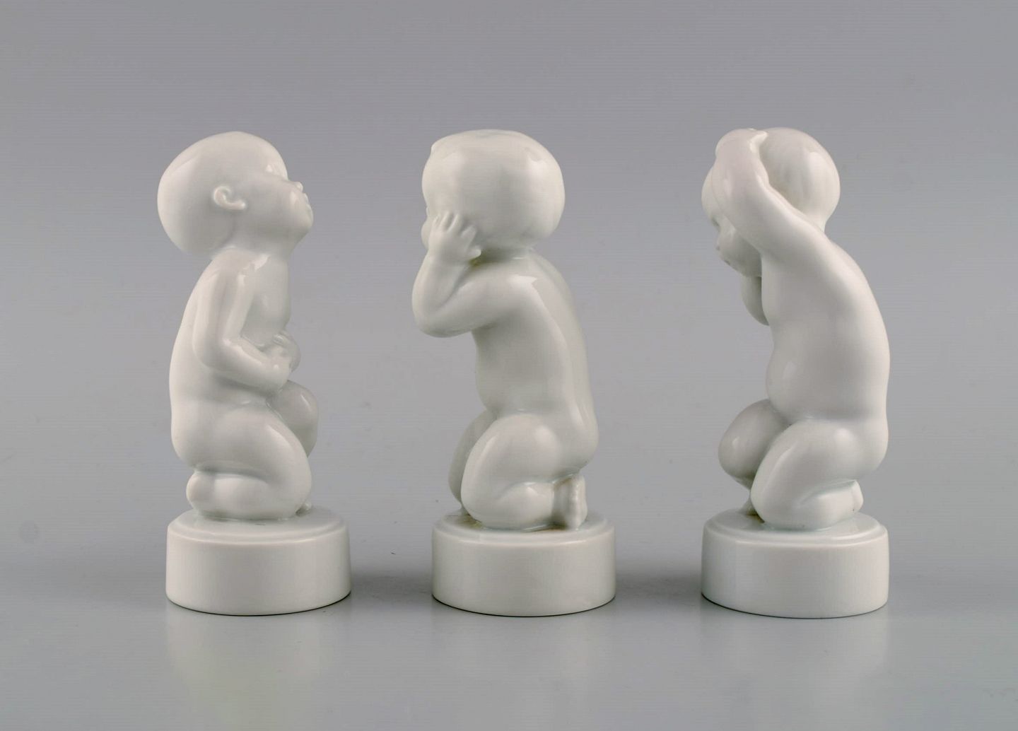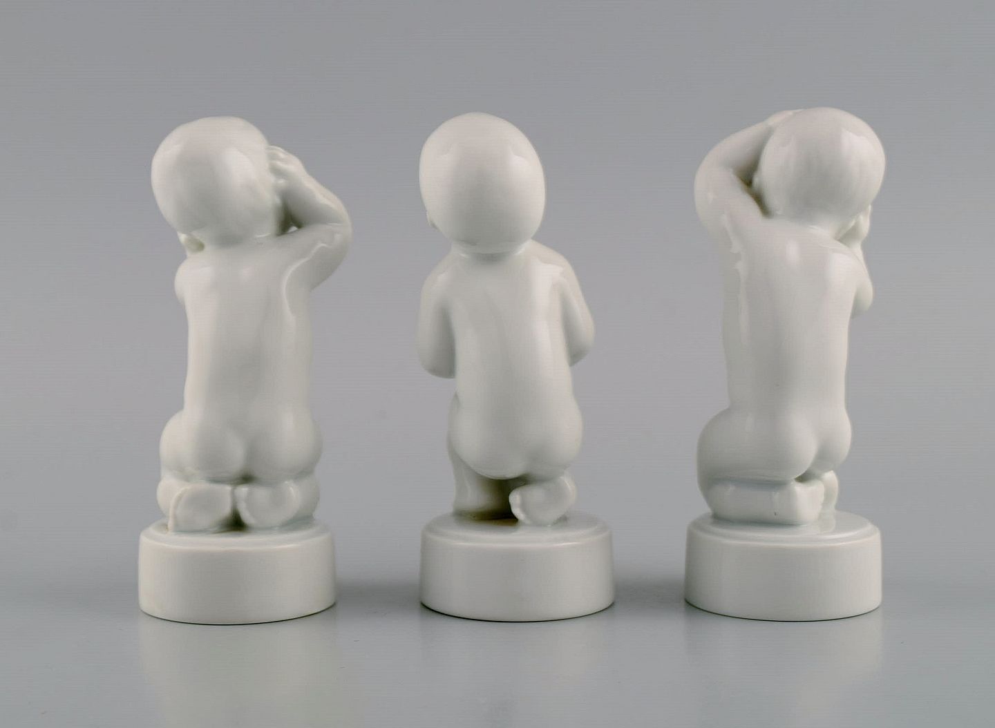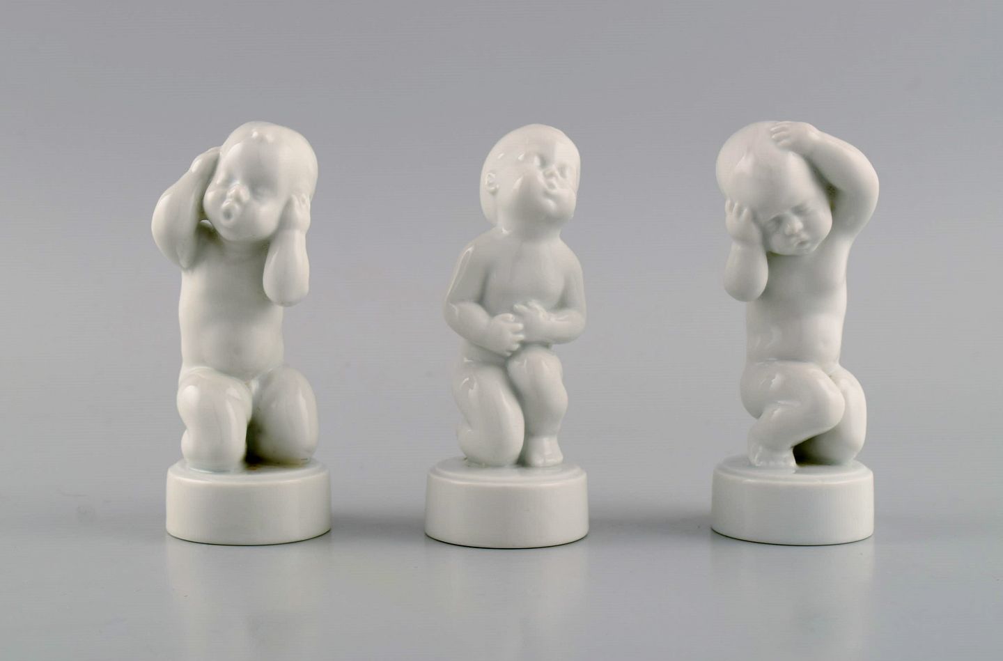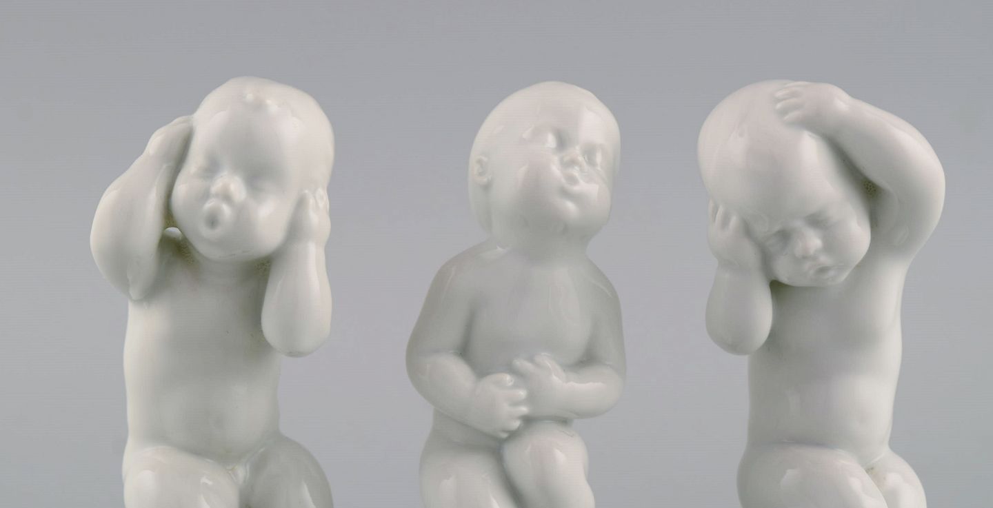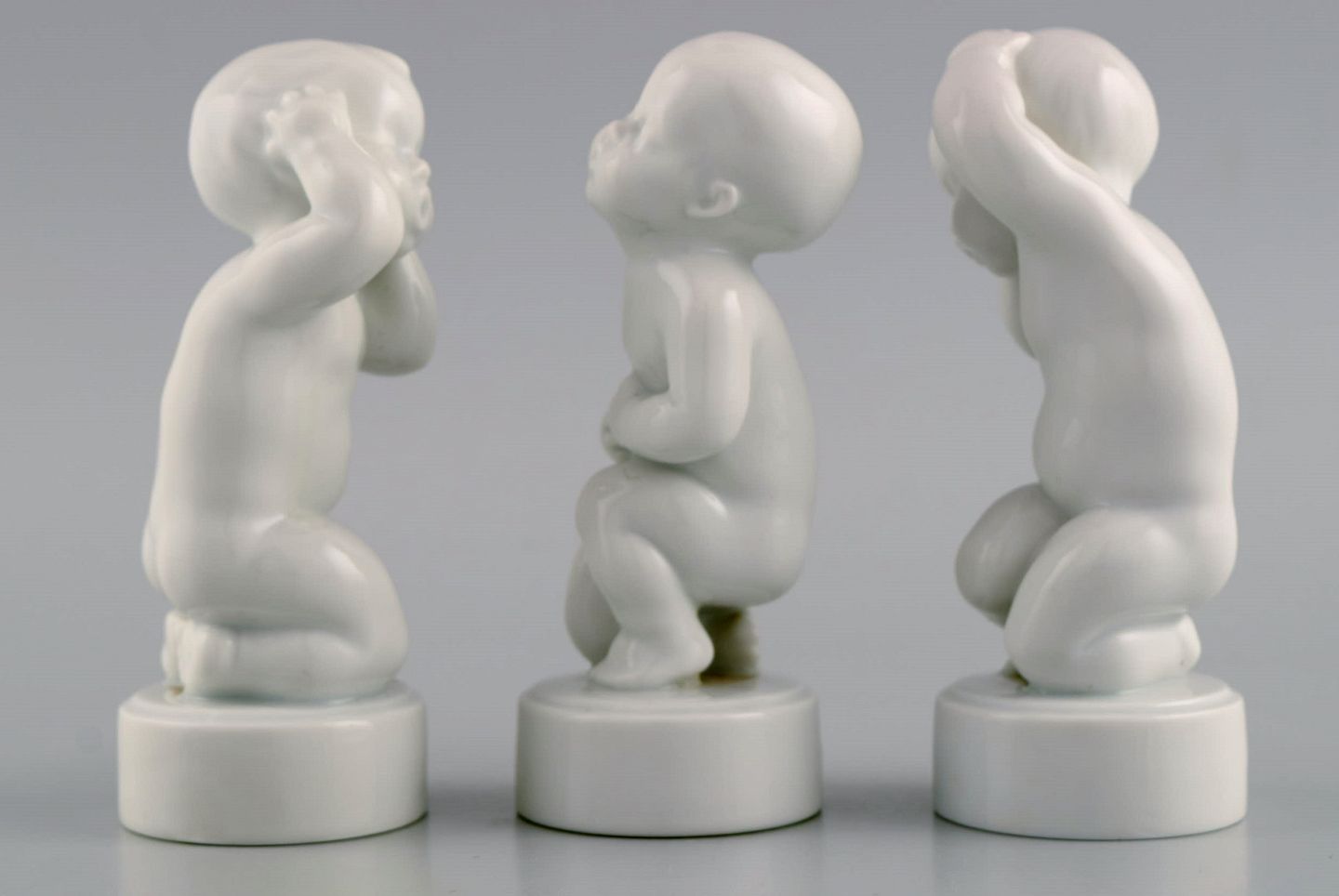 Svend Lindhart for Bing & Grøndahl. Tre blanc de chine figurer. Hovedpine, ørepine og mavepine. Midt 1900-tallet. Største måler: 11,5 x 4,7 cm. I flot stand. Stemplet.