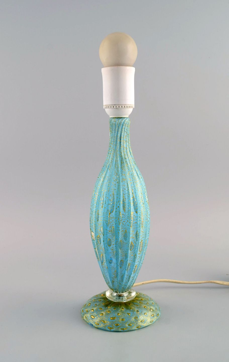 Murano bordlampe i turkis mundblæst kunstglas med indlagte bobler. Italiensk design, 1960/70'erne. Måler: 25 x 11 cm (ex fatning). I flot stand.