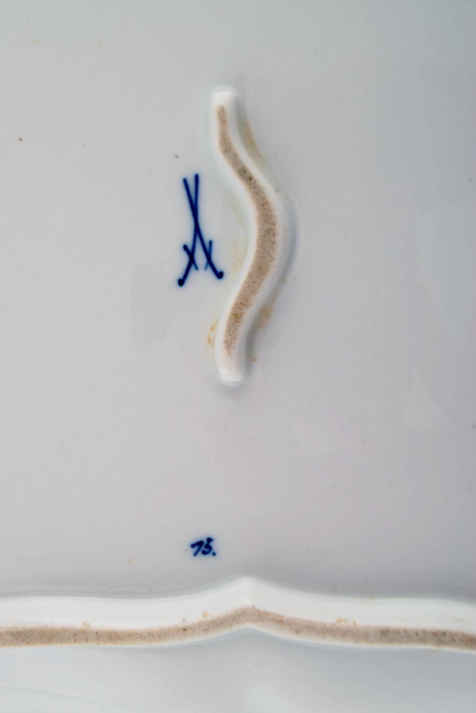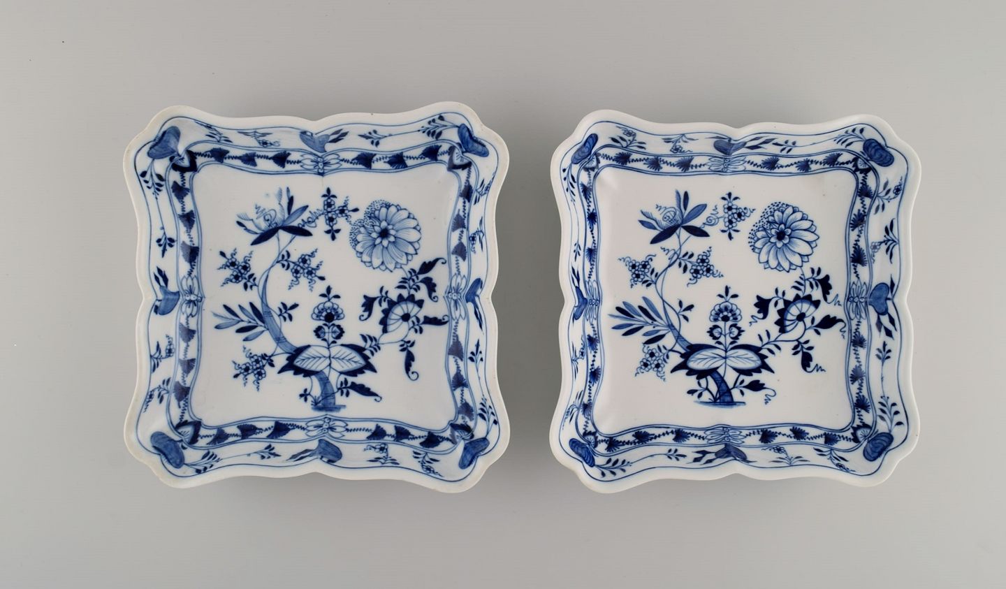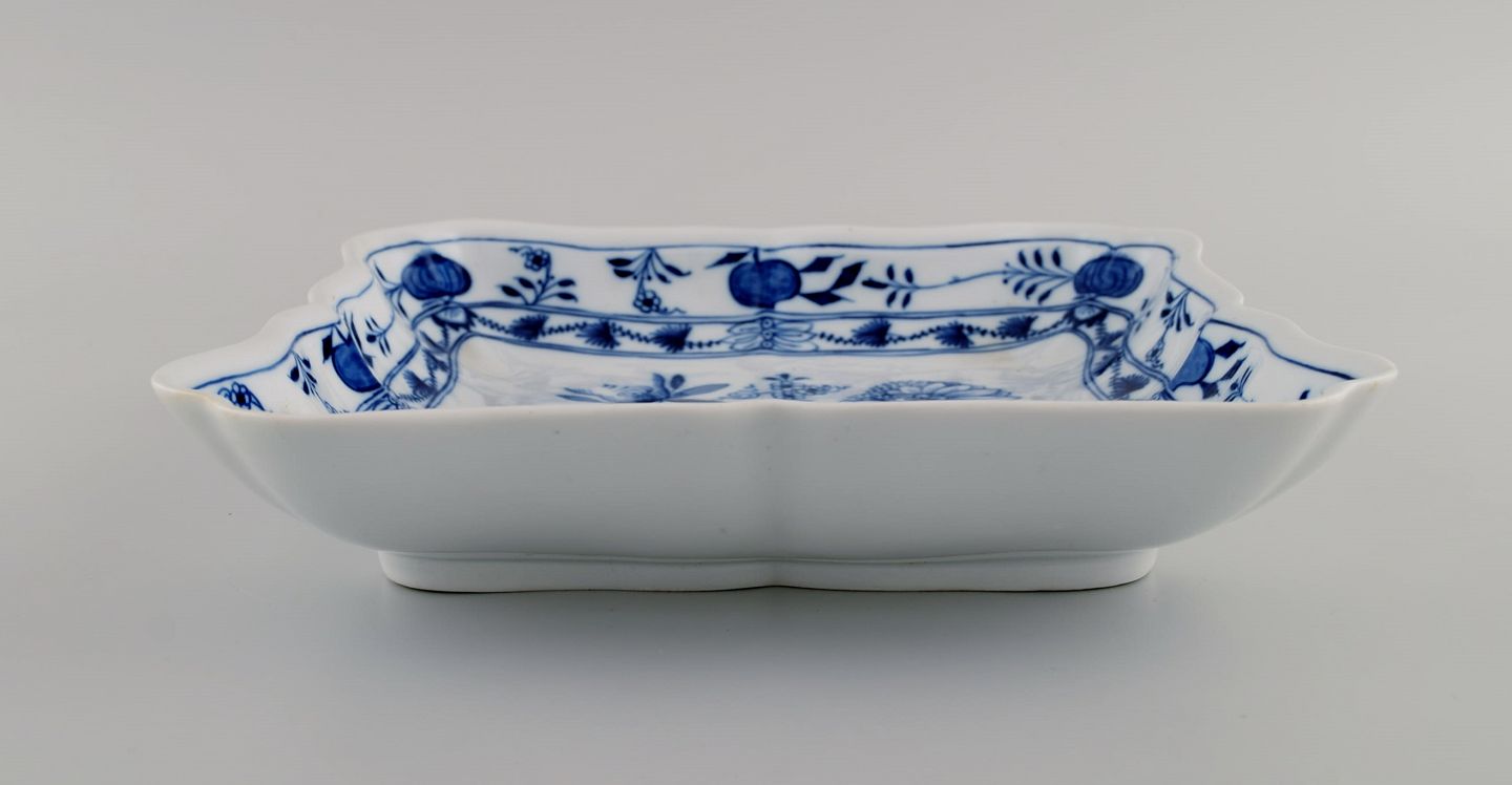 To antikke Meissen Løgmønstret skåle i håndmalet porcelæn. Sent 1800-tallet. Måler: 24 x 4,5 cm. I flot stand. Stemplet. 1. Sortering.