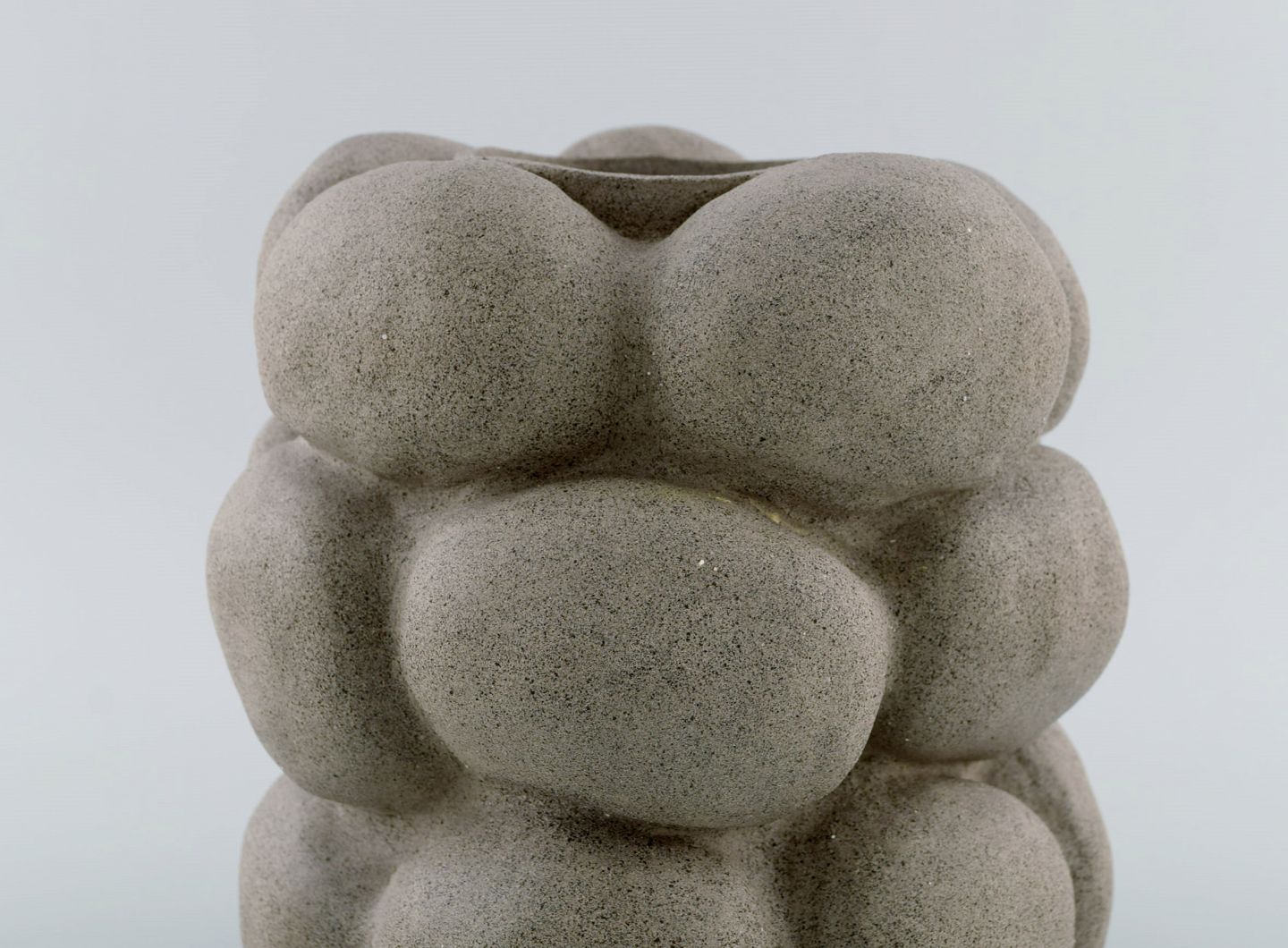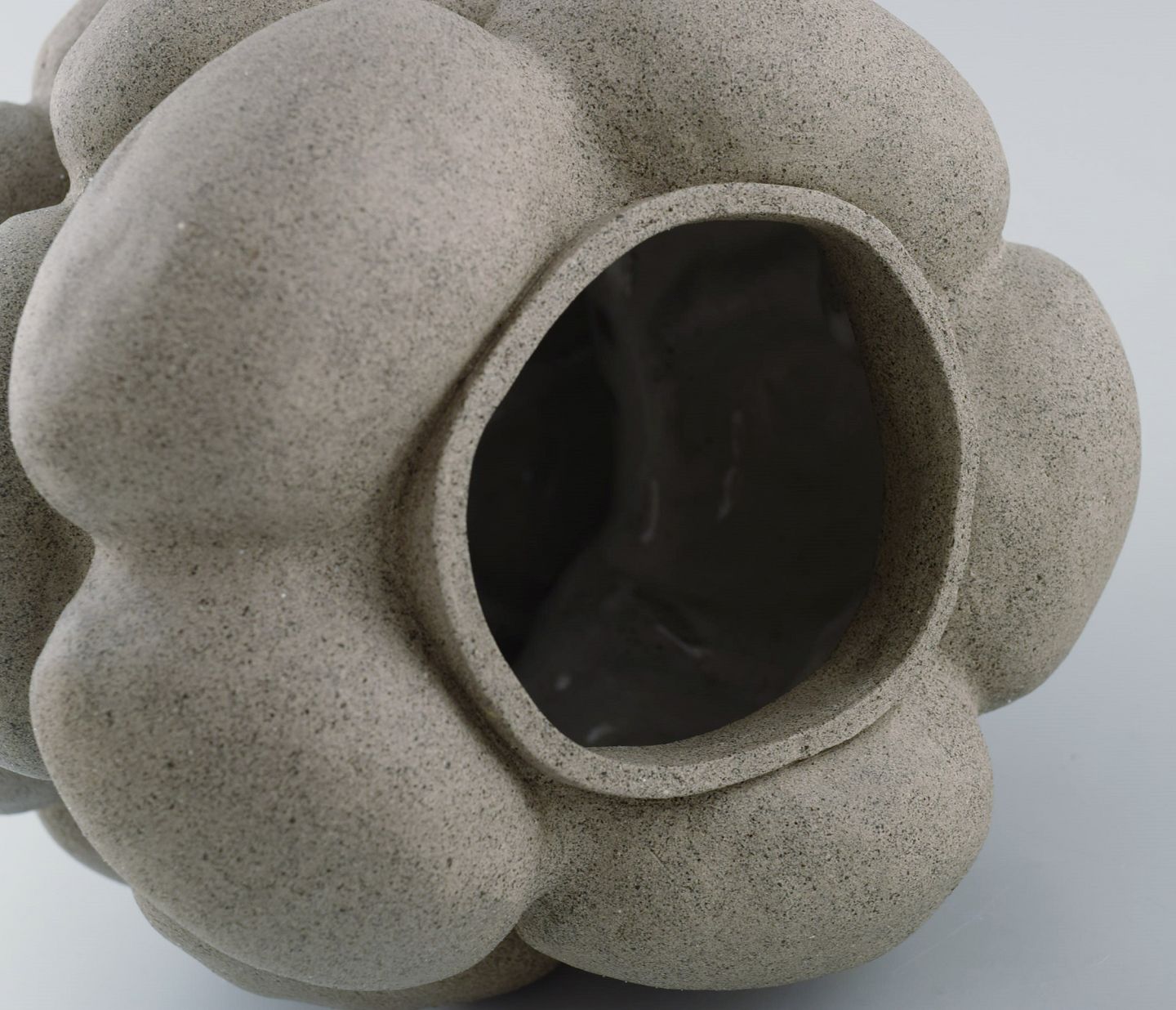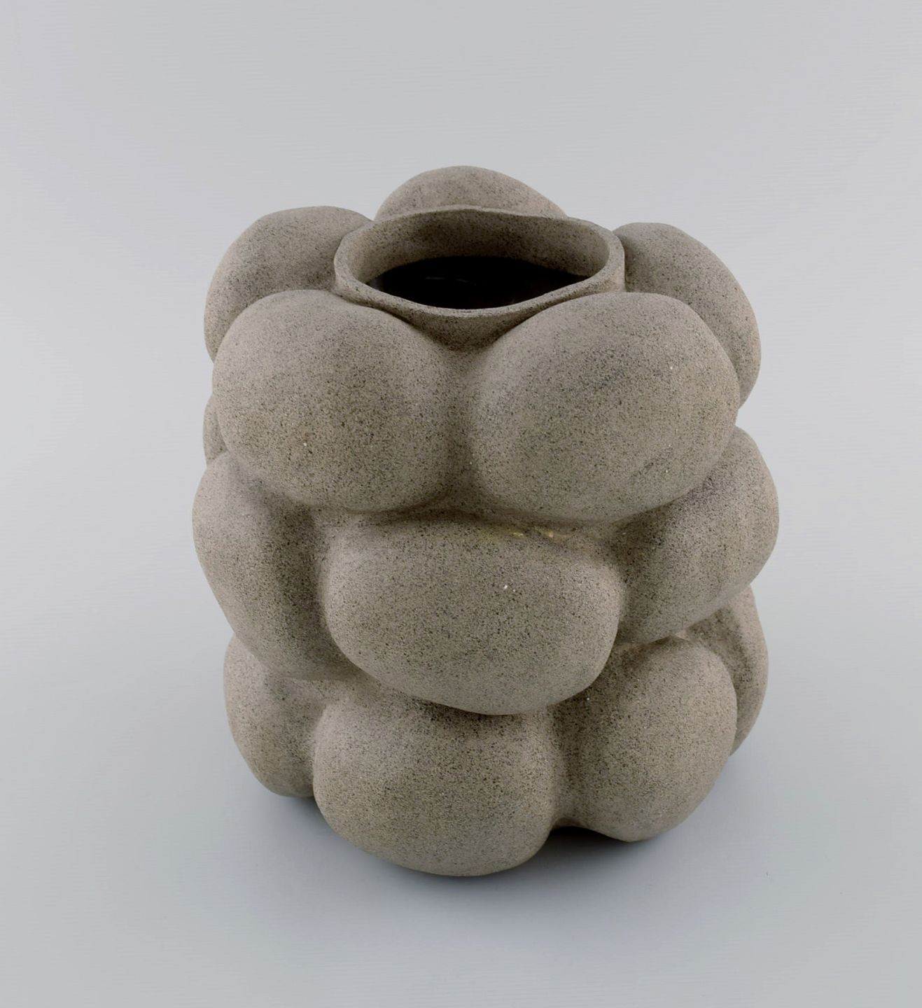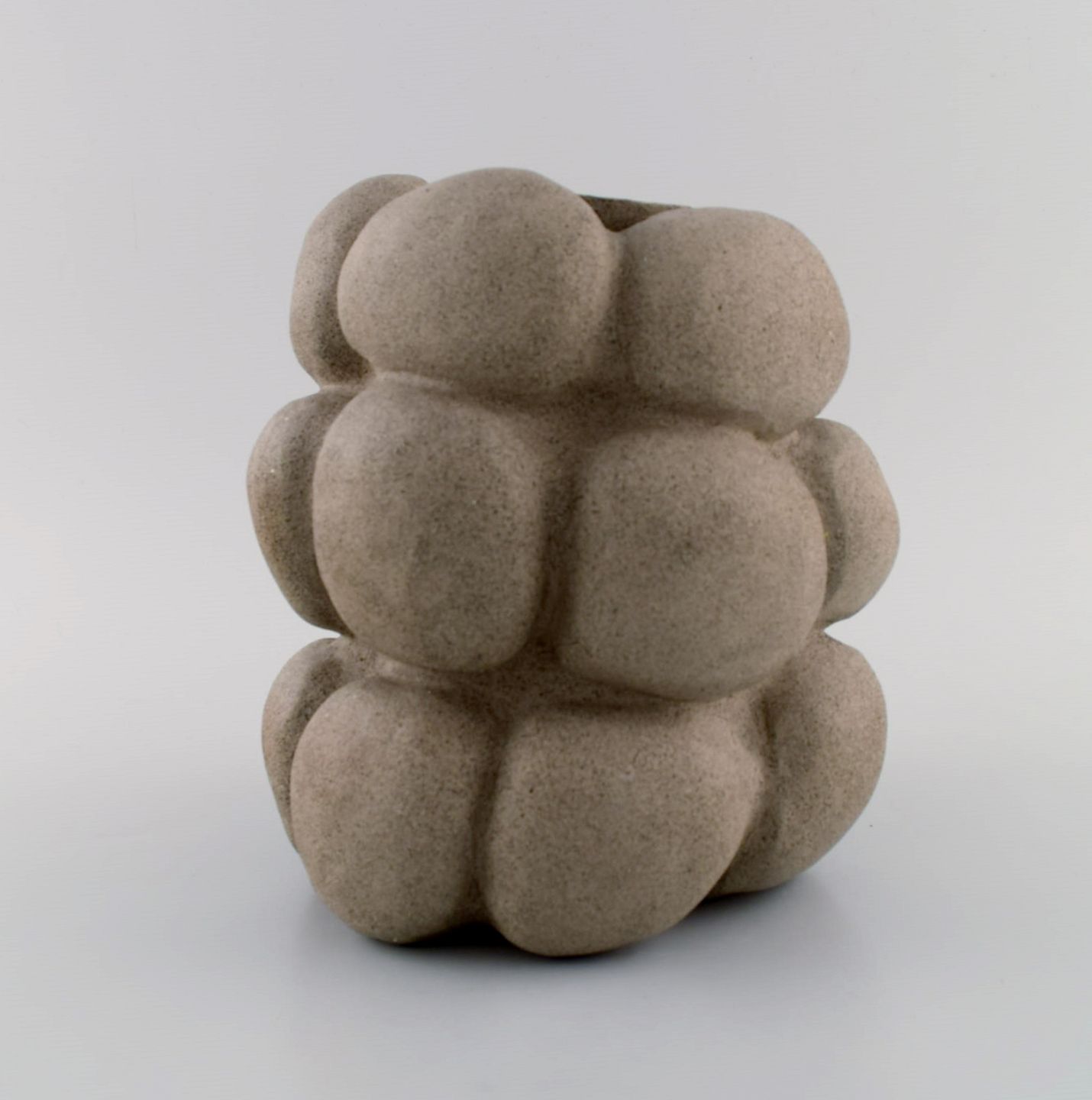 Christina Muff, dansk samtidskeramiker (f. 1971). Skulpturel unika vase i stentøj. uglaseret udvendigt, hvid blank glasur indvendigt. Måler: 19,5 x 17 cm. I flot stand. Signeret.