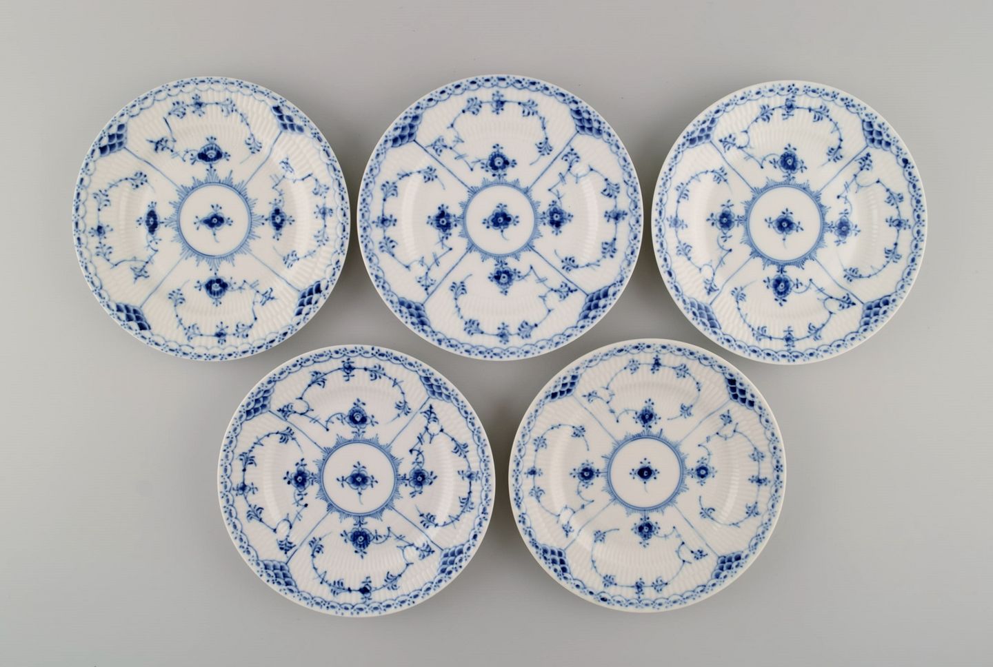 Fem Royal Copenhagen Musselmalet Halvblonde tallerkener. Midt 1900-tallet. Modelnummer 1/574. Diameter: 17 cm. I flot stand. Stemplet. 1. Sortering.