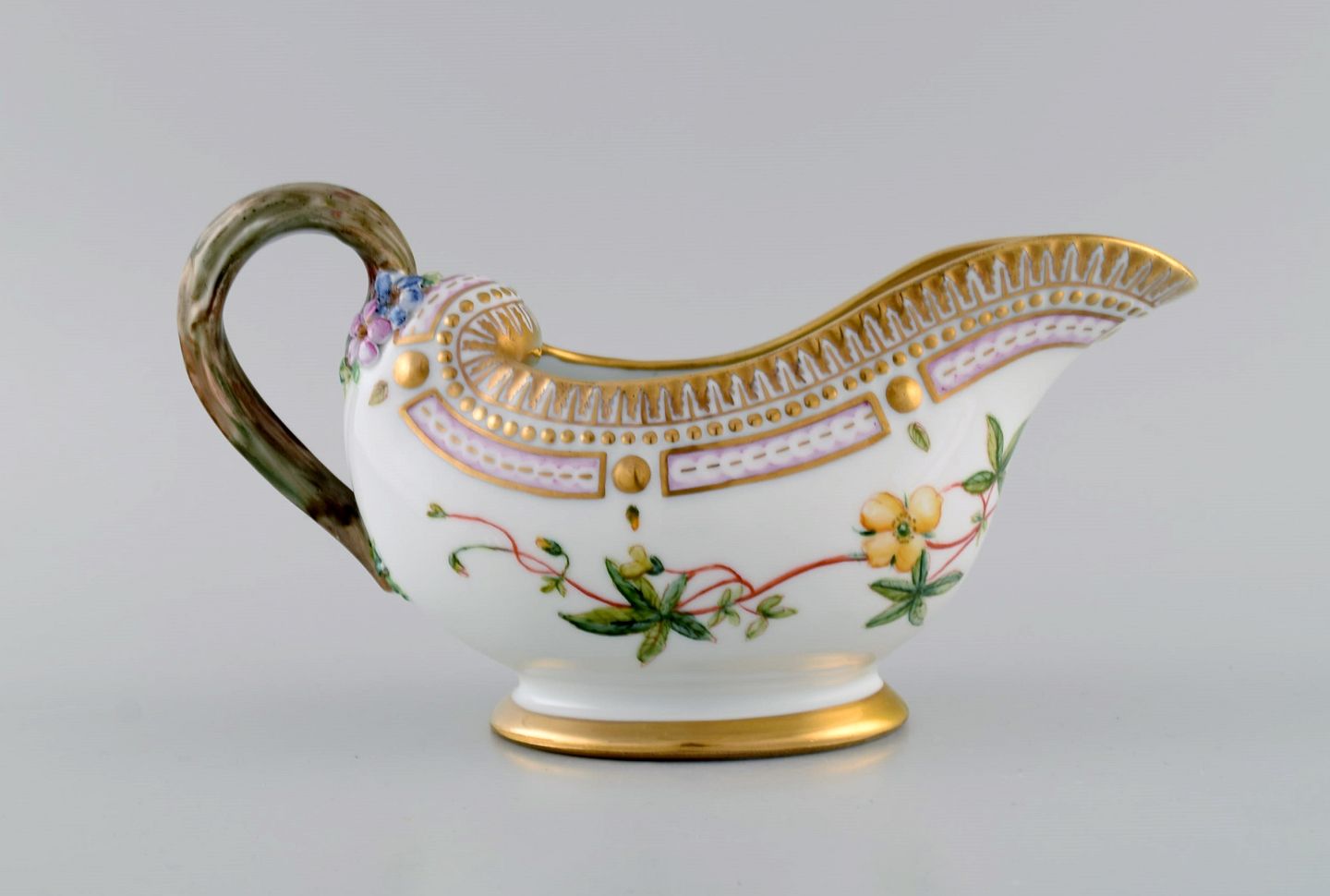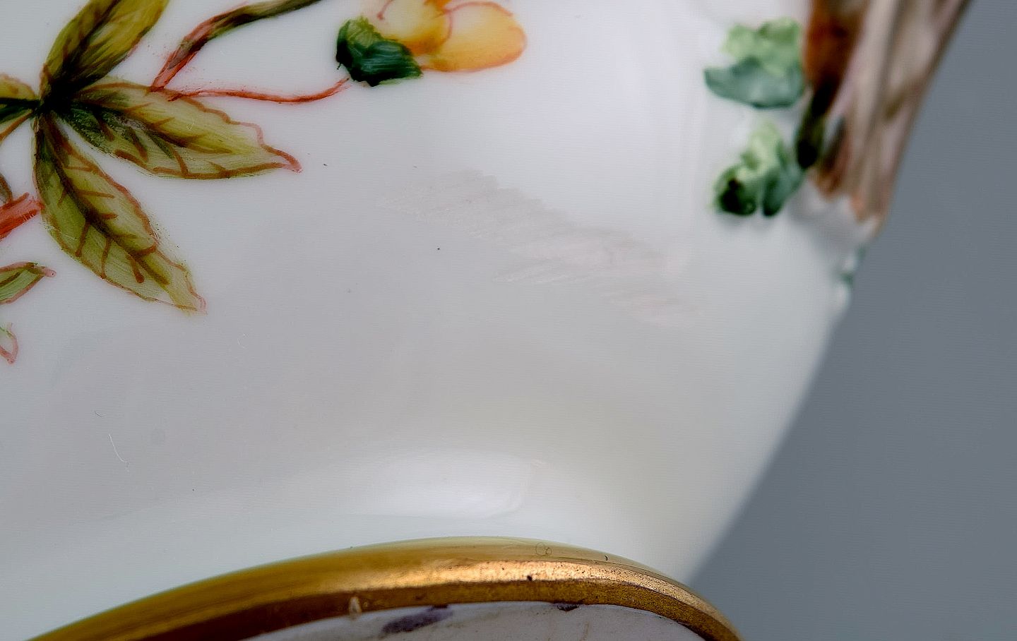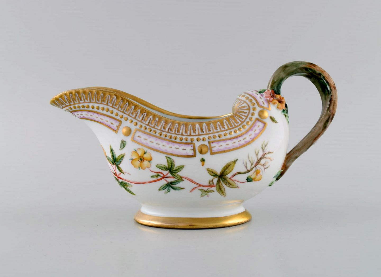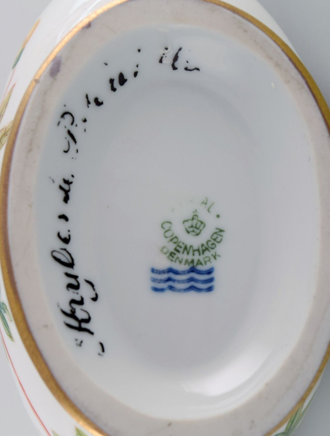 Antik Royal Copenhagen Flora Danica sovsekande i håndmalet porcelæn med blomster og gulddekoration. Tidligt 1900-tallet.