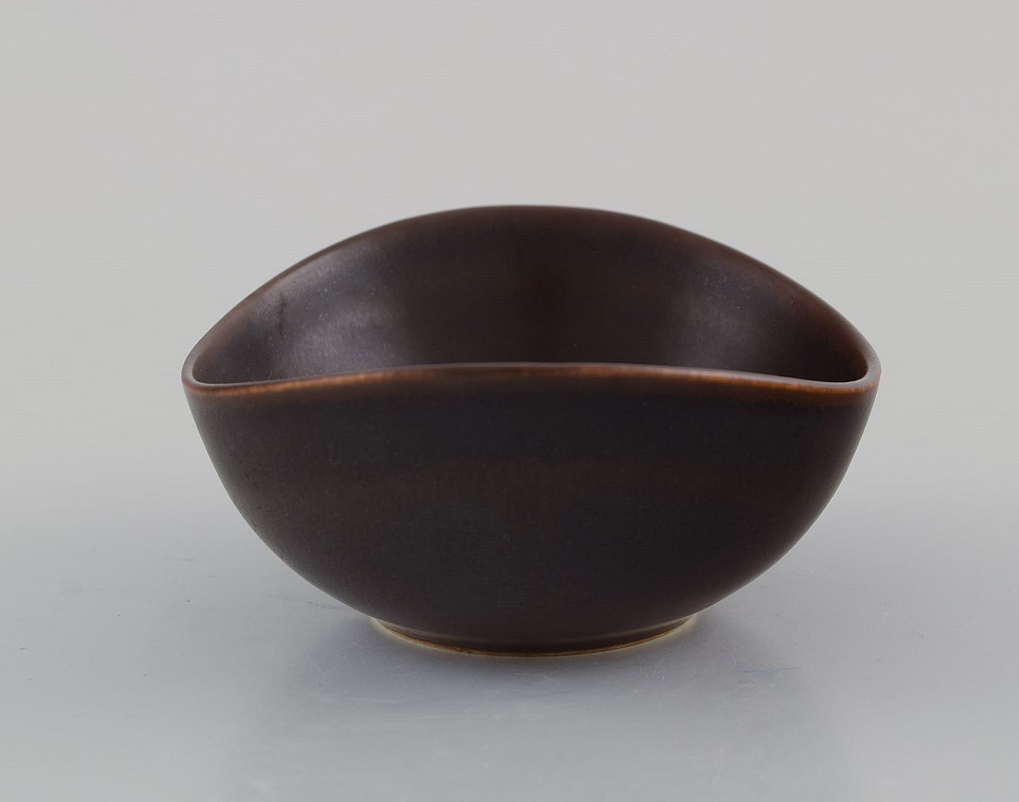 Gunnar Nylund (1904-1997) for Rörstrand. Skål i glaseret keramik. Smuk glasur i brune nuancer. Midt 1900-tallet.
