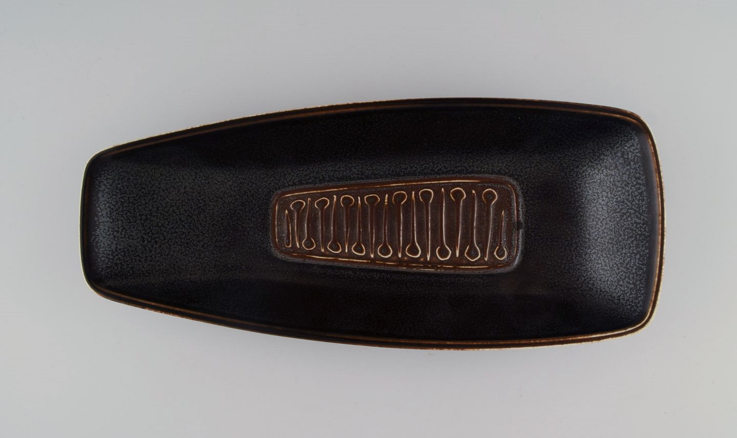 Gunnar Nylund (1904-1997) for Rörstrand. Stort fad / skål i glaseret keramik. Smuk spættet glasur i brune og gråsorte nuancer. Midt 1900-tallet.
