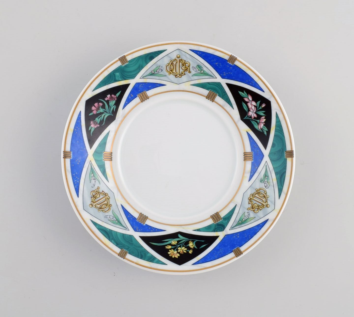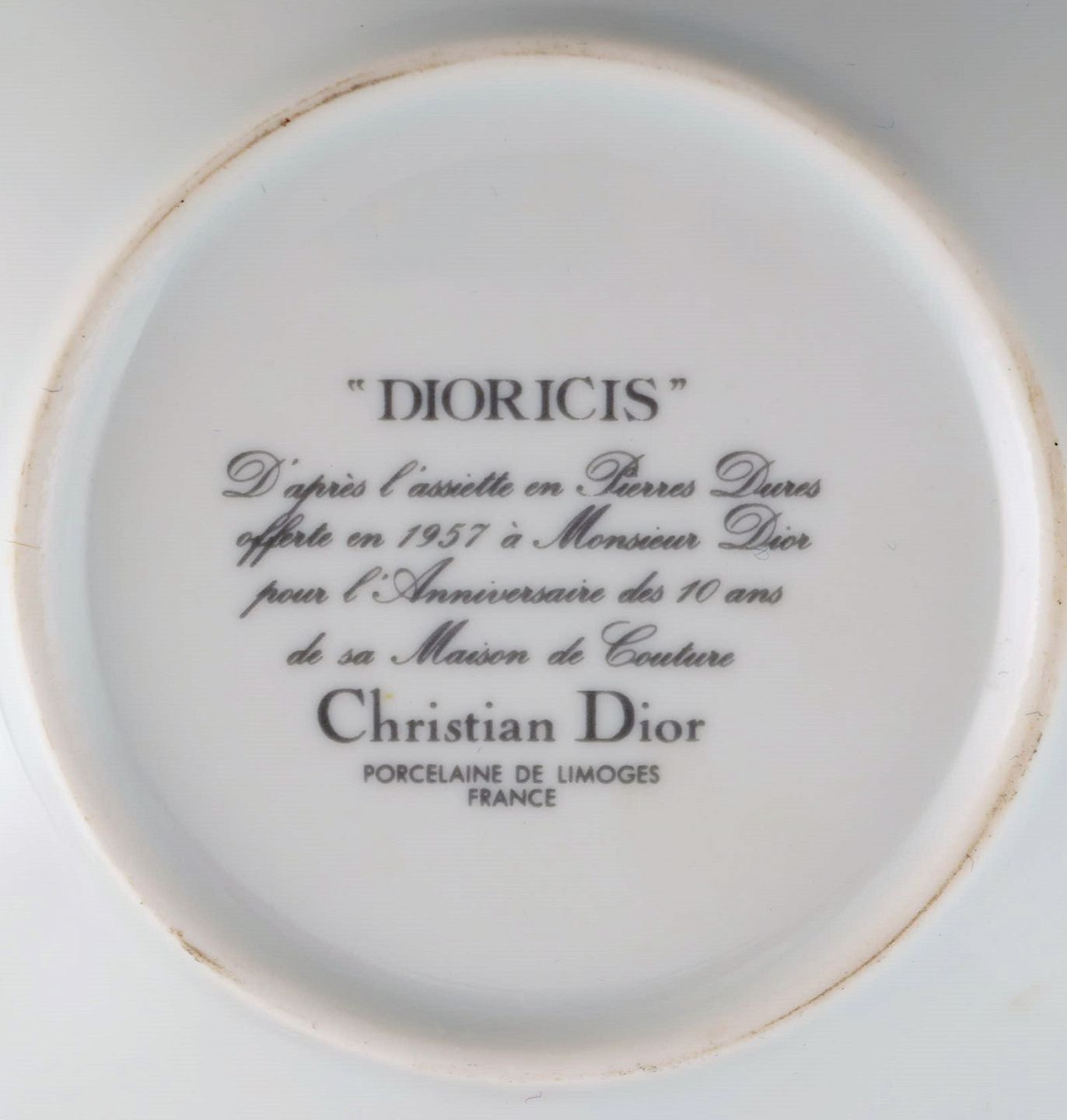 Limoges, Frankrig. Tre Christian Dior "Dioricis" jubilæums kaffekopper med underkopper. 1960/70'erne. Koppen måler: 8,3 x 5,5 cm. Underkop diameter: 15 cm. I flot stand. Stemplet.