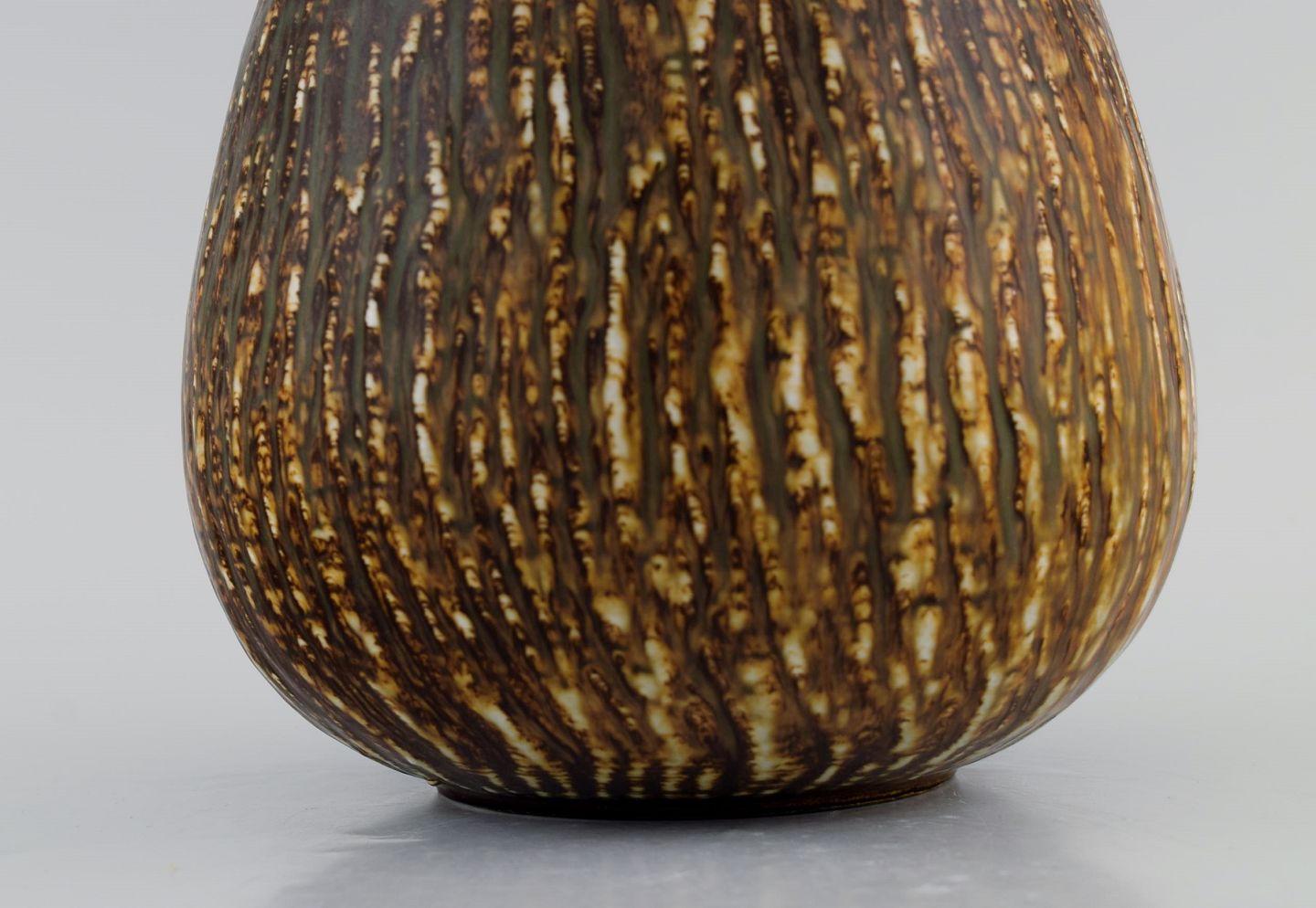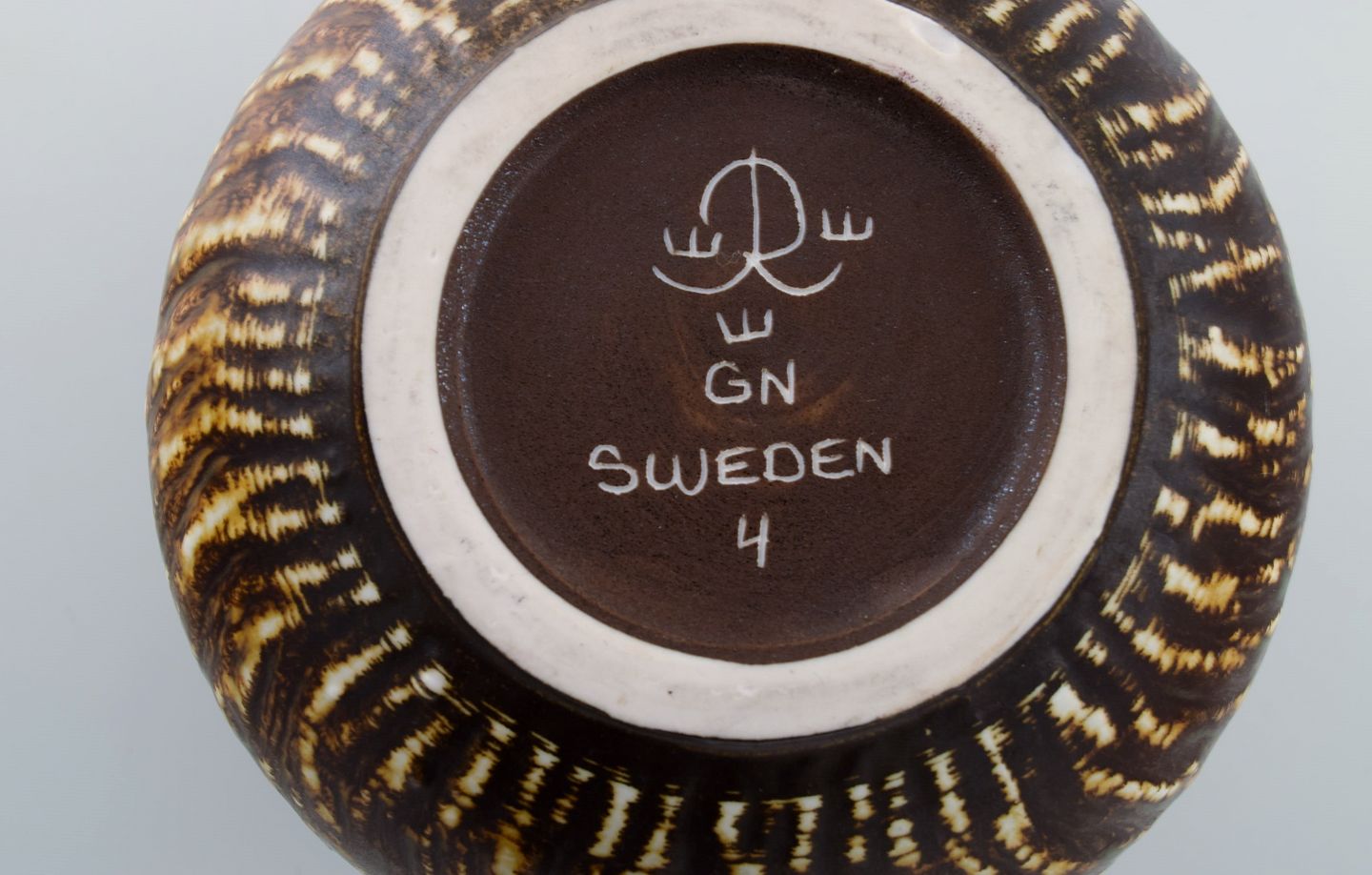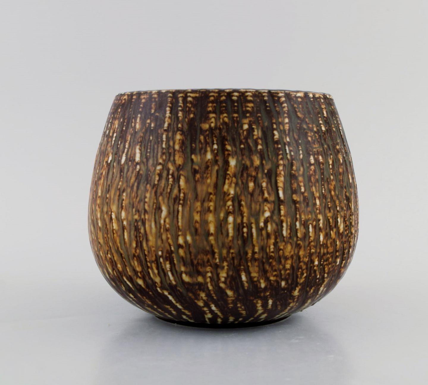 Gunnar Nylund for Rörstrand. Skål i glaseret stentøj. Smuk birketræs glasur. Midt 1900-talllet. Måler: 17 x 14 cm. I flot stand. Stemplet. 1. Sortering