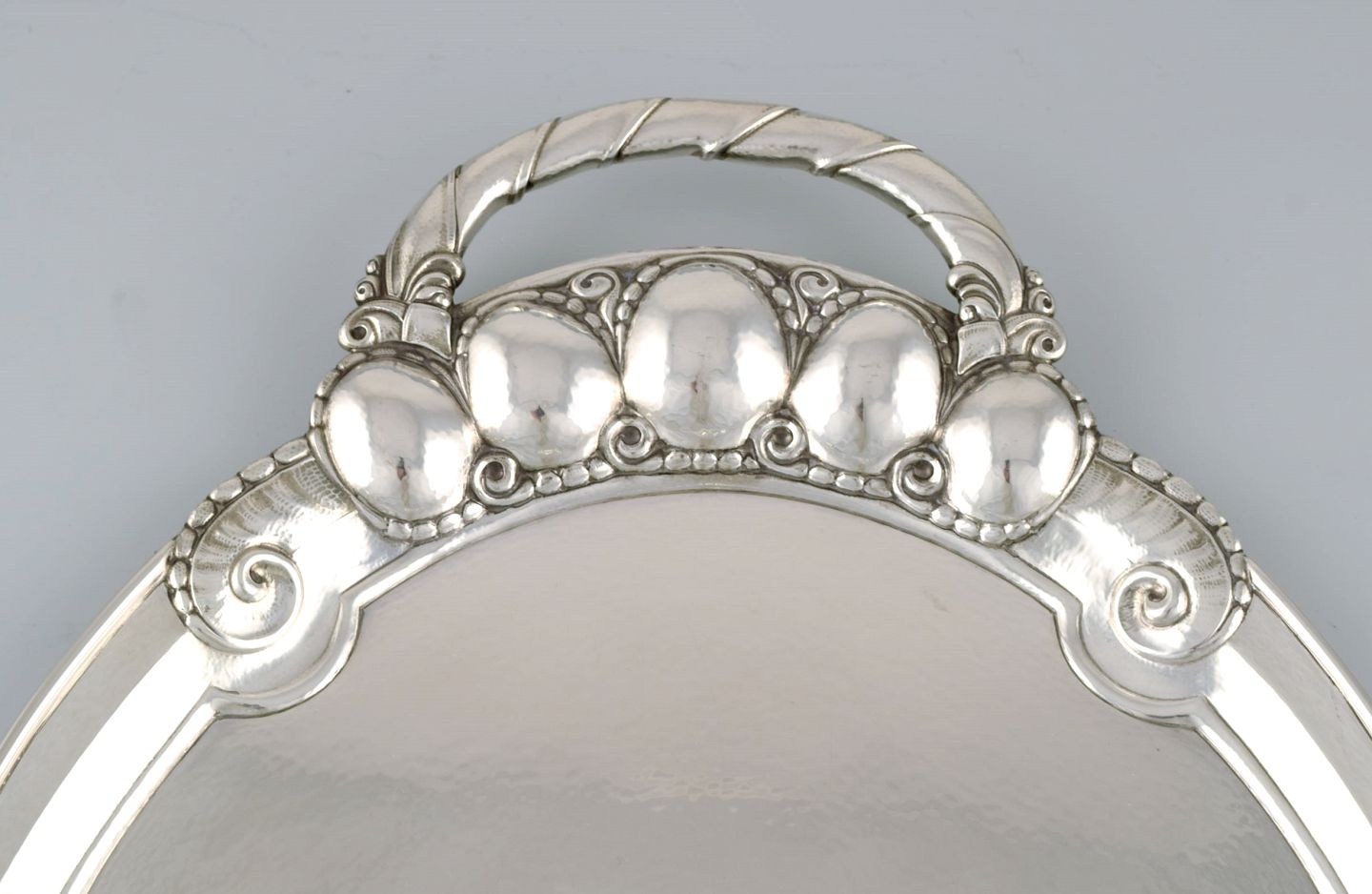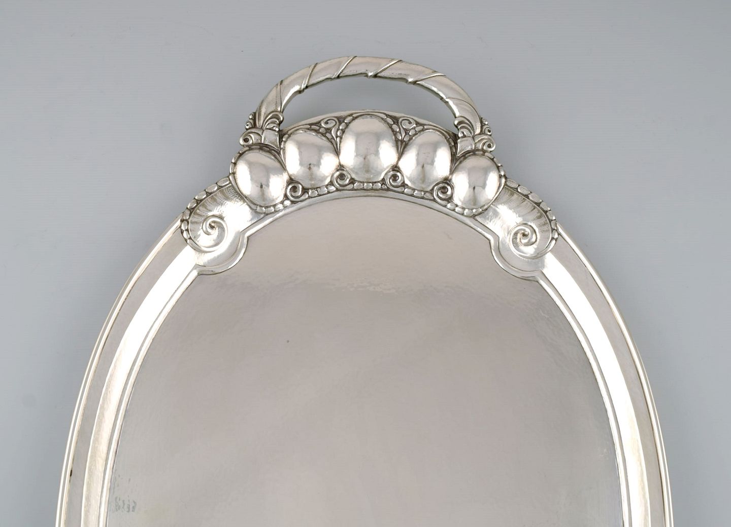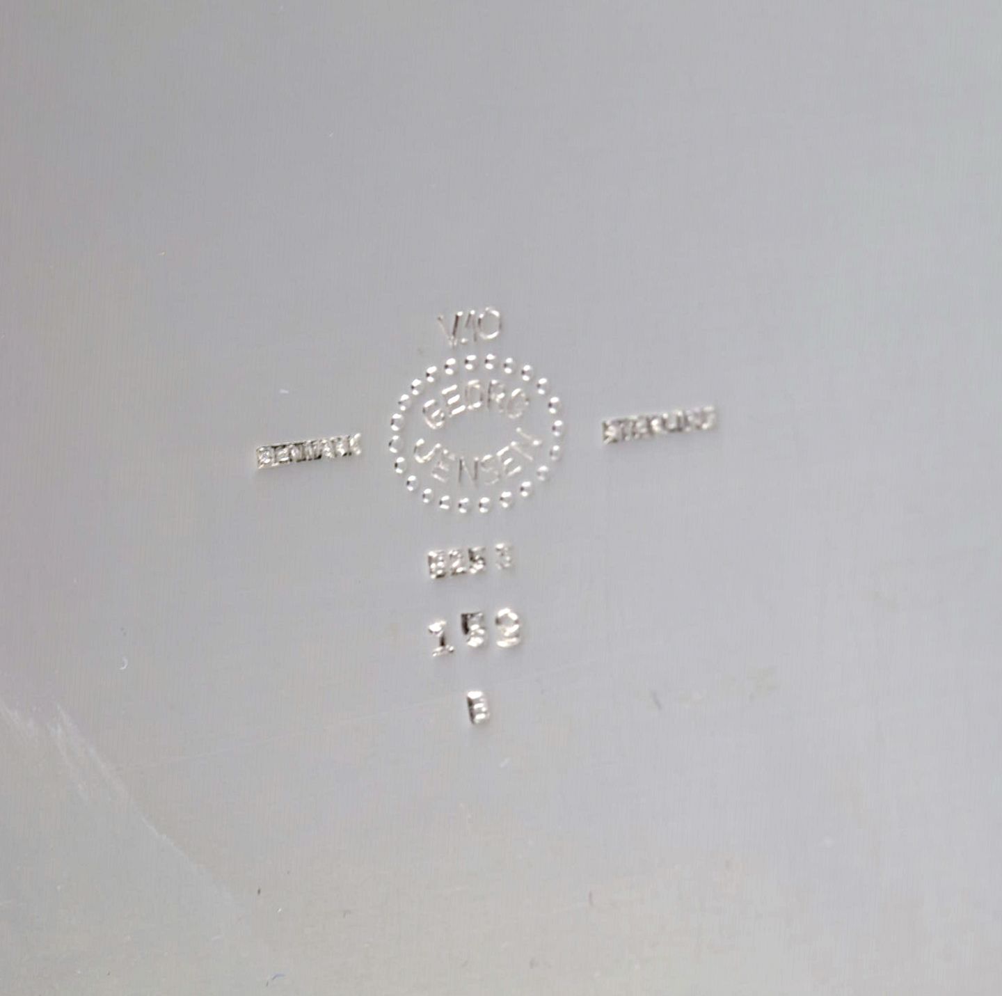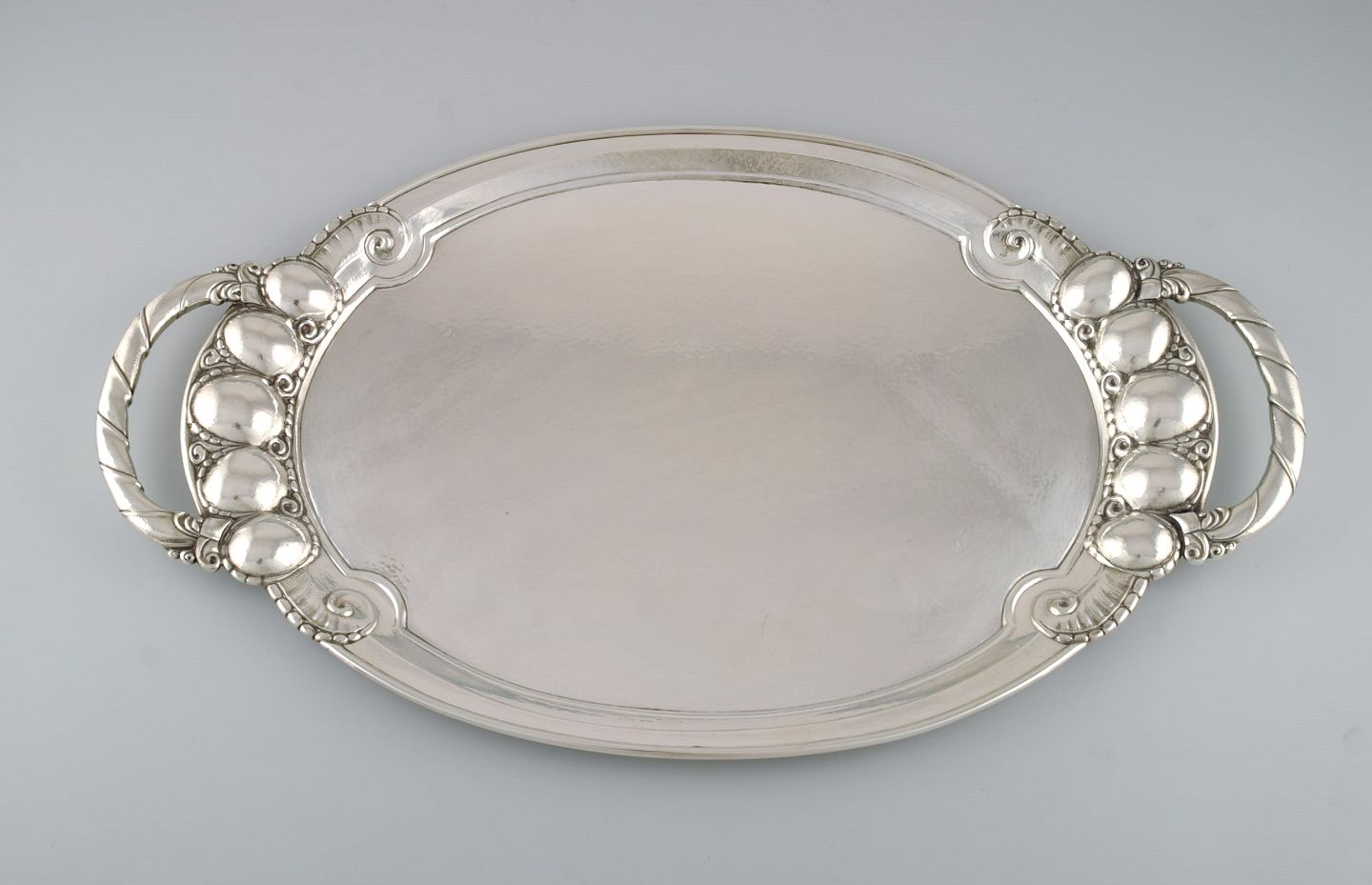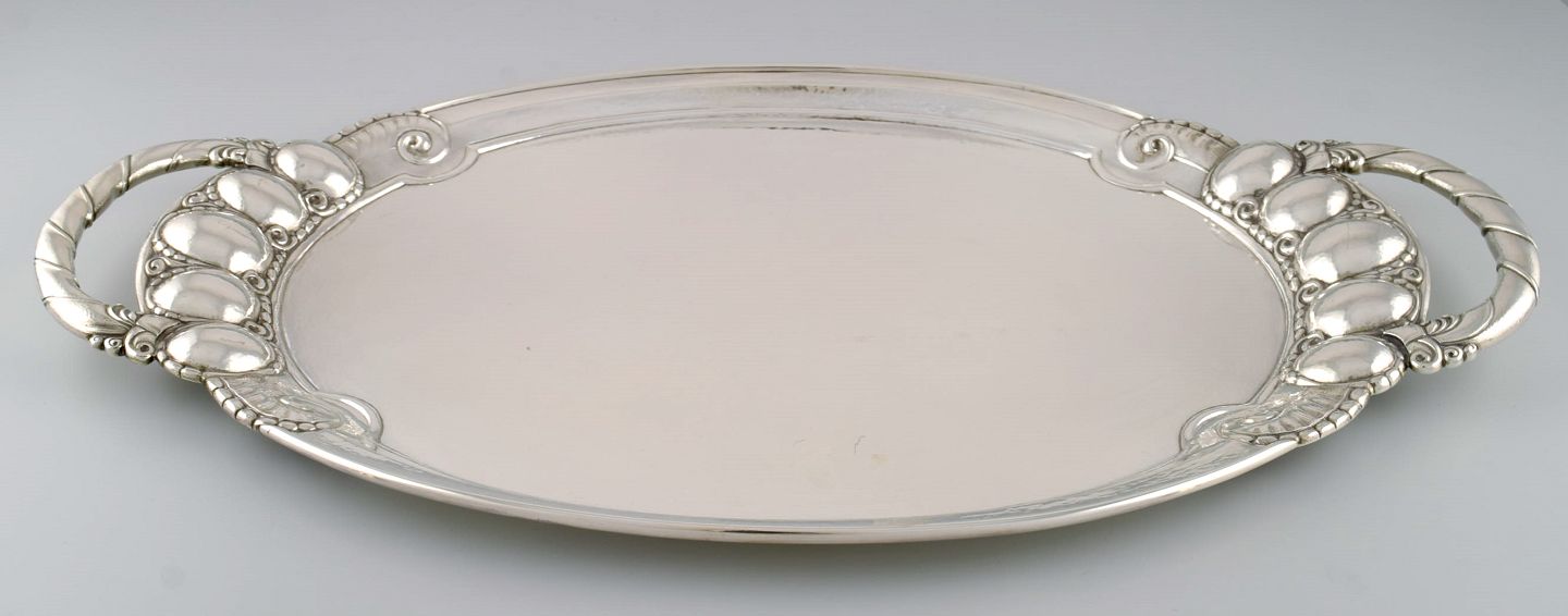 Stort Georg Jensen "Melon" serveringsfad i sterlingsølv. Modelnummer 159B. Original mahognikasse fra Georg Jensen medfølger.