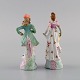 To tyske antikke porcelænsfigurer. Rokoko par. 1800-tallet. Største måler: 11 x 4,5 cm. I god stand. Minimalt skår og lille reperation. Stemplet.