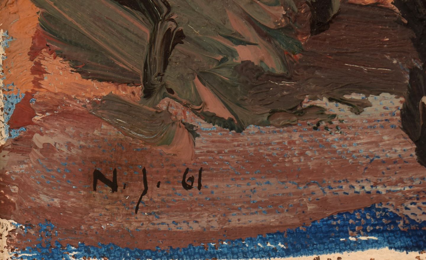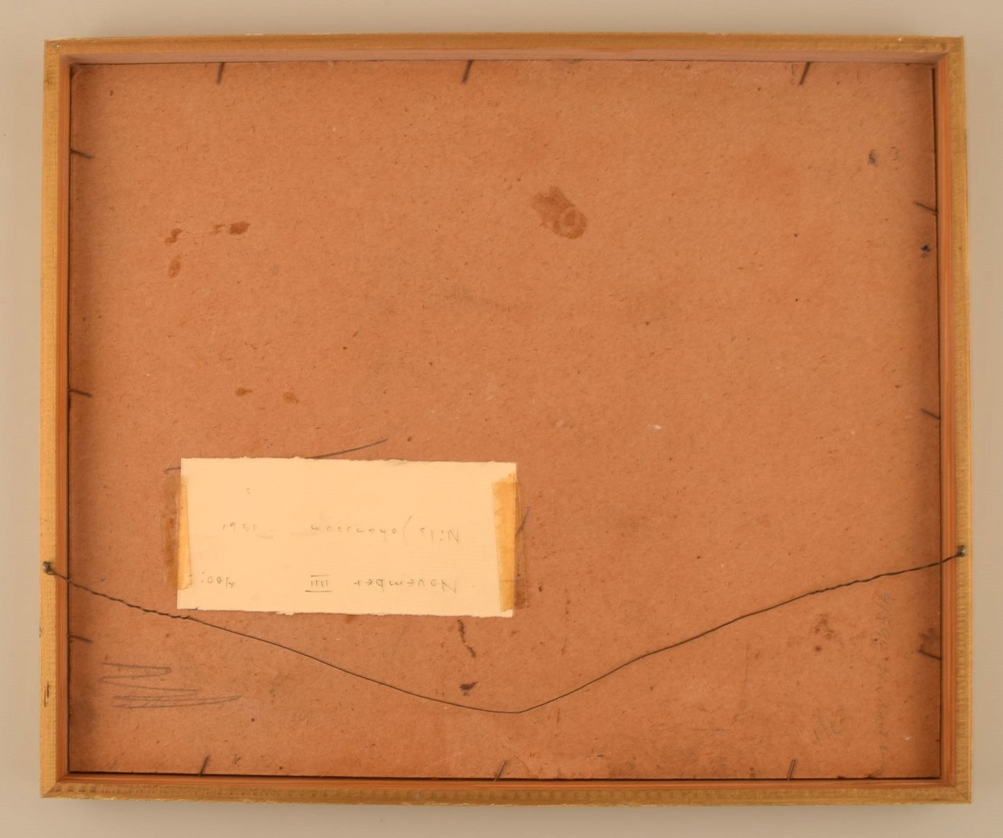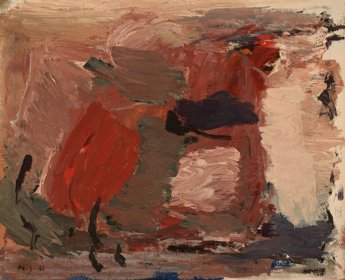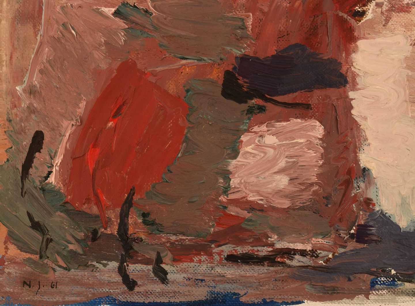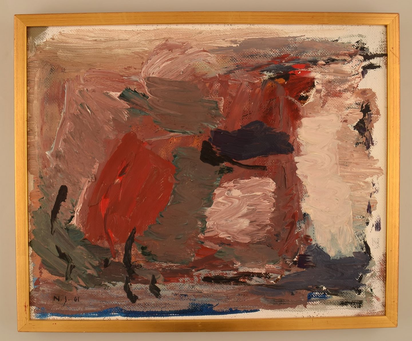 Nils Johansson (1922-2014), Sverige. Olie på plade. Abstrakt komposition. Dateret 1961. Pladen måler: 40 x 32 cm. Rammen måler: 1,5 cm. I flot stand. Signeret og dateret.