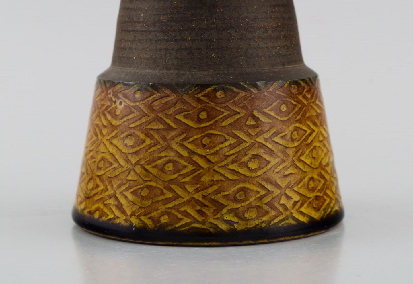 Nils Kähler (1906-1979) for Kähler. Vase i glaseret stentøj. Smuk glasur i sennepsgule nuancer. 1960'erne. Måler: 10,5 x 10 cm. I flot stand. Signeret.
