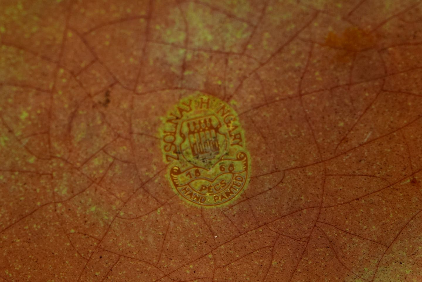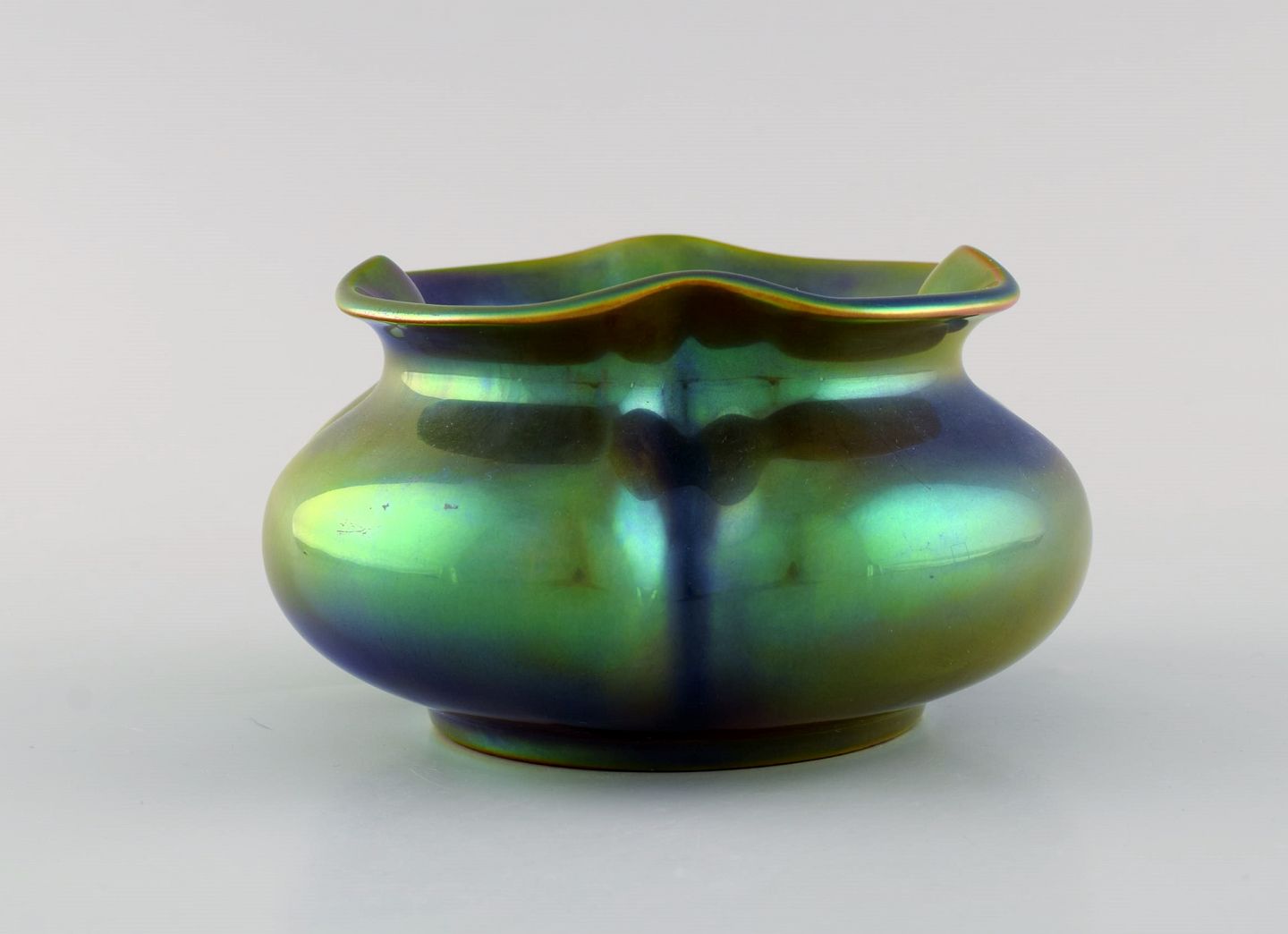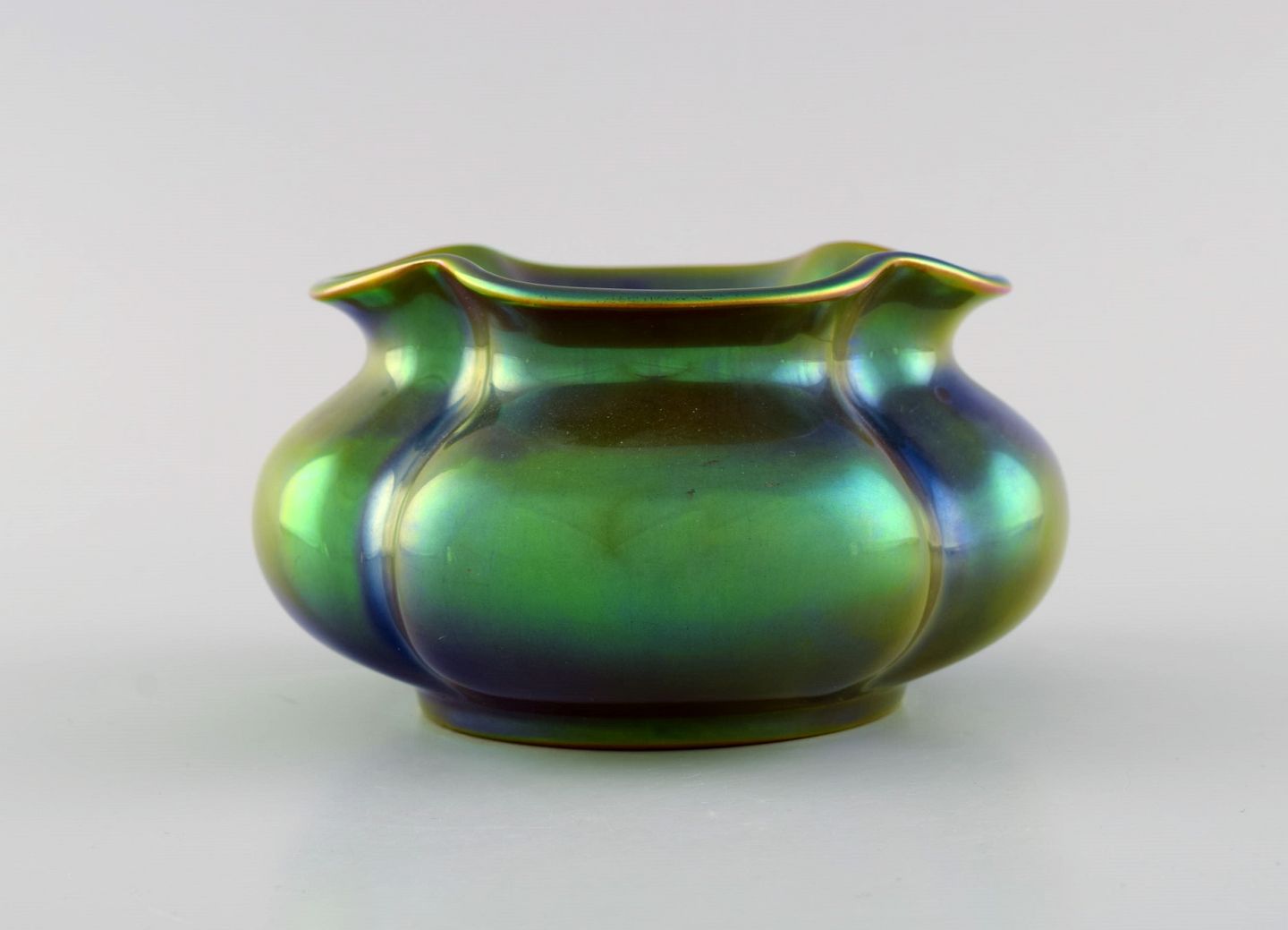 Zsolnay vase i glaseret keramik. Smuk eosinglasur. 1970/80'erne. Måler: 13,5 x 8 cm. I flot stand. Stemplet.