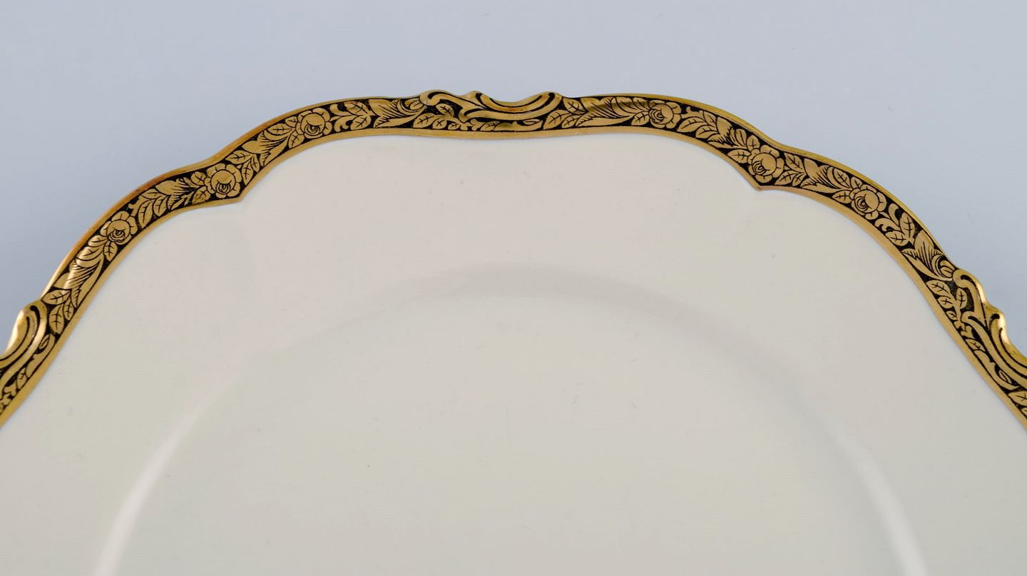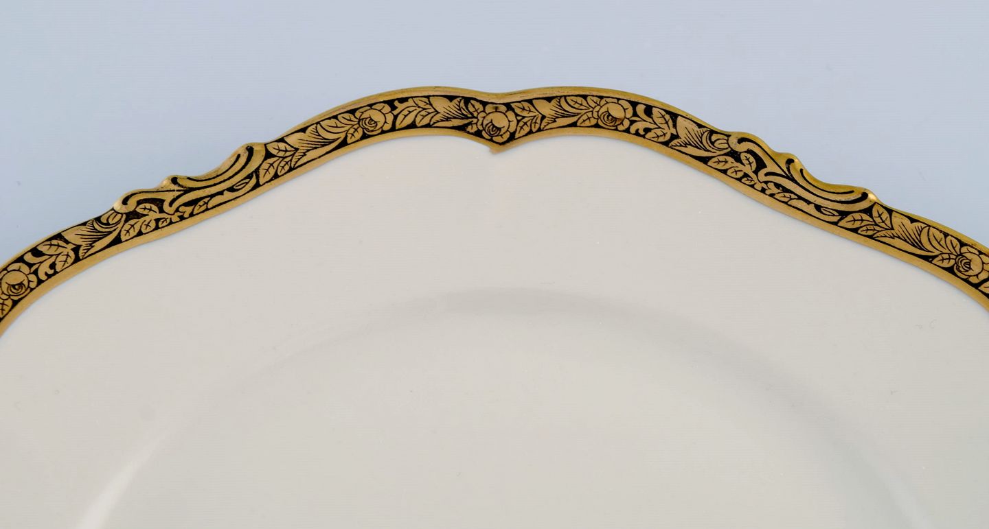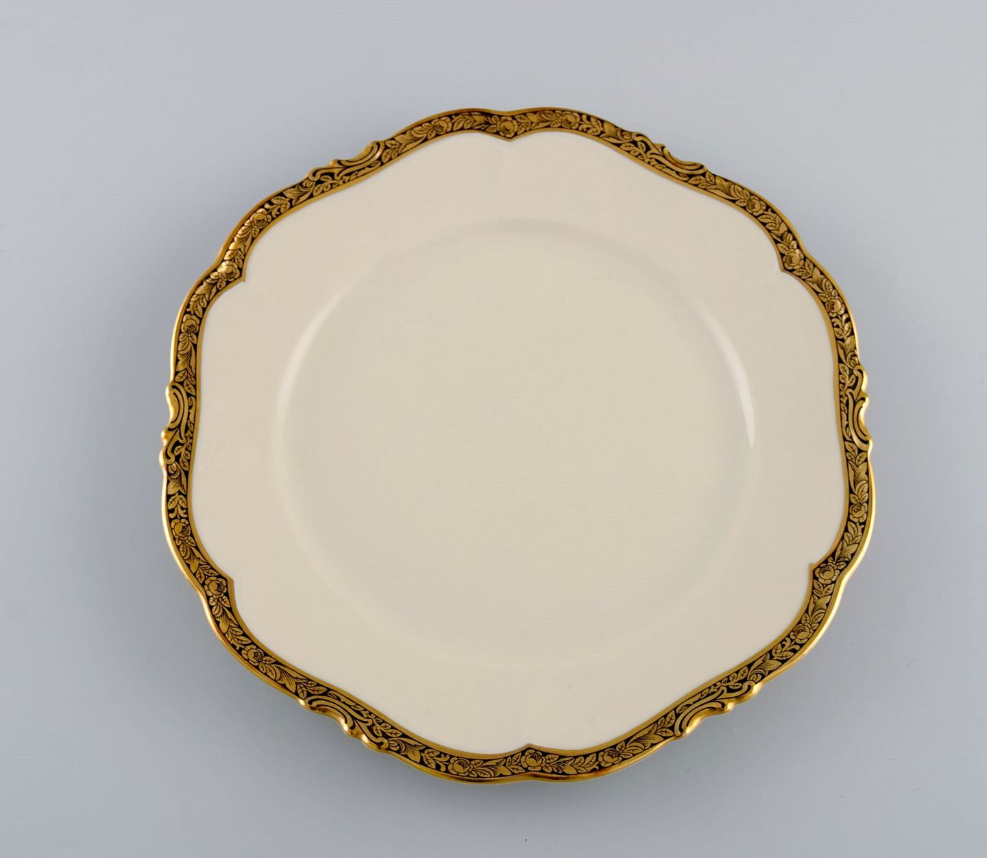 KPM, Berlin. 10 Royal Ivory middagstallerkener i cremefarvet porcelæn med gulddekoration. 1920'erne. Diameter: 24,5 cm. I flot stand. Stemplet.