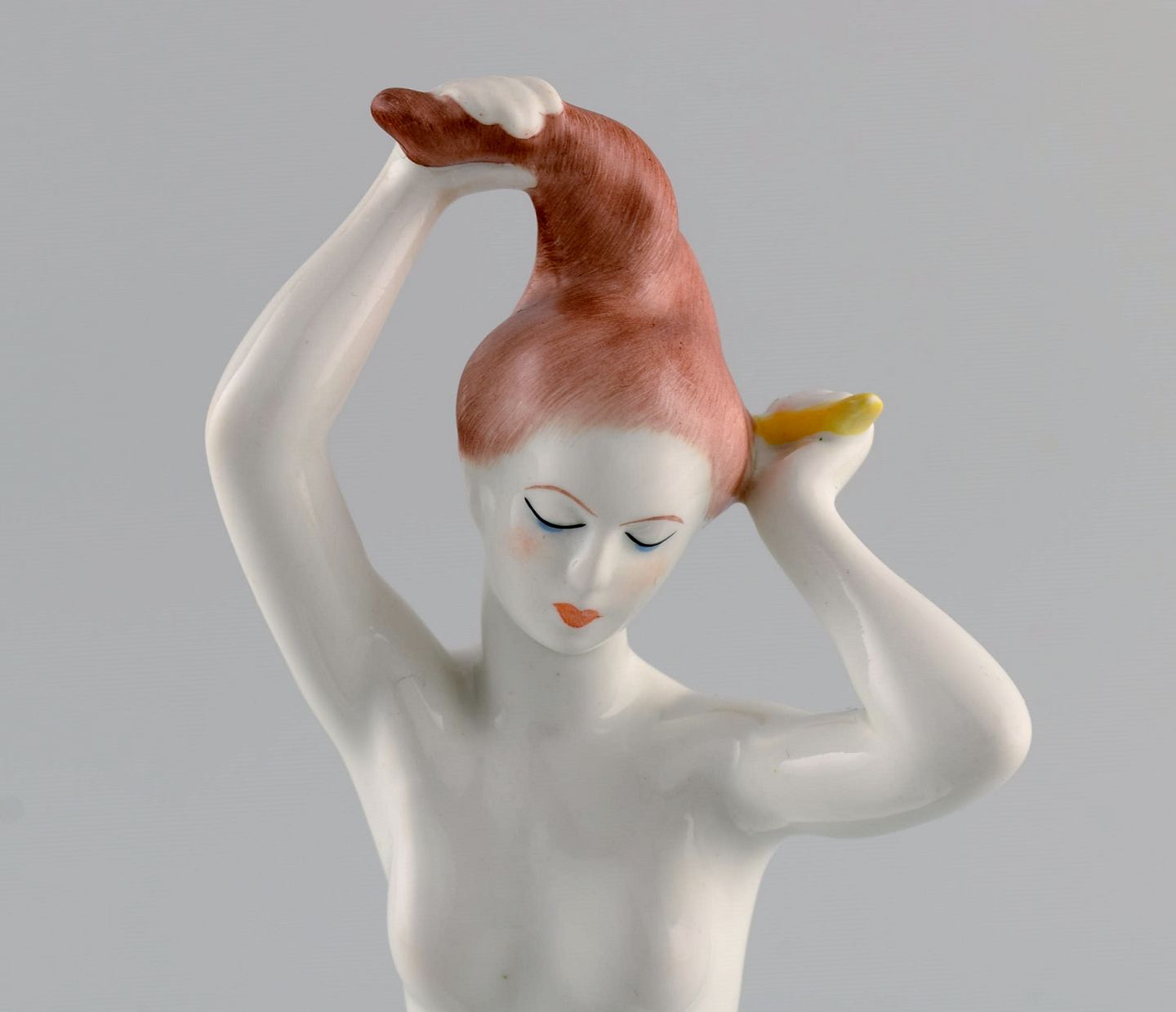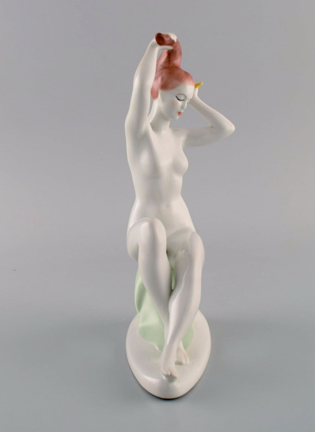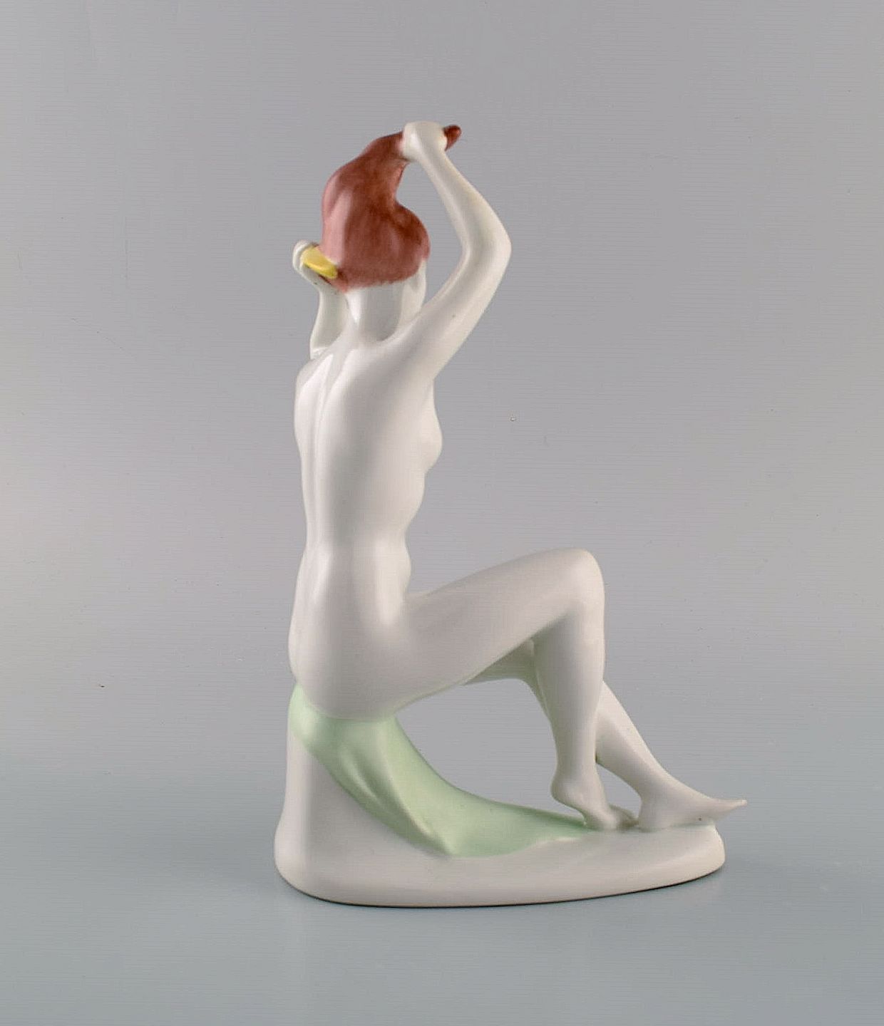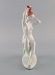 Aquincum, Budapest. Håndmalet art deco porcelænsfigur. Nøgen kvinde reder sit hår. 1940'erne. Måler: 22 x 15 cm. I flot stand. Stemplet.