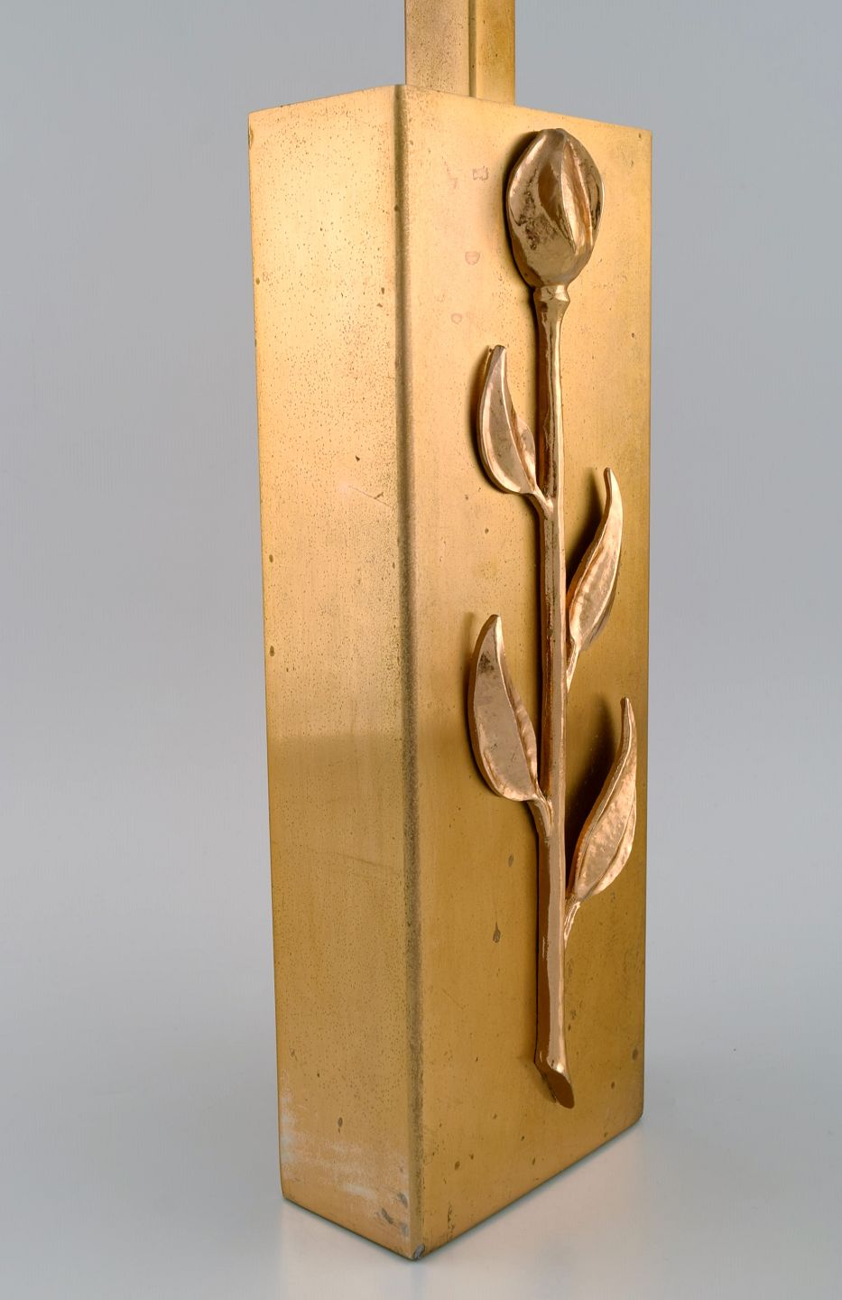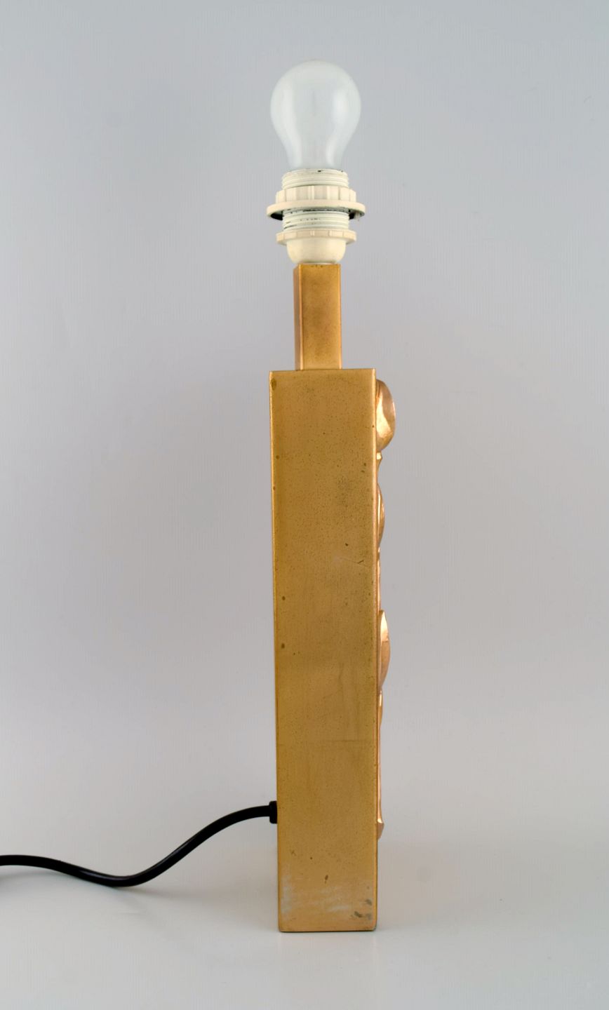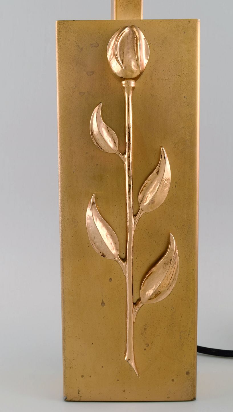 Maison Charles stil. Bordlampe i messing modelleret med blomst. Frankrig, 1960'erne. Måler: 39 x 12 x 6 cm (eks. fatning). I flot stand.