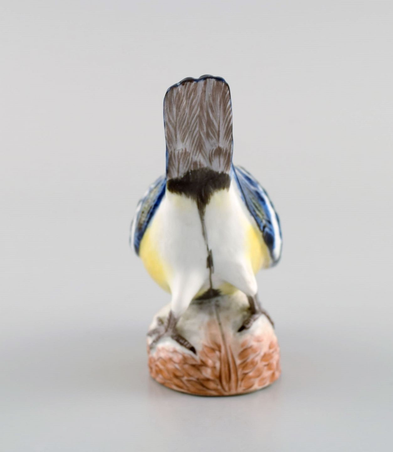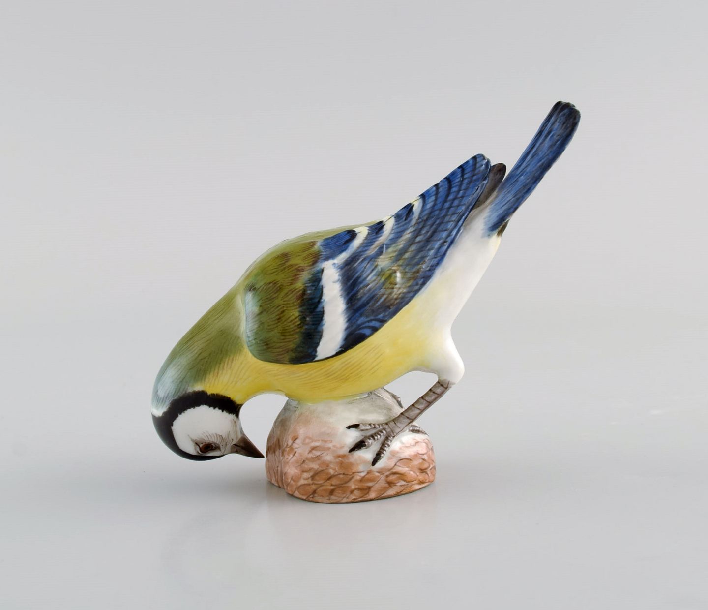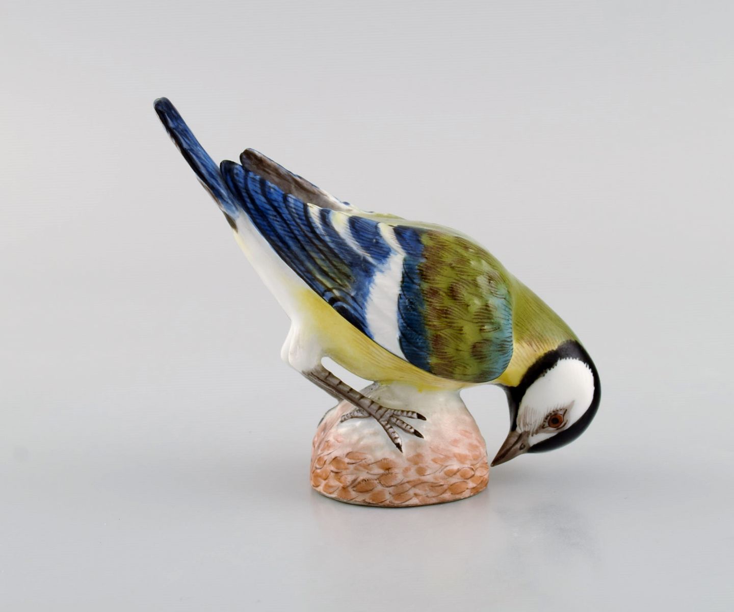 Meissen, Tyskland. Antik håndmalet porcelænsfigur. Fugl. Sent 1800-tallet. Måler: 10,5 x 8,8 cm. I flot stand. Stemplet.