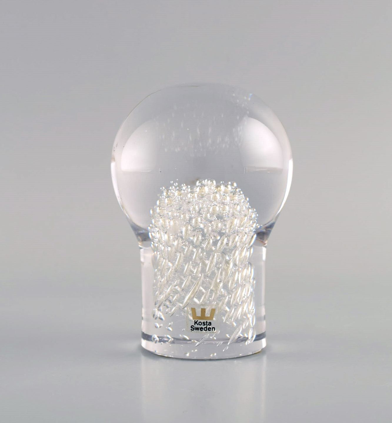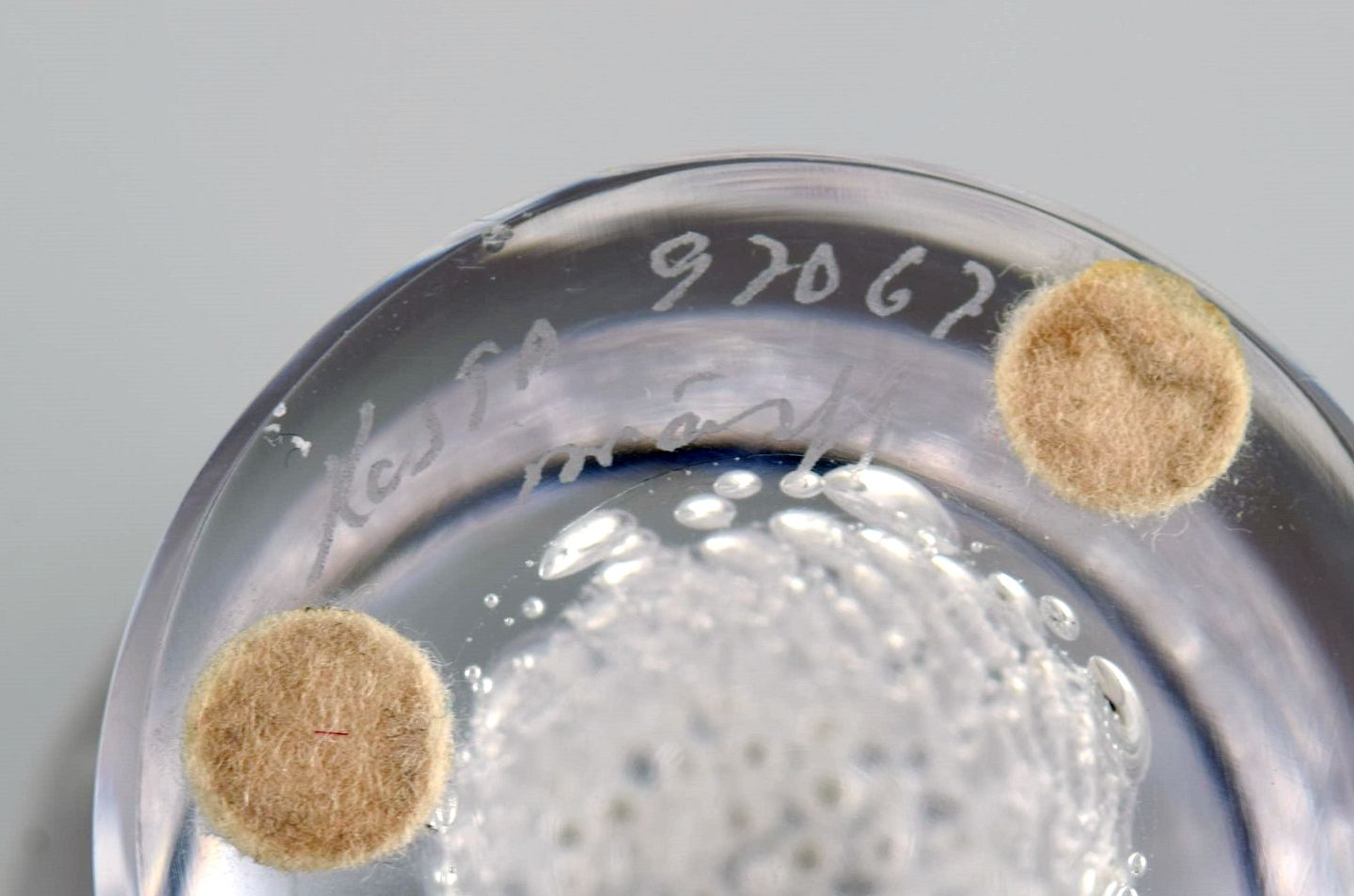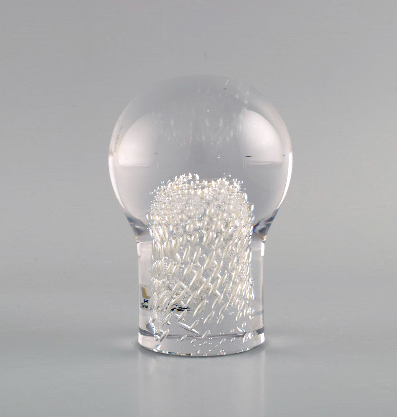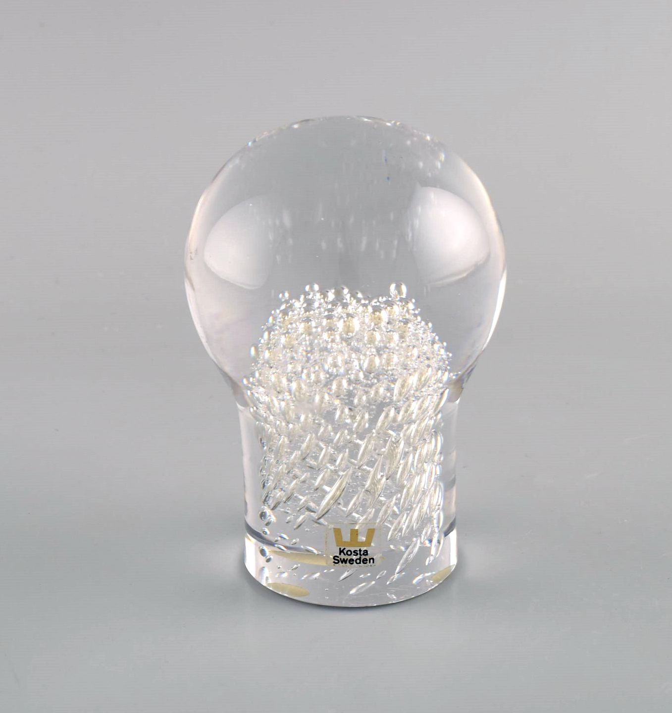 Göran Wärff for Kosta Boda. Skulptur / brevvægt i klart mundblæst kunstglas med indlagte bobler. Svensk design, 1970/80'erne. Måler: 11 x 7,5 cm. I flot stand. Signeret.