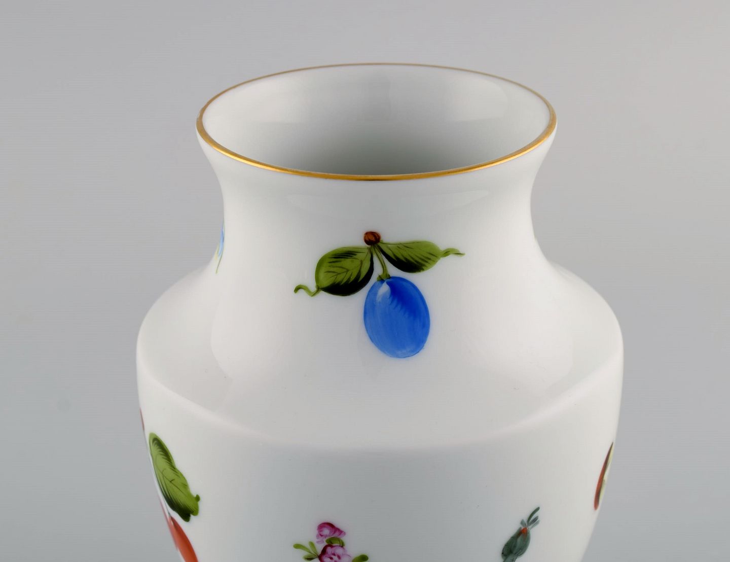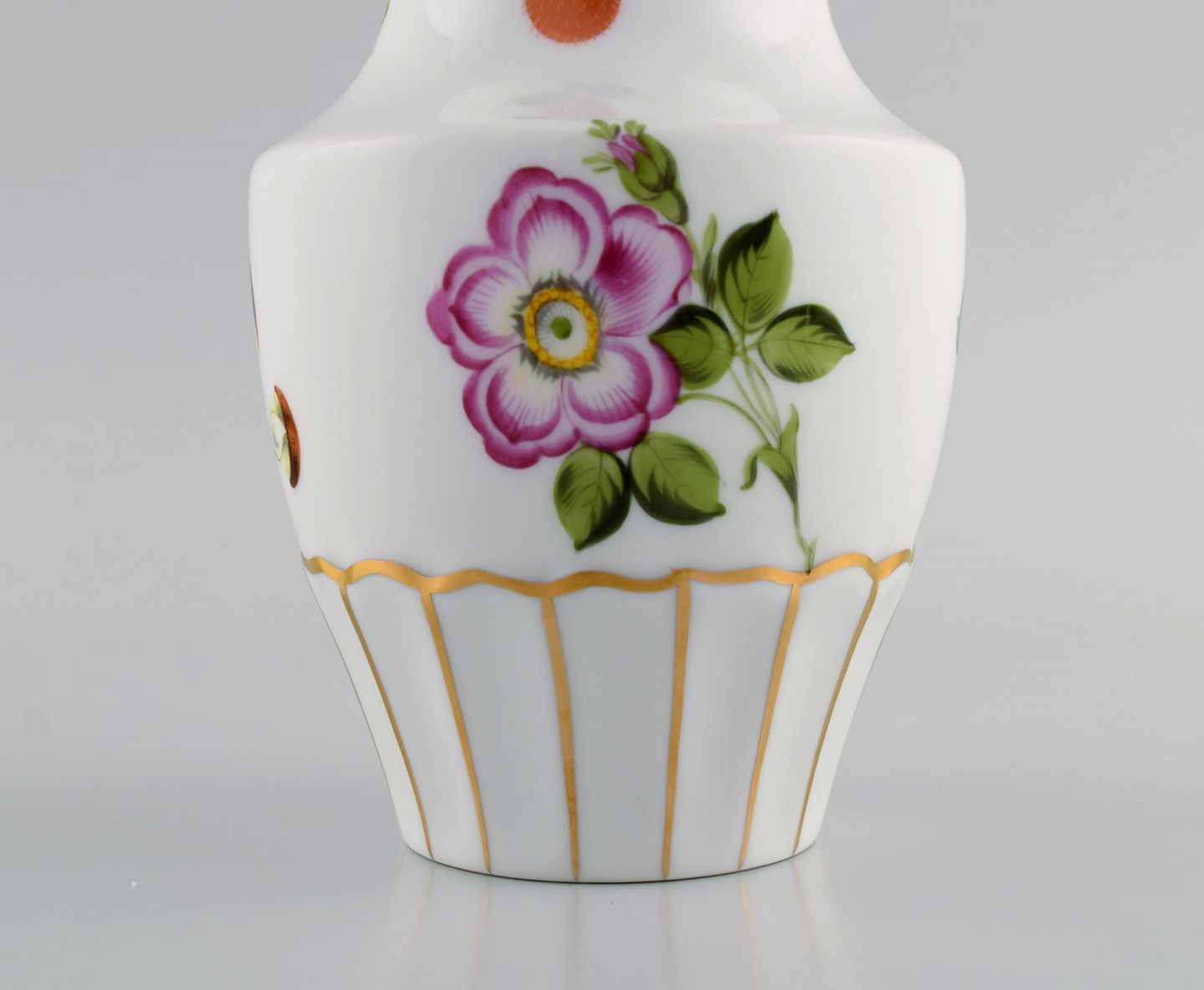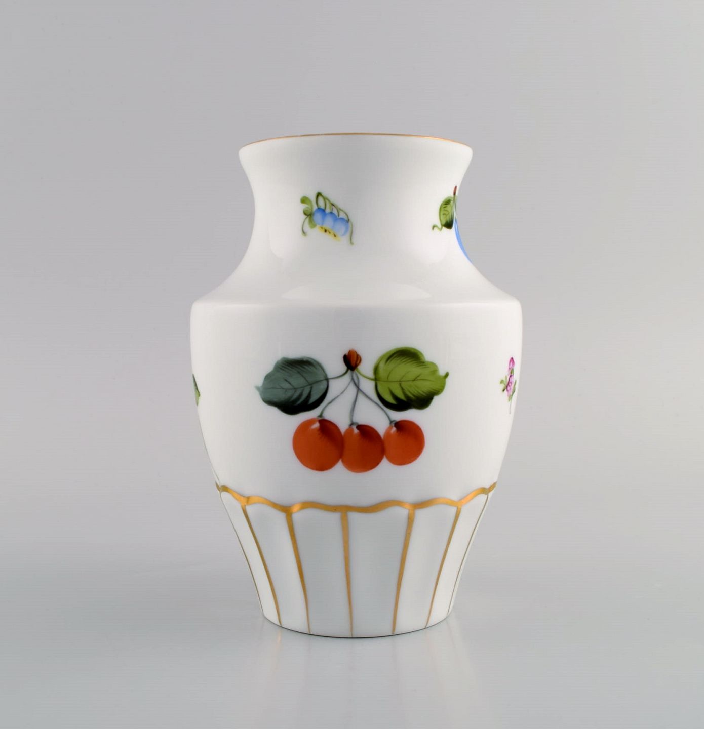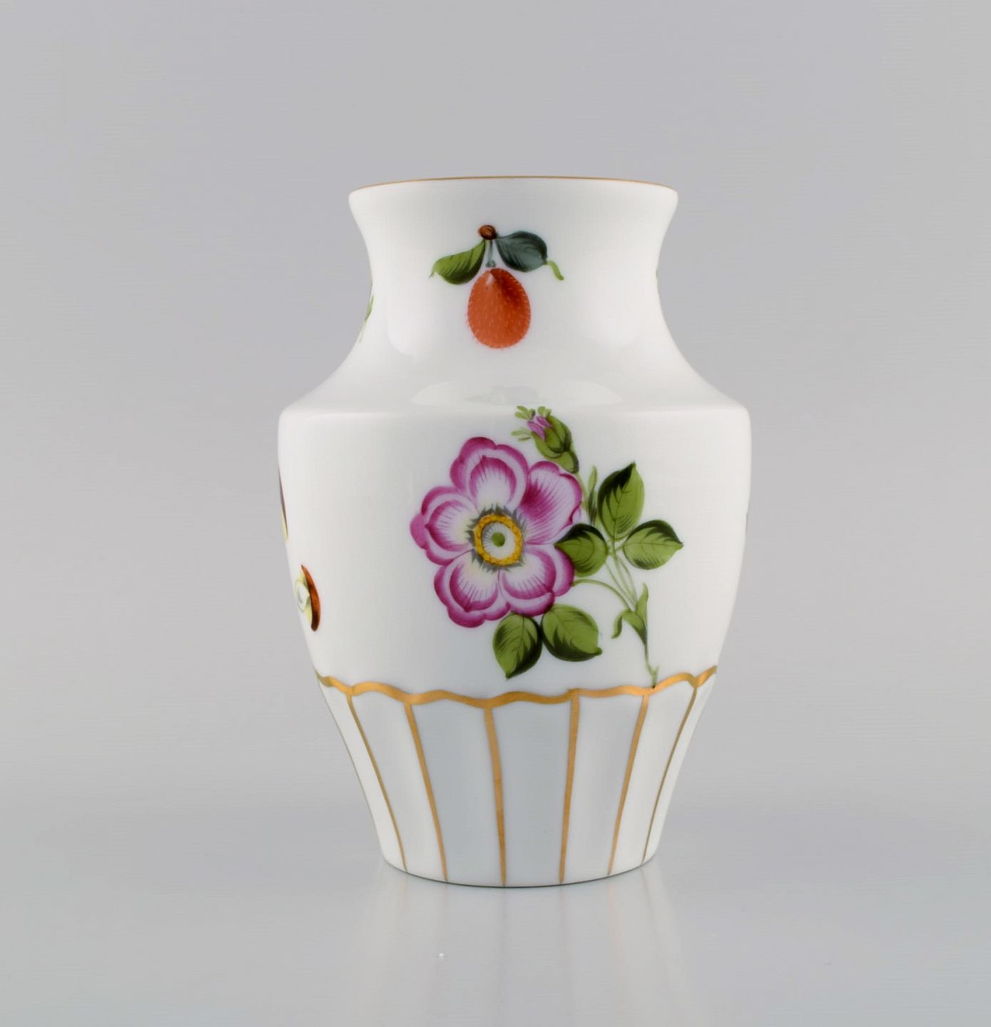 Herend porcelænsvase med håndmalede blomster og bær. Gulddekoration. 1940'erne. Måler: 16 x 12 cm. I flot stand. Stemplet.