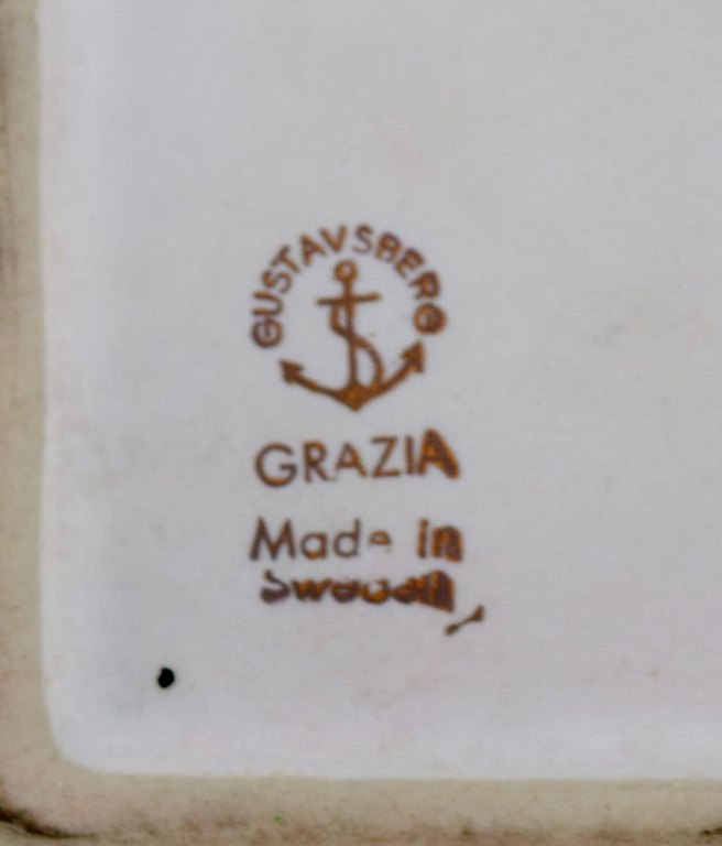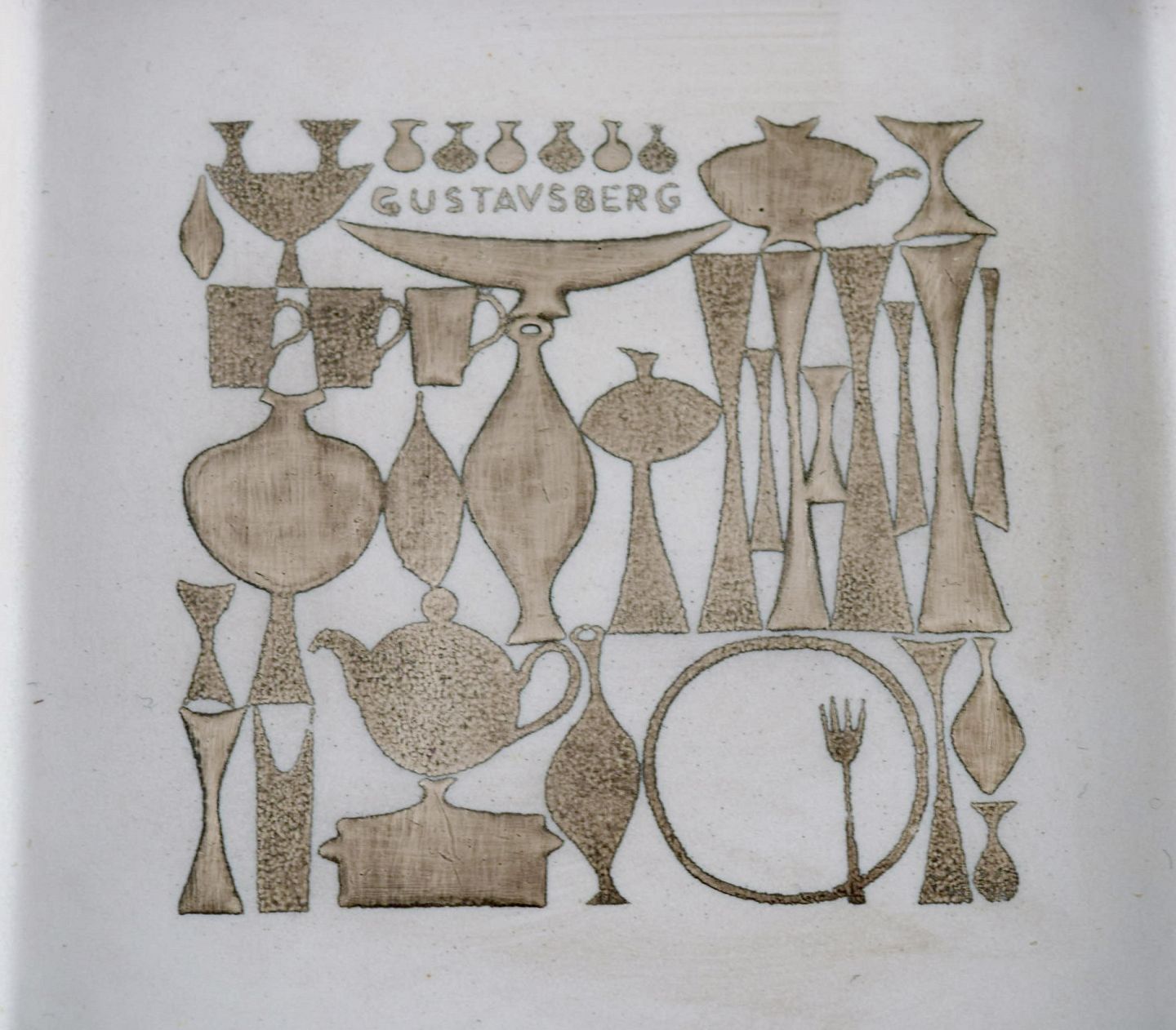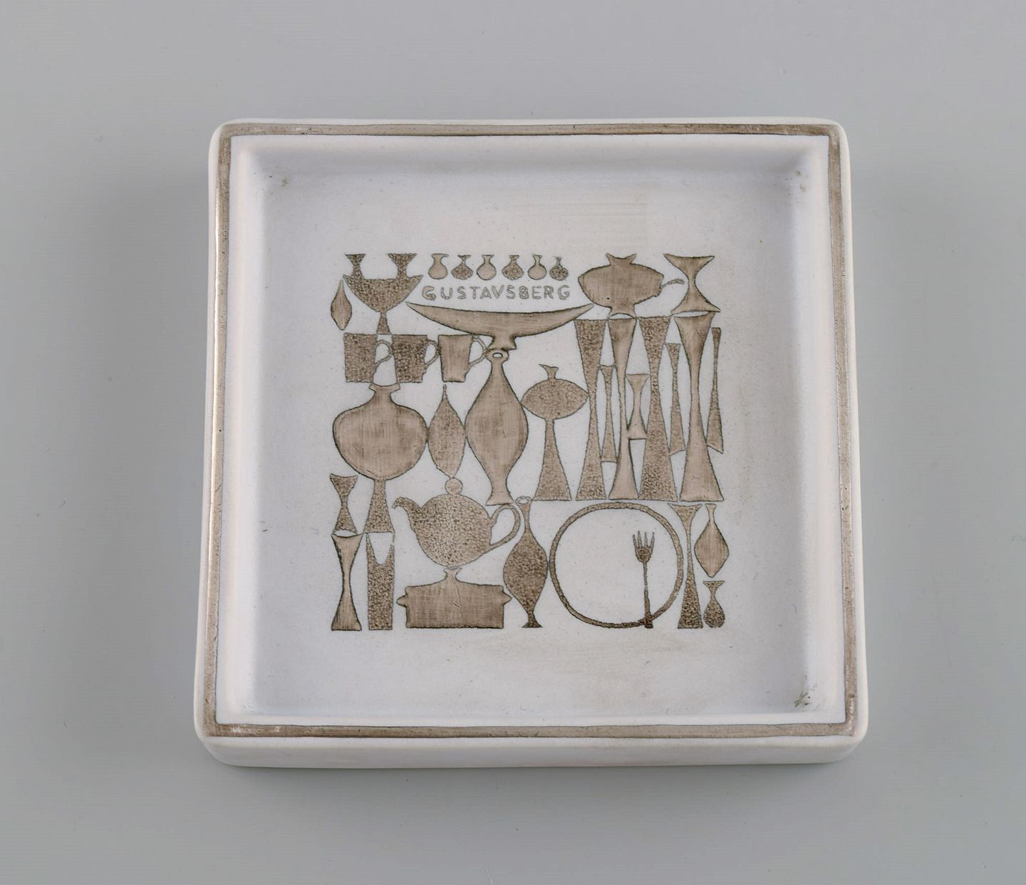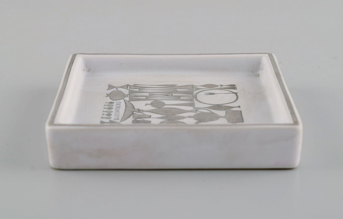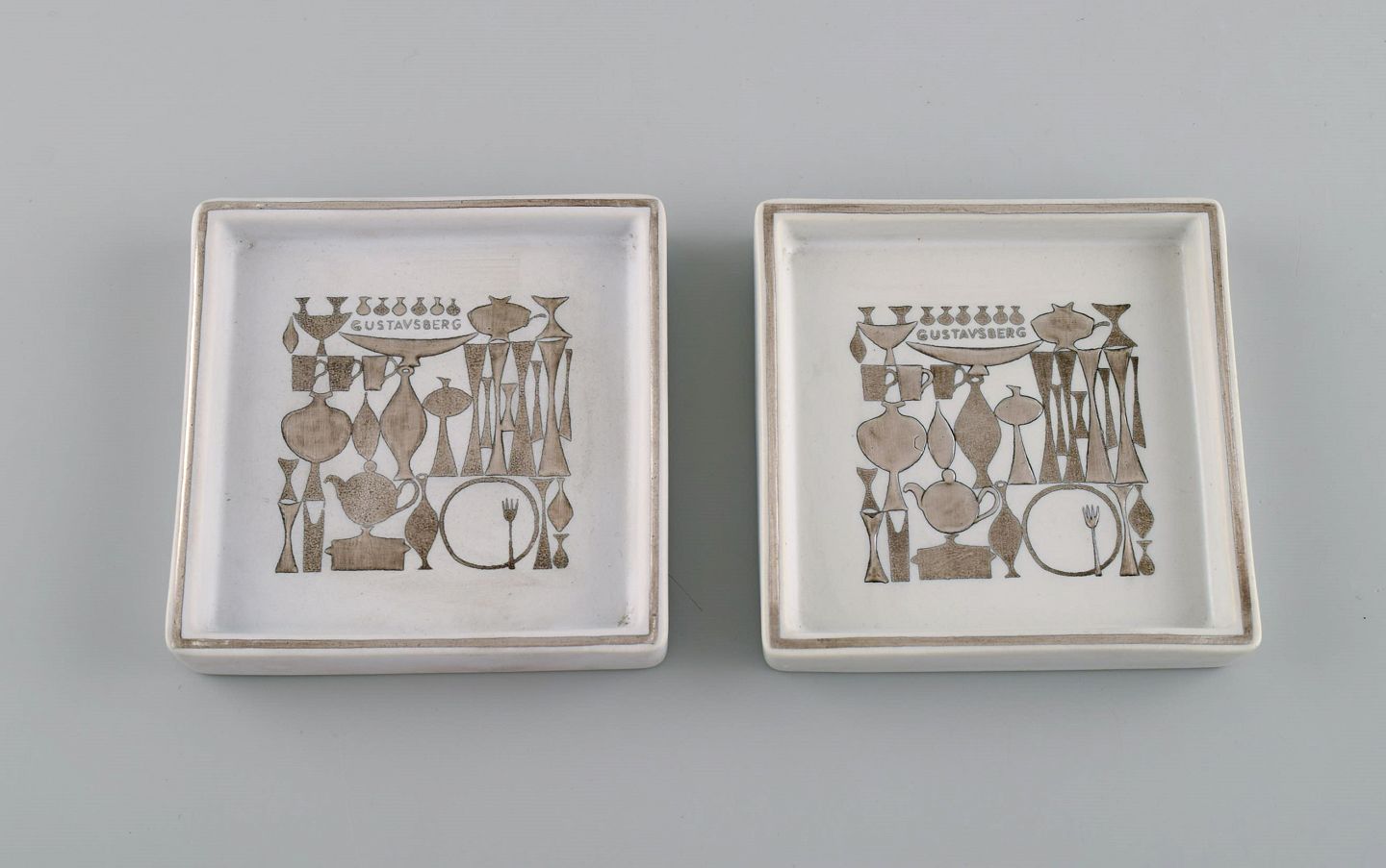 Stig Lindberg (1916-1982) for Gustavsberg. To små Grazia fade i glaseret stentøj med sølvindlæg. Midt 1900-tallet. Måler: 9 x 9 x 1,7 cm. I flot stand. Stemplet.