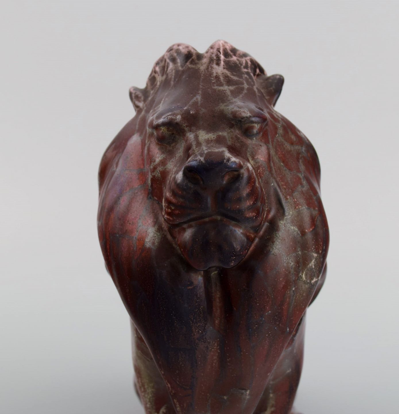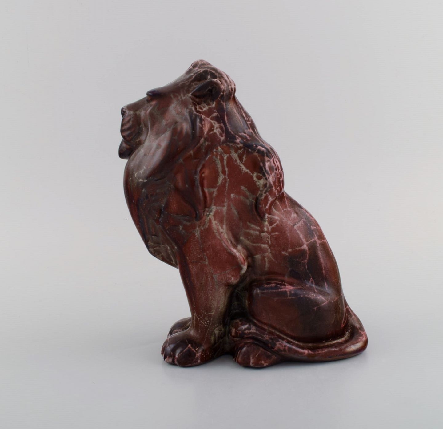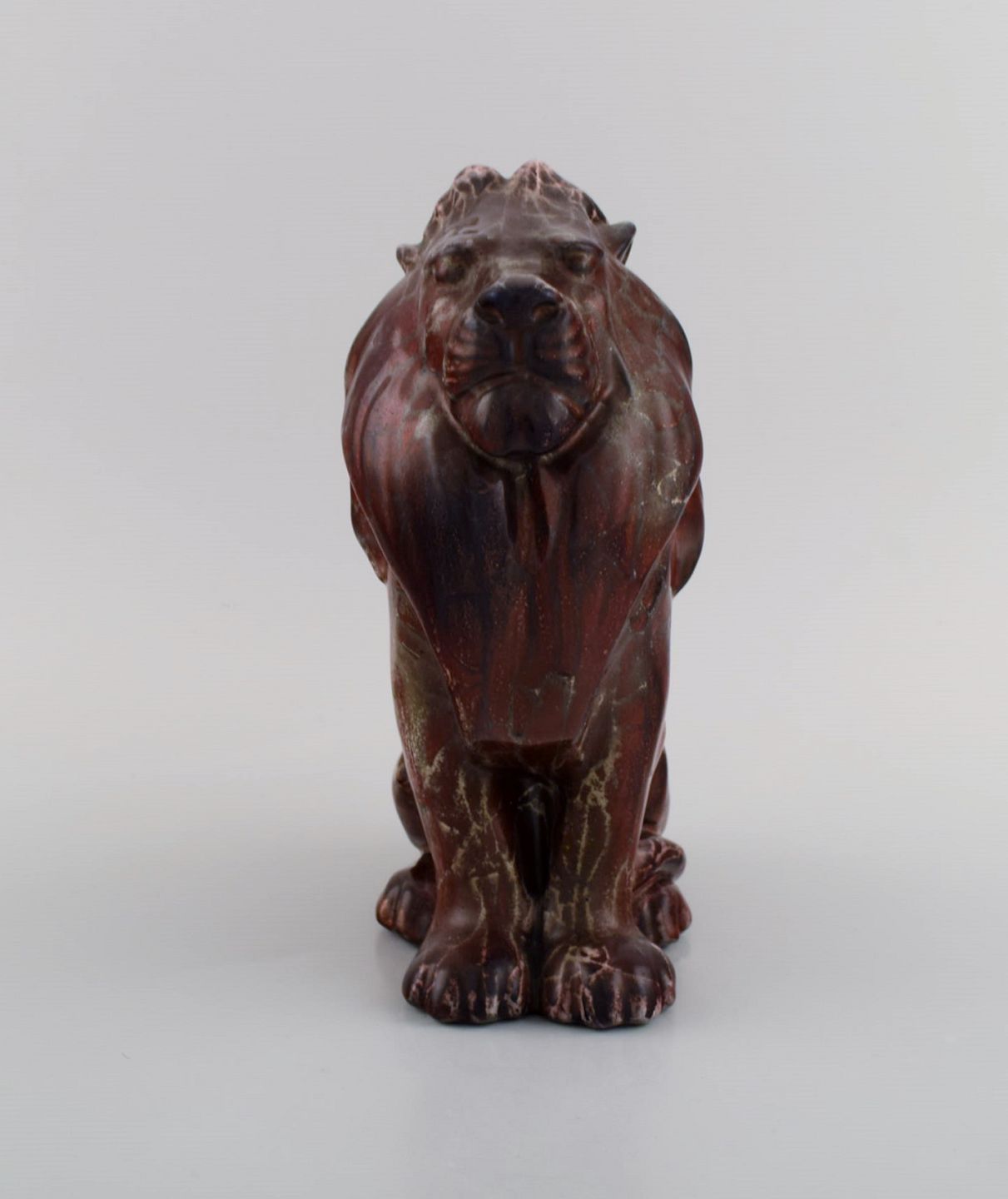 Karl Hansen Reistrup (1863-1929) for Kähler. Meget sjælden løve i glaseret stentøj. Smuk okseblodsglasur. 1890'erne. Måler: 21,5 x 18 cm. I flot stand. Signeret.
