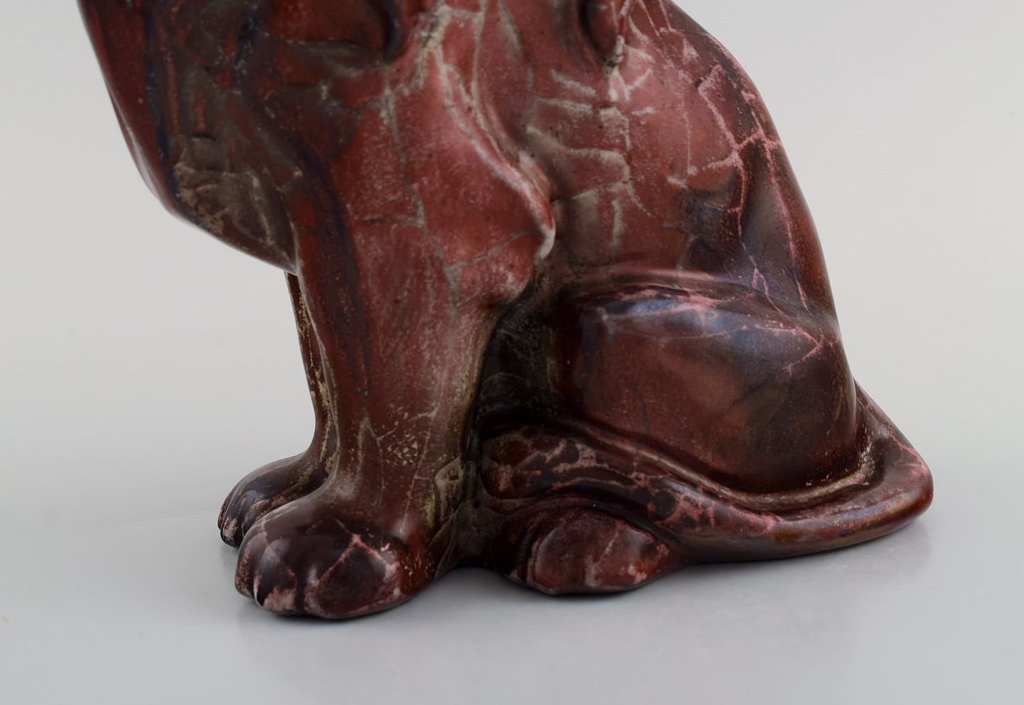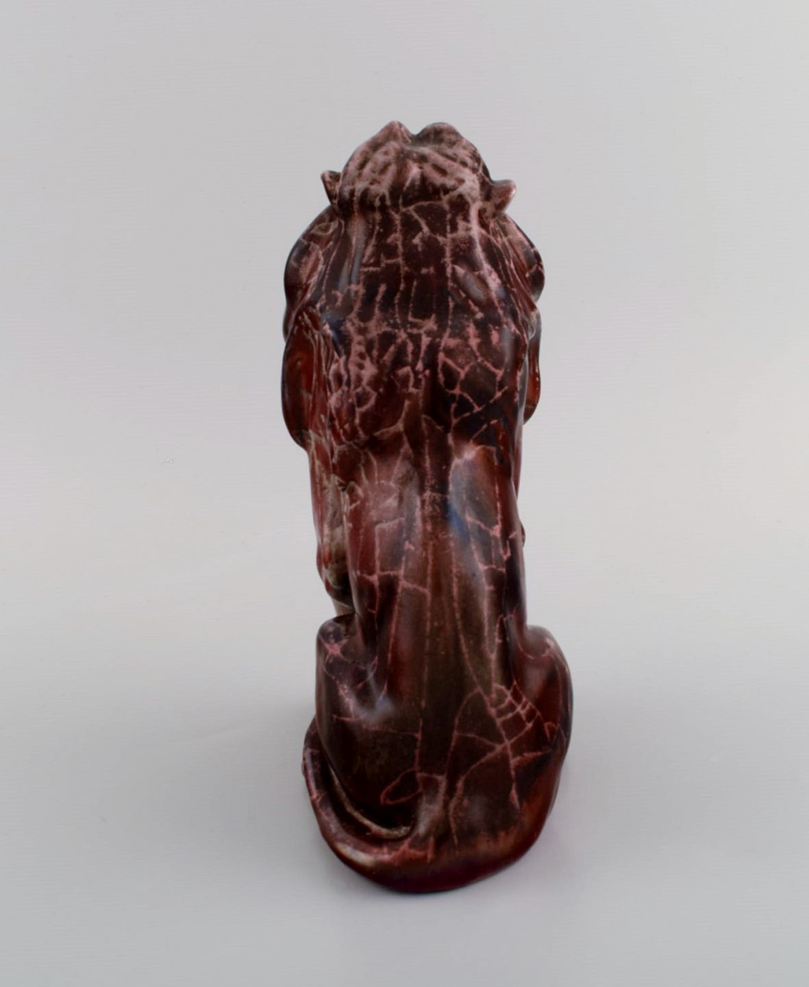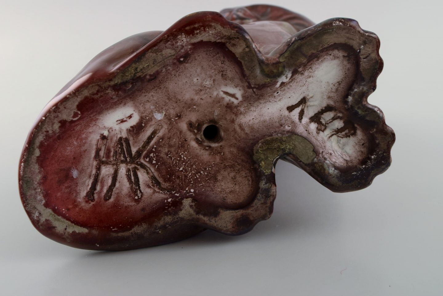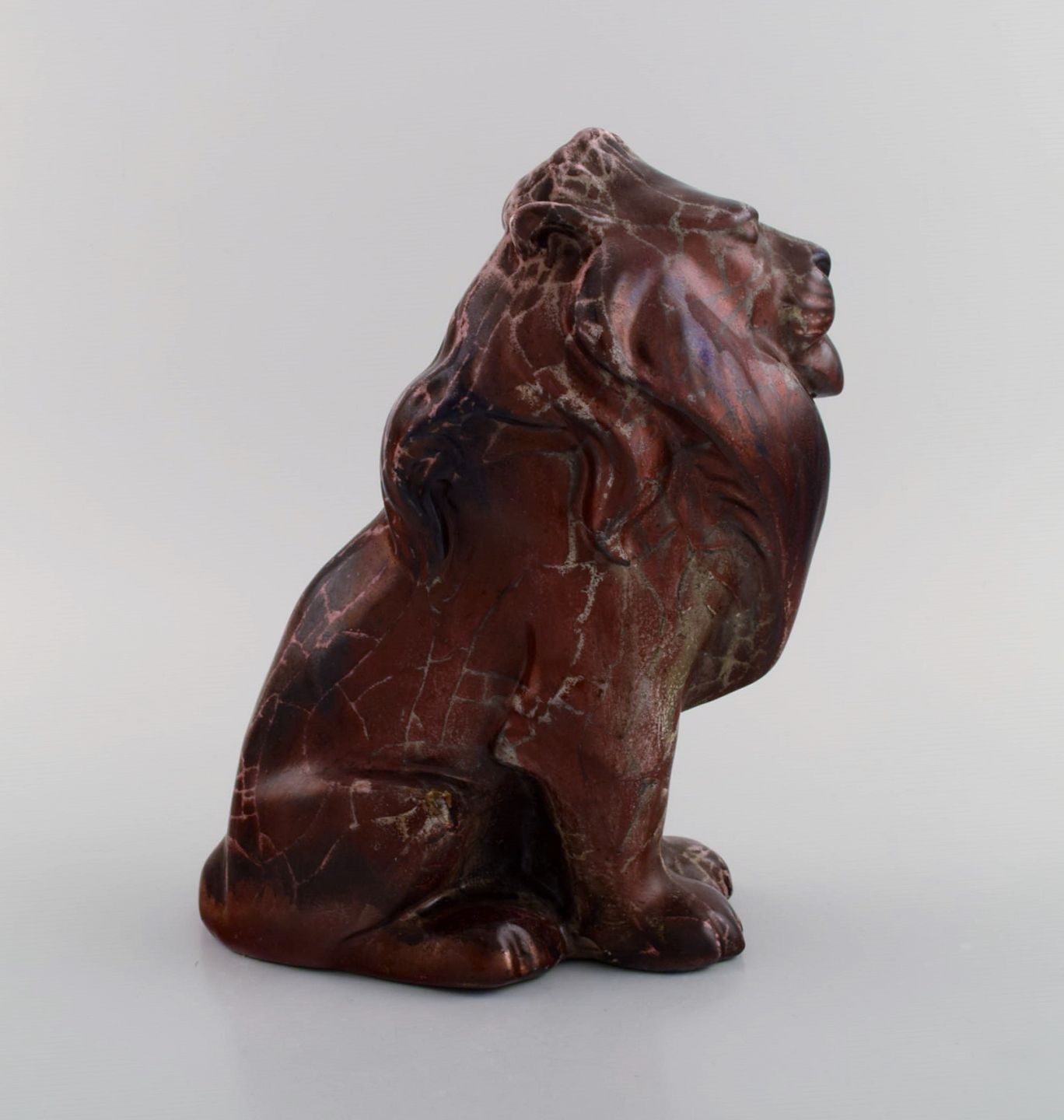 Karl Hansen Reistrup (1863-1929) for Kähler. Meget sjælden løve i glaseret stentøj. Smuk okseblodsglasur. 1890'erne. Måler: 21,5 x 18 cm. I flot stand. Signeret.