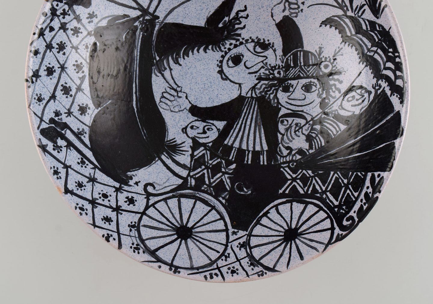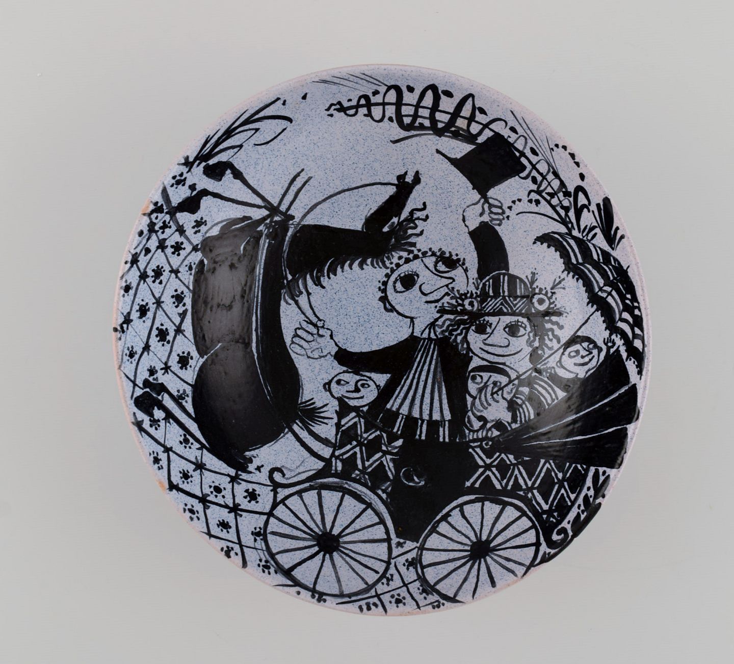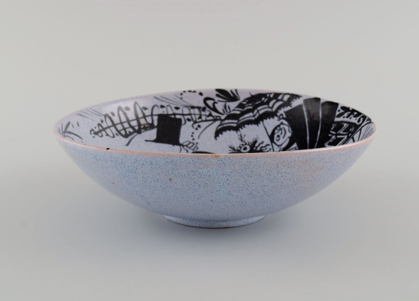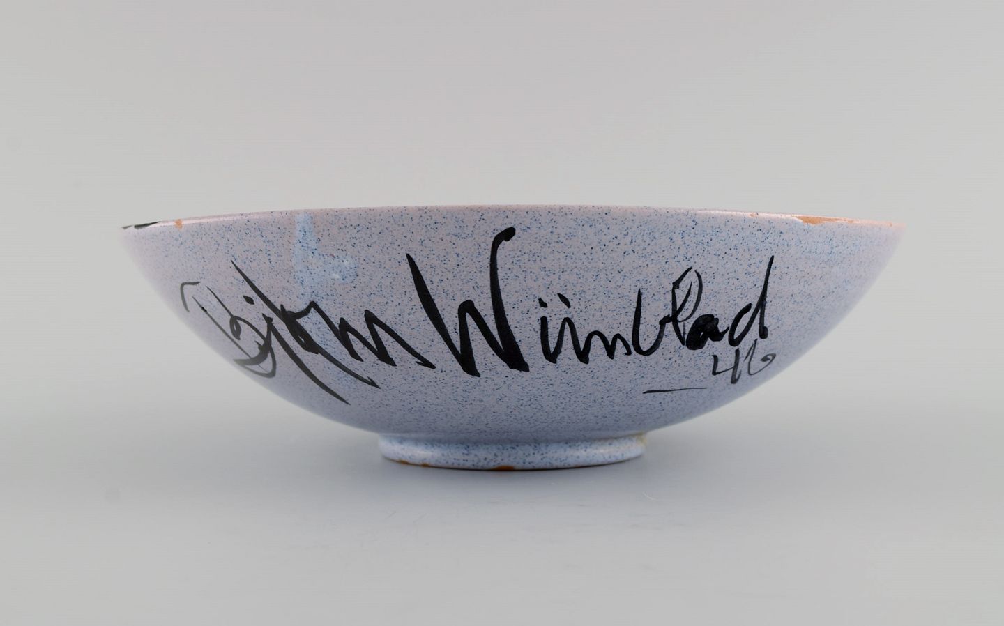 Bjørn Wiinblad (1918-2006), Danmark. Tidlig unika skål i håndmalet og glaseret keramik. Dateret 1946. Måler: 18,5 x 6 cm. I flot stand. Signeret og dateret.