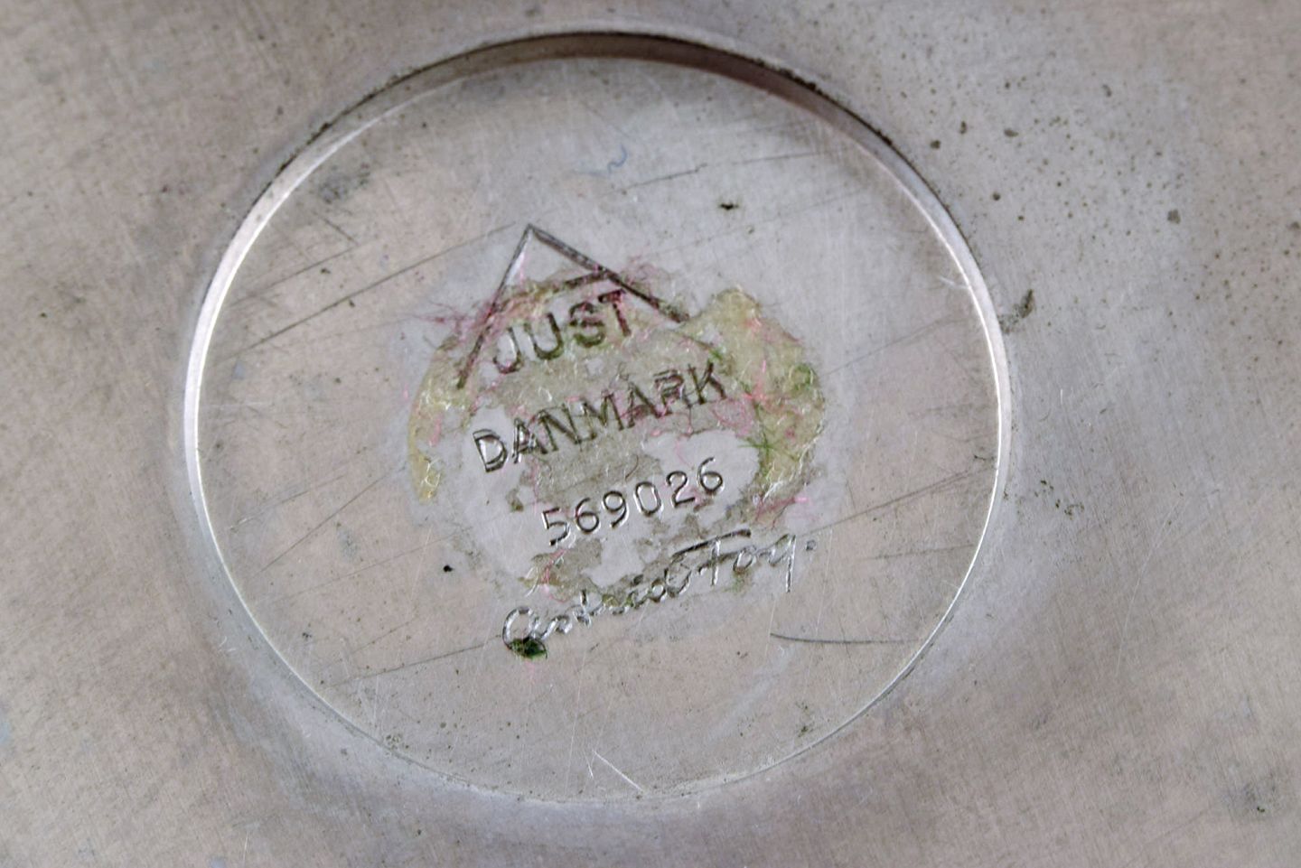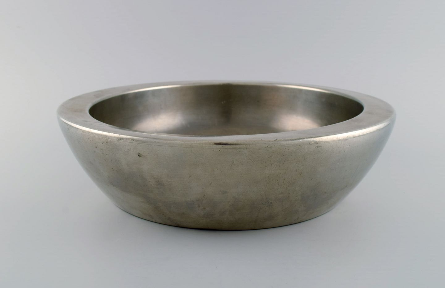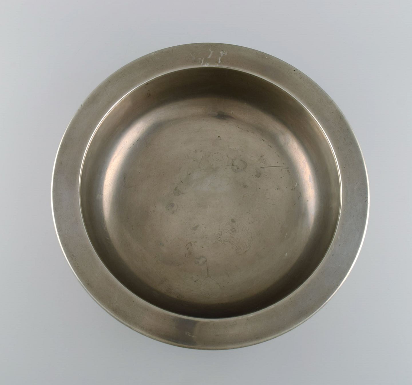 Astrid Fog for Just Andersen. Stor modernistisk tin skål. Stilrent design, midt 1900-tallet. Måler: 35 x 9,5 cm. I flot stand. Stemplet.