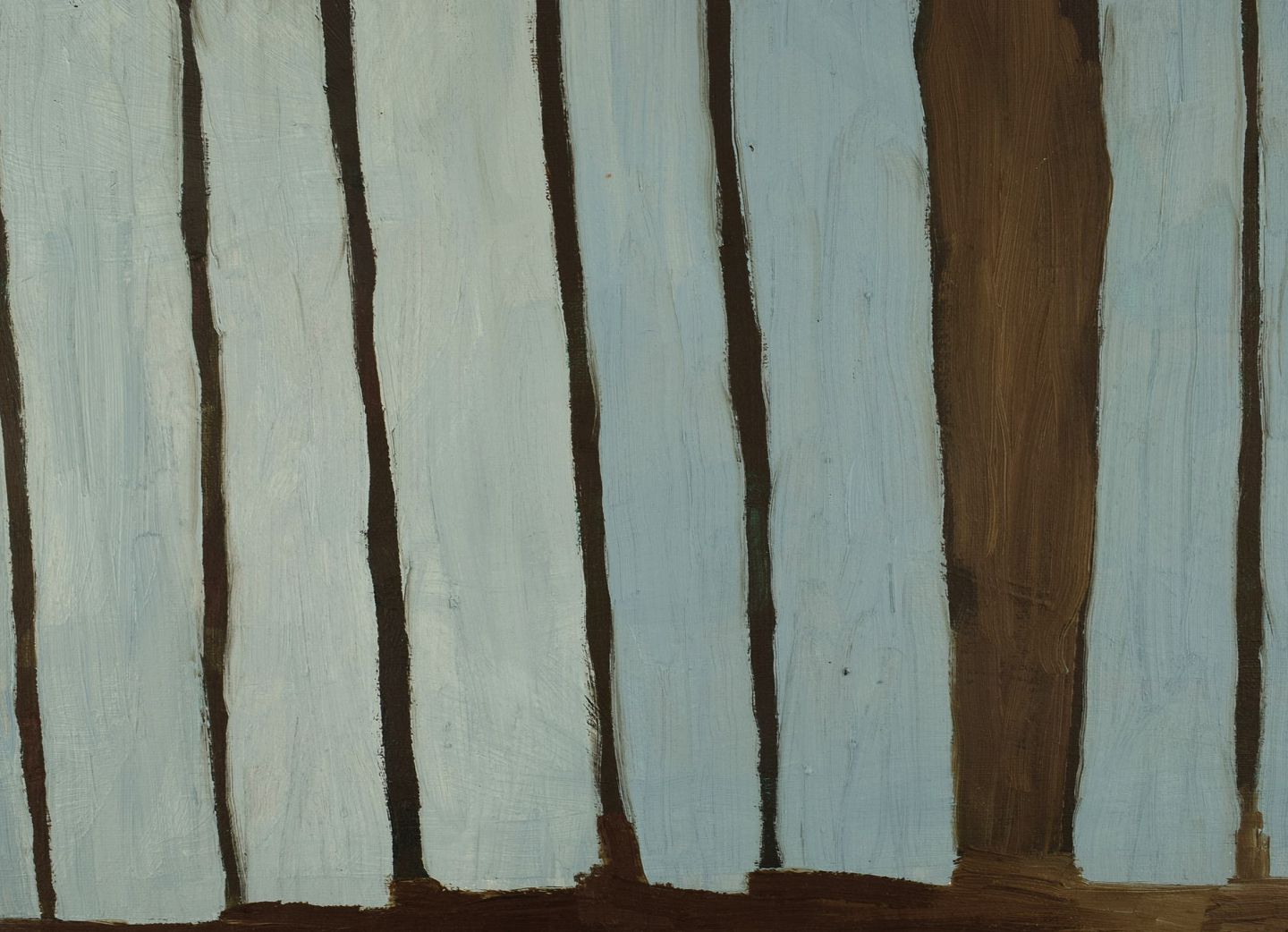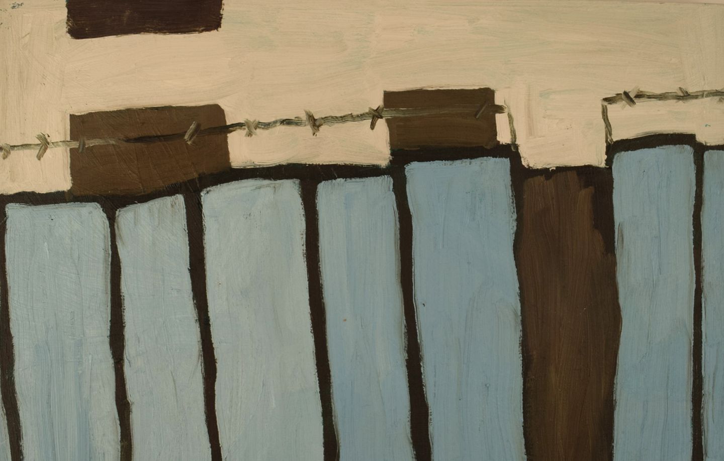 Marie Hvid Pørksen (f. 1971), Danmark. Olie på lærred. Hegn med pigtråd. Dateret 2010. Lærredet måler: 40 x 40 cm. I flot stand. Signeret og dateret.