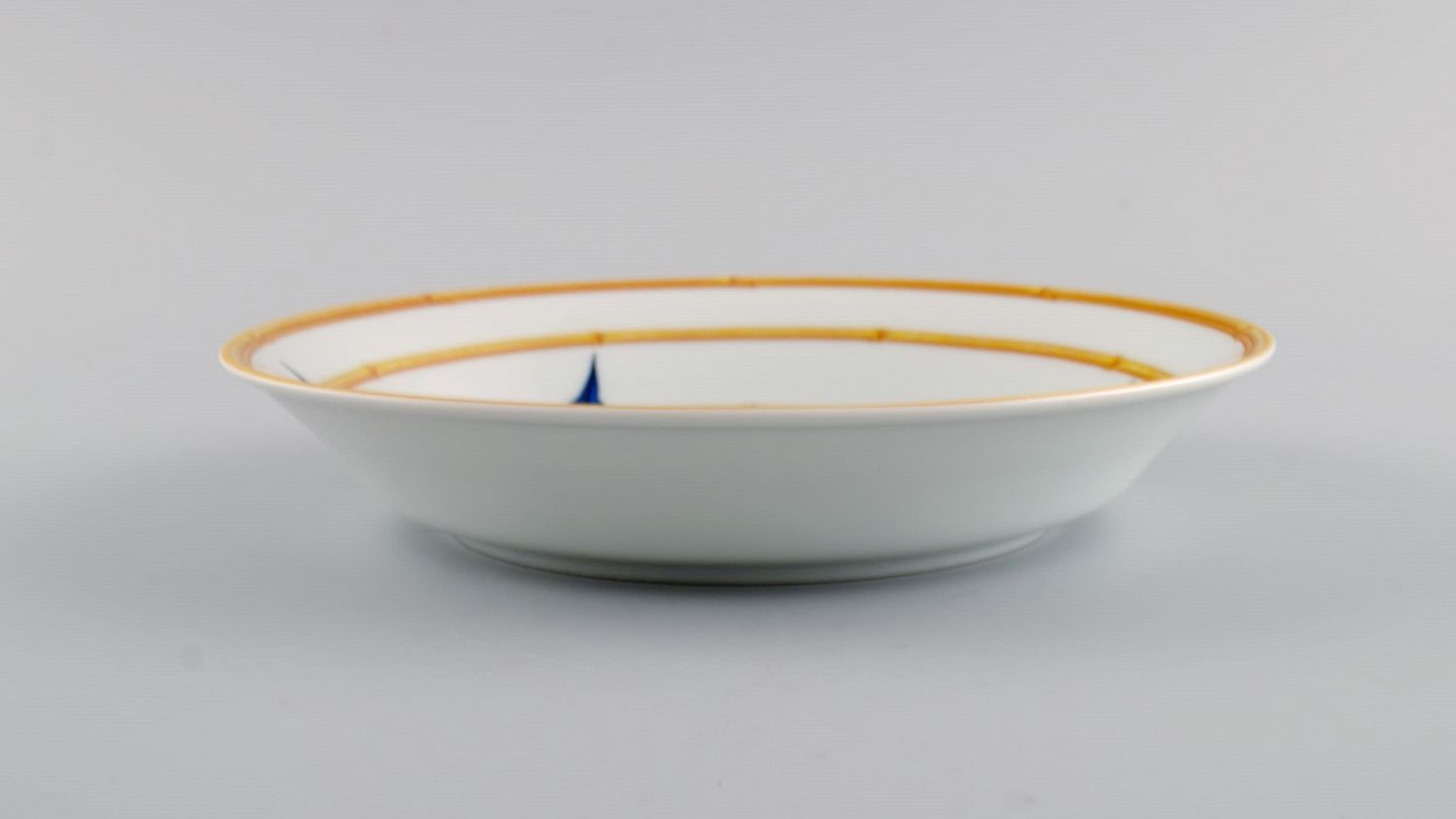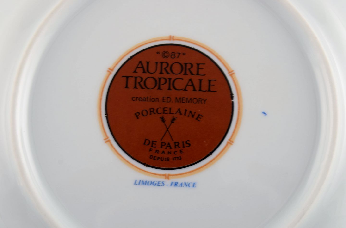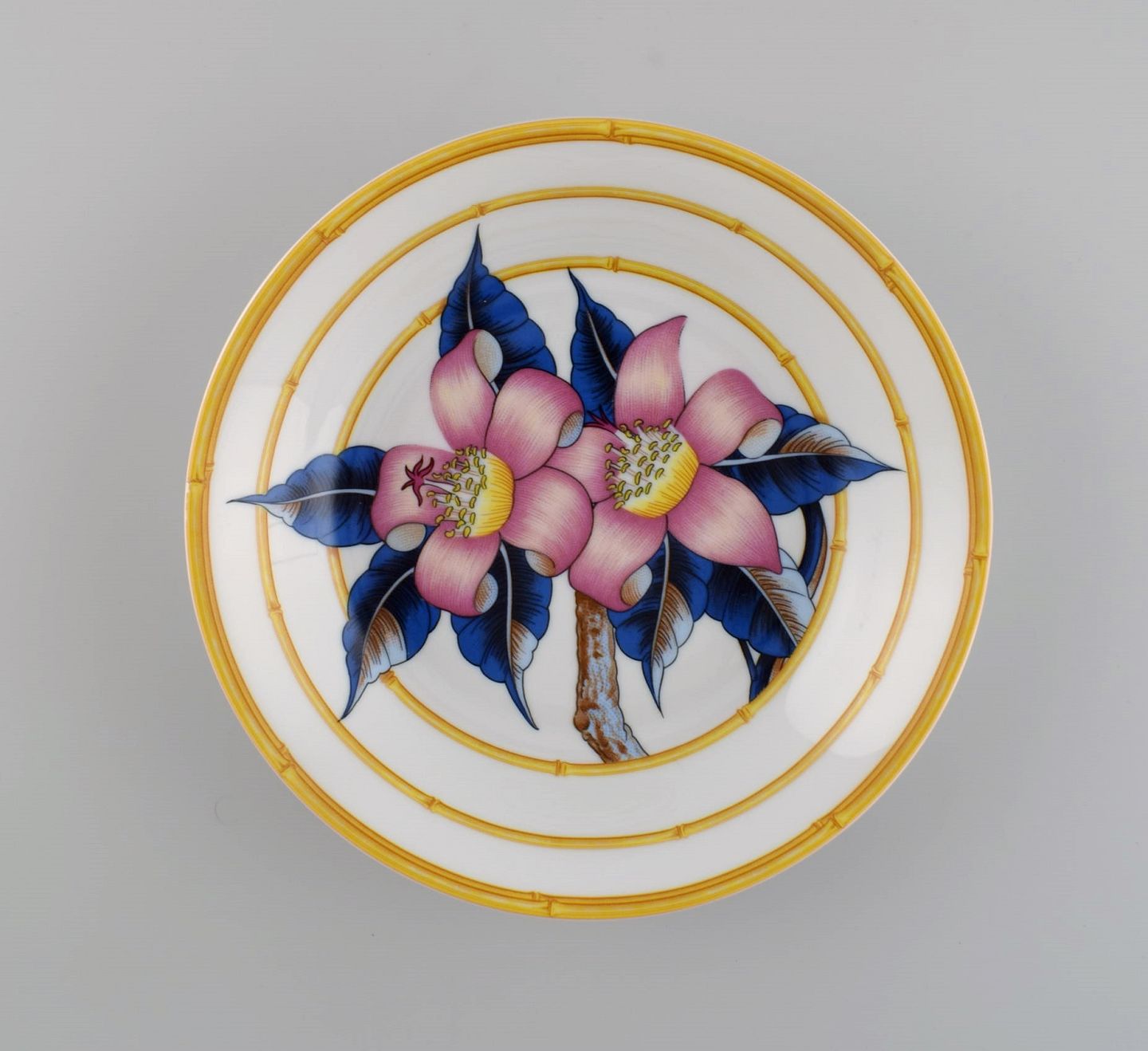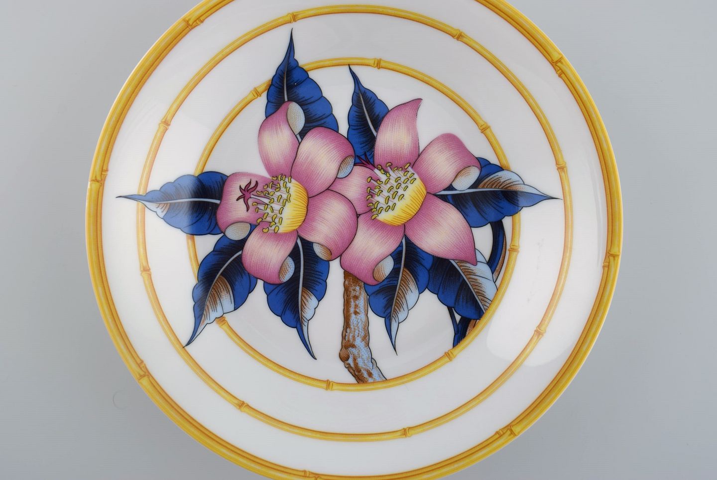 Porcelaine de Paris. "Aurore Tropicale". 15 dybe tallerkener i porcelæn dekoreret med blomster og bambus. 1980'erne. Måler: 19 x 3,5 cm. I flot stand. Stemplet.