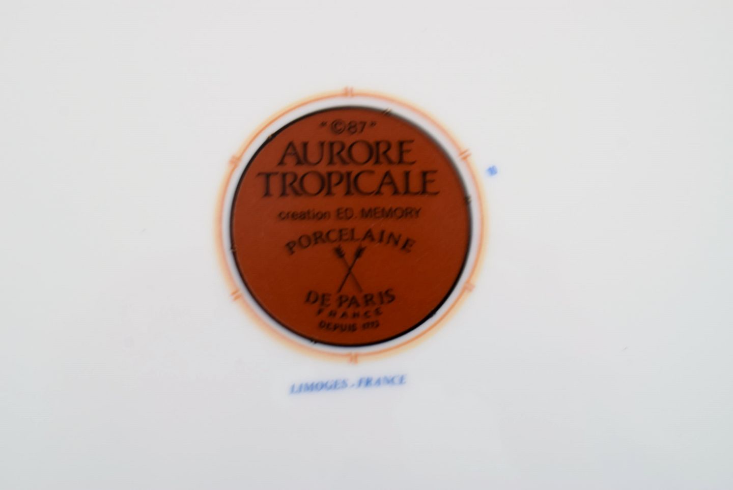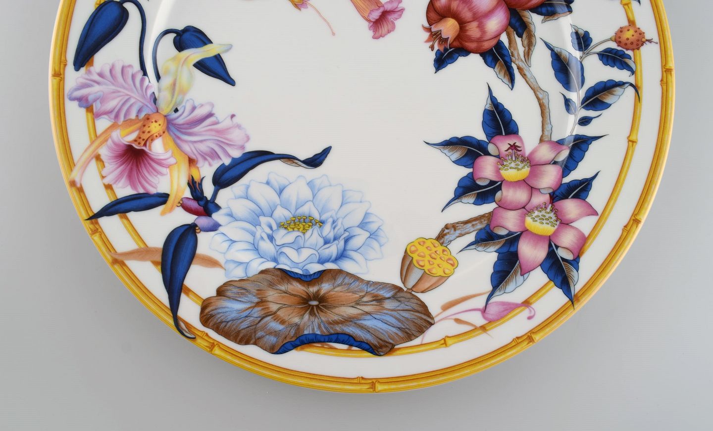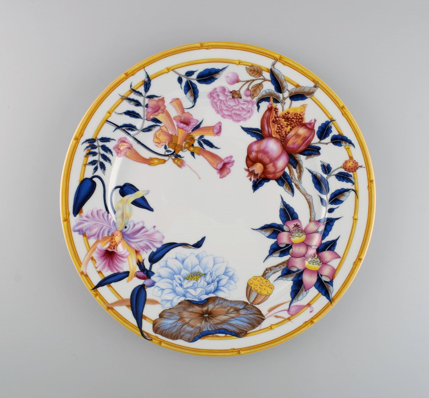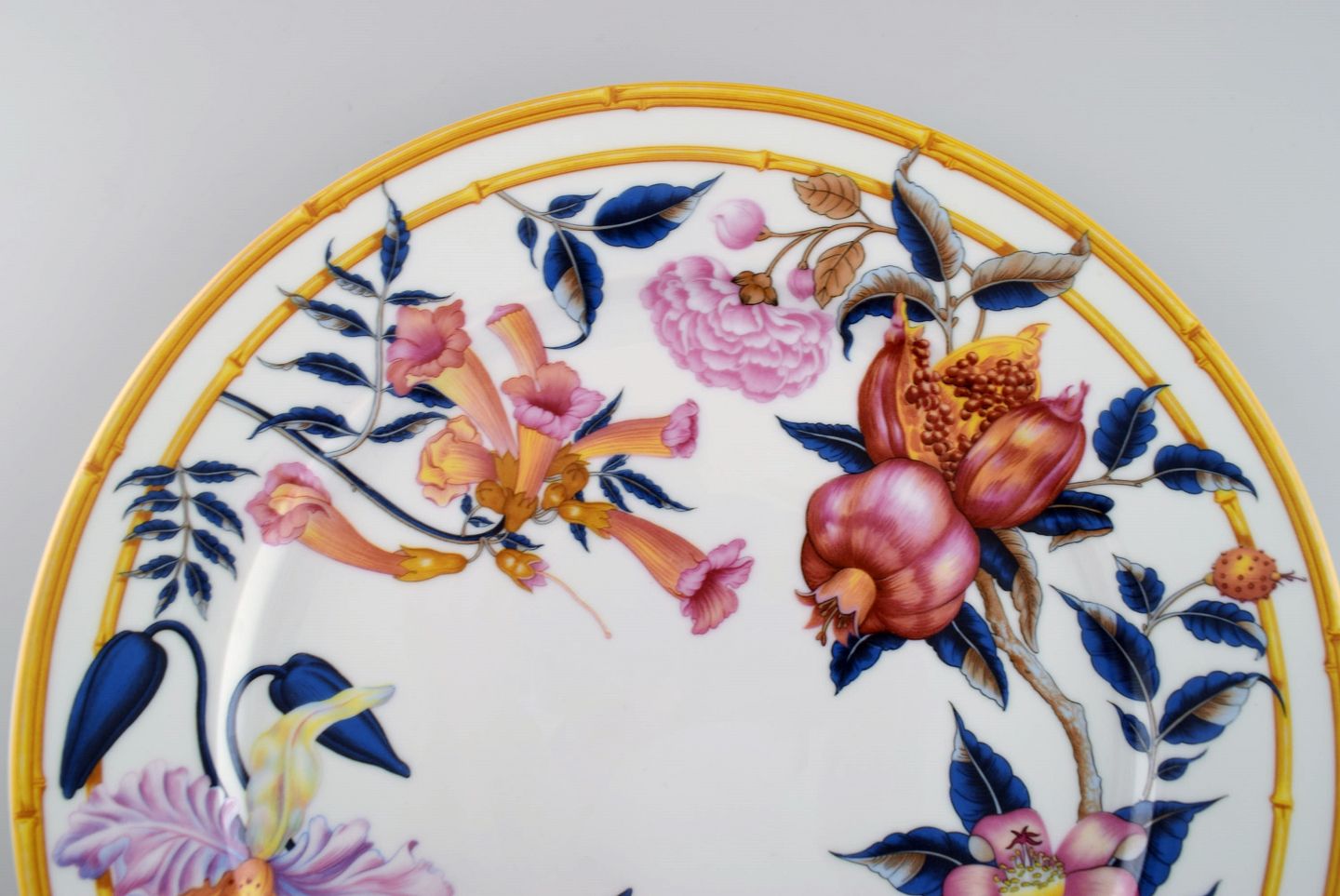 Porcelaine de Paris. "Aurore Tropicale". 10 dækketallerkener i porcelæn dekoreret med blomster og granatæbler. 1980'erne. Diameter: 31,5 cm. I flot stand. Stemplet.