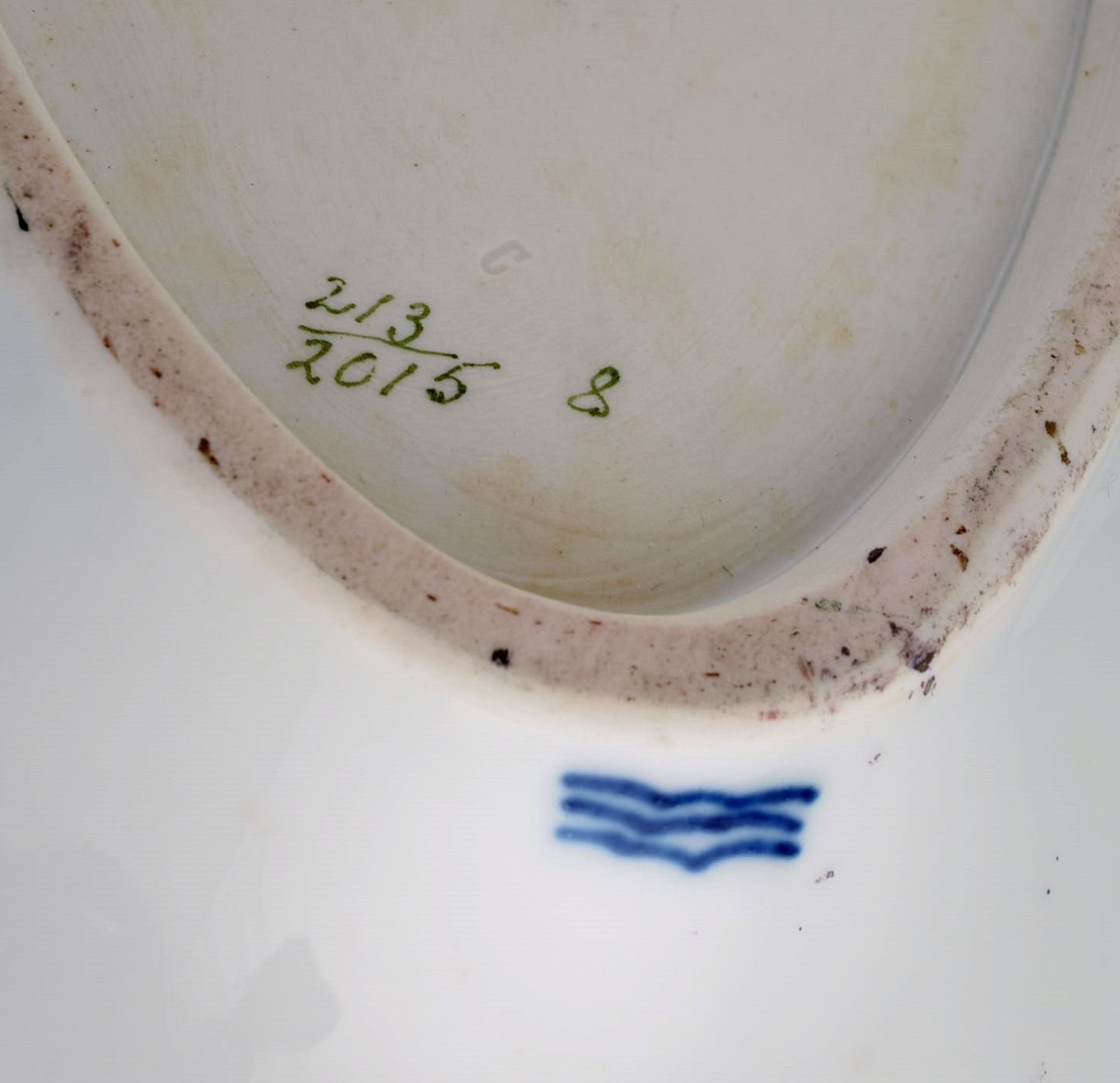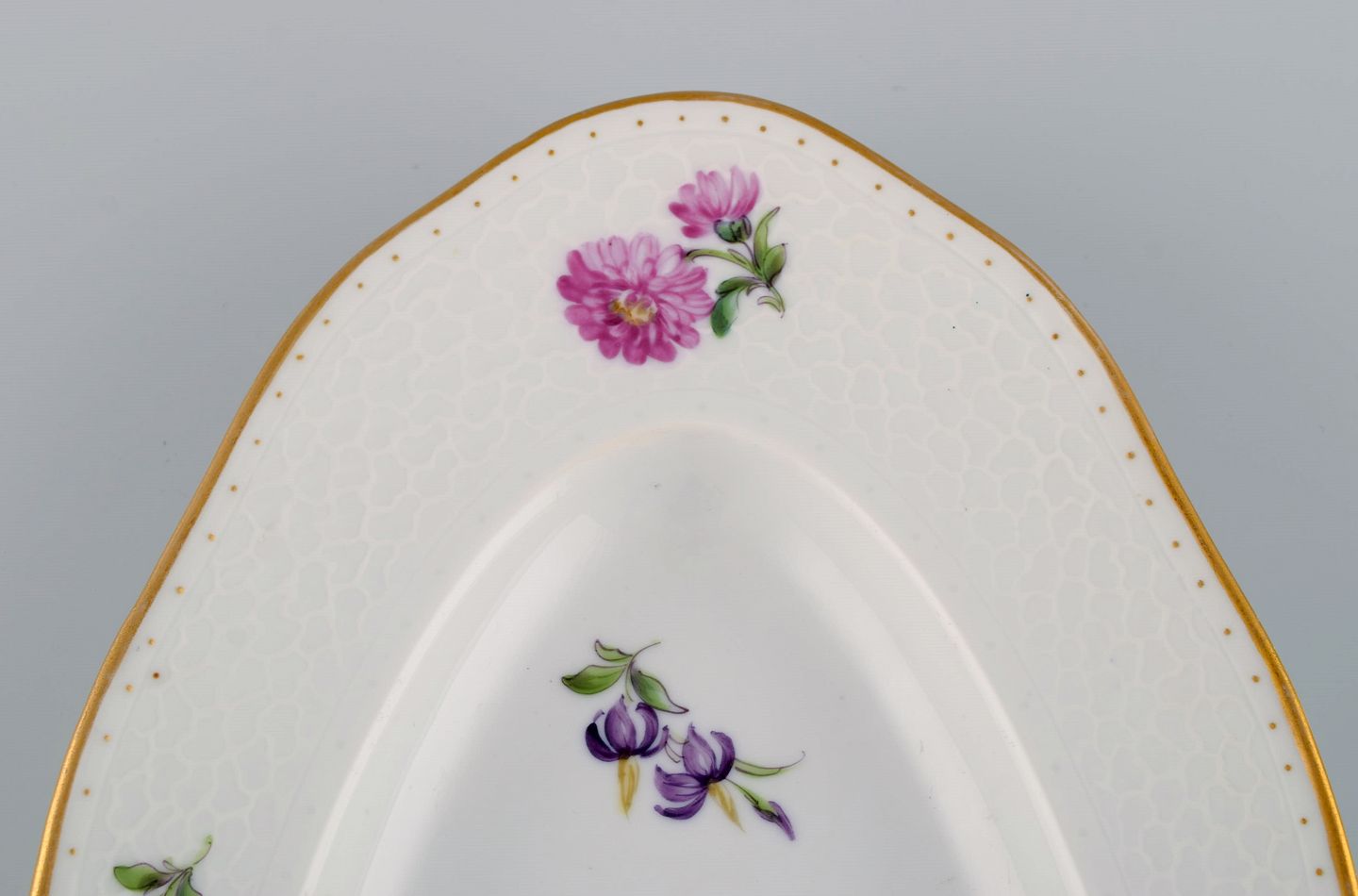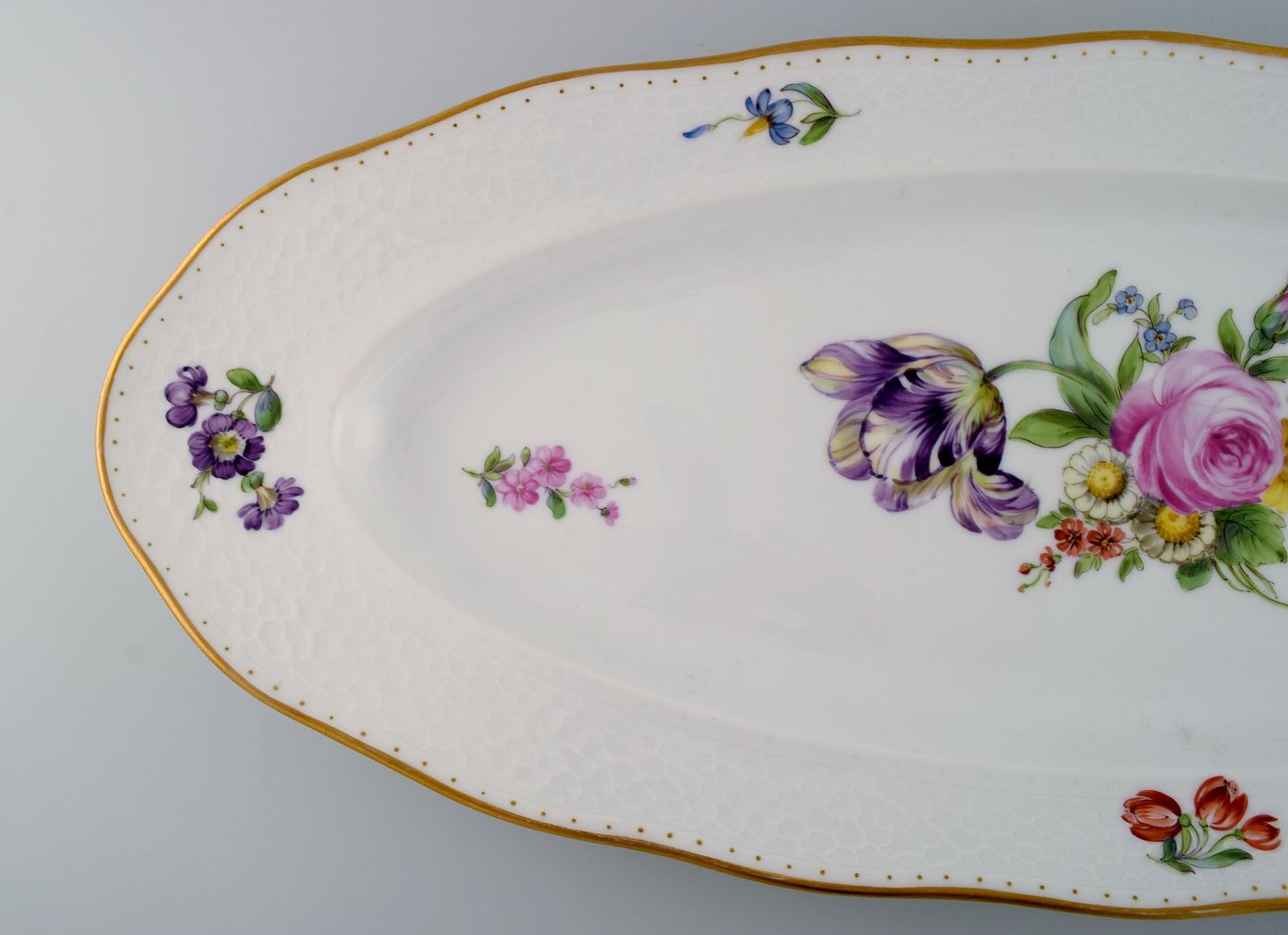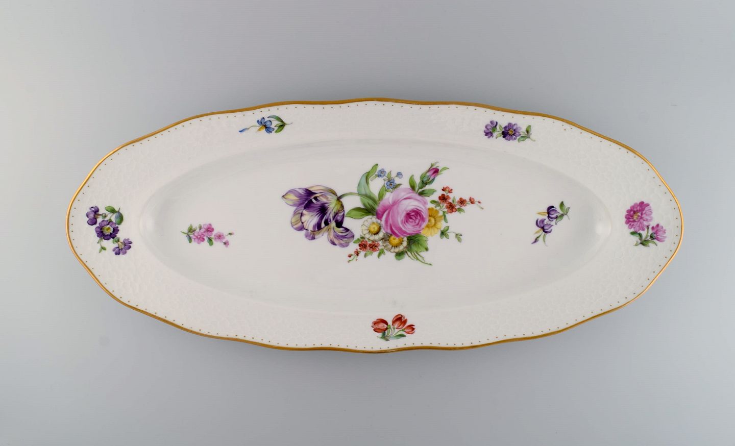 Royal Copenhagen Saksisk Blomst. Kolossalt fiskefad i porcelæn med håndmalede blomster og guldkant. 1800-tallet. Måler: 62 x 25 x 5 cm. I flot stand. Stemplet.
