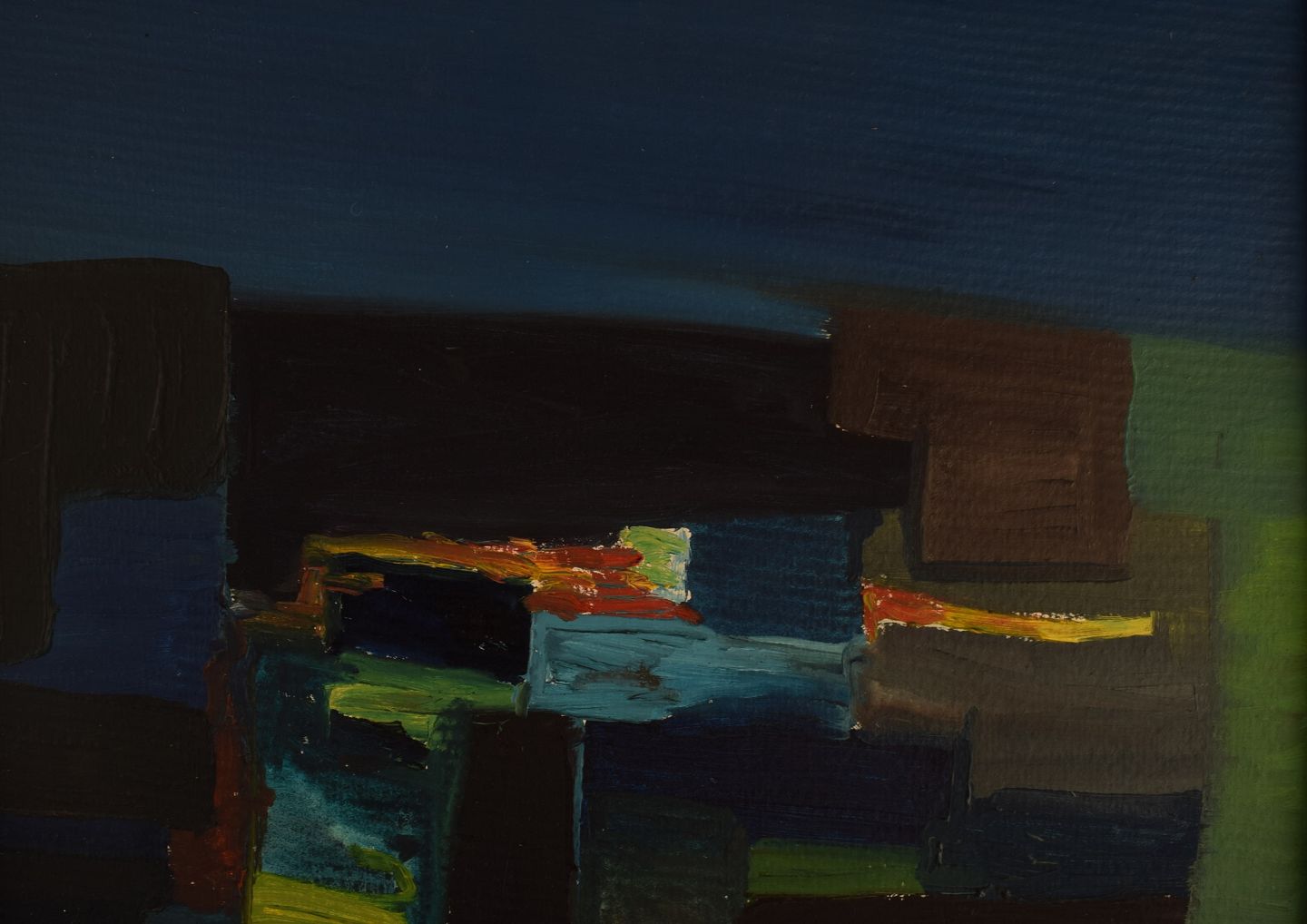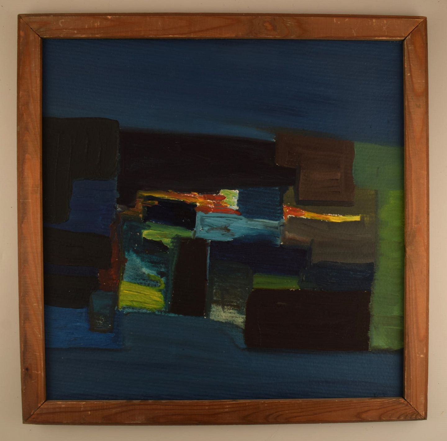 Ubekendt svensk kunstner. Olie på plade. Abstrakt komposition. Dateret 1968. Pladen måler: 58 x 58 cm. Rammen måler: 4,5 cm. I flot stand. Signeret og dateret.