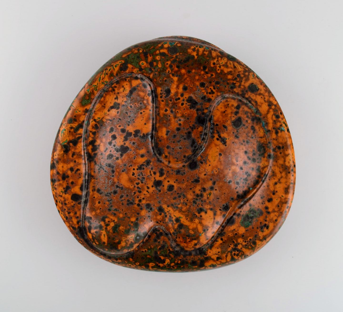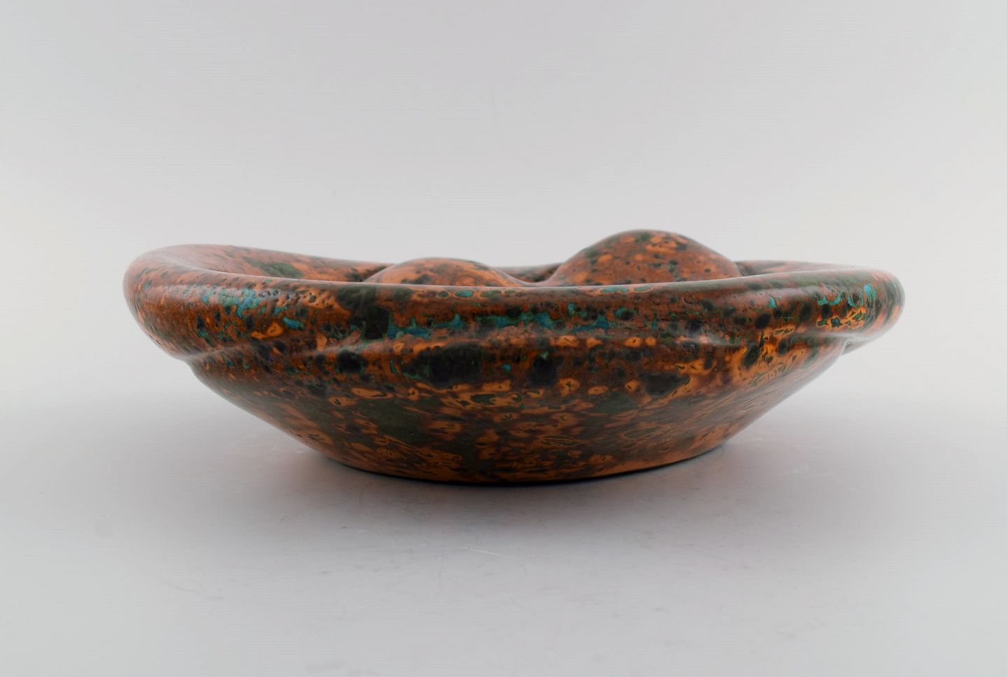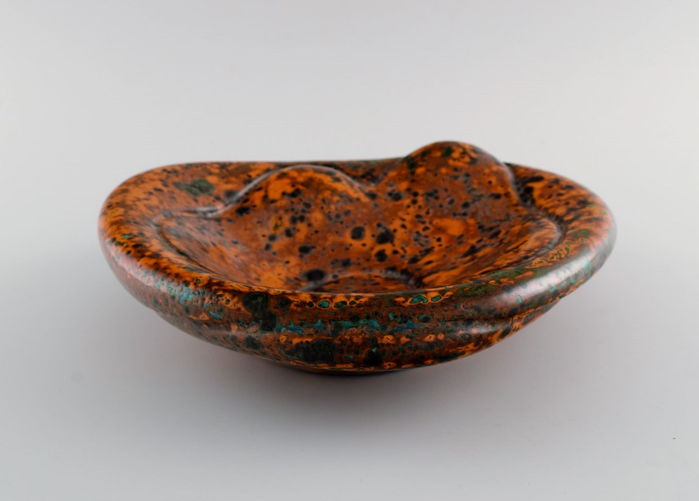 Hans Hedberg (1917-2007), Sverige. Unika skål i glaseret keramik fra Hedbergs eget værksted i Biot, Sydfrankrig. Smuk spættet glasur i orange nuancer. 1980'erne.