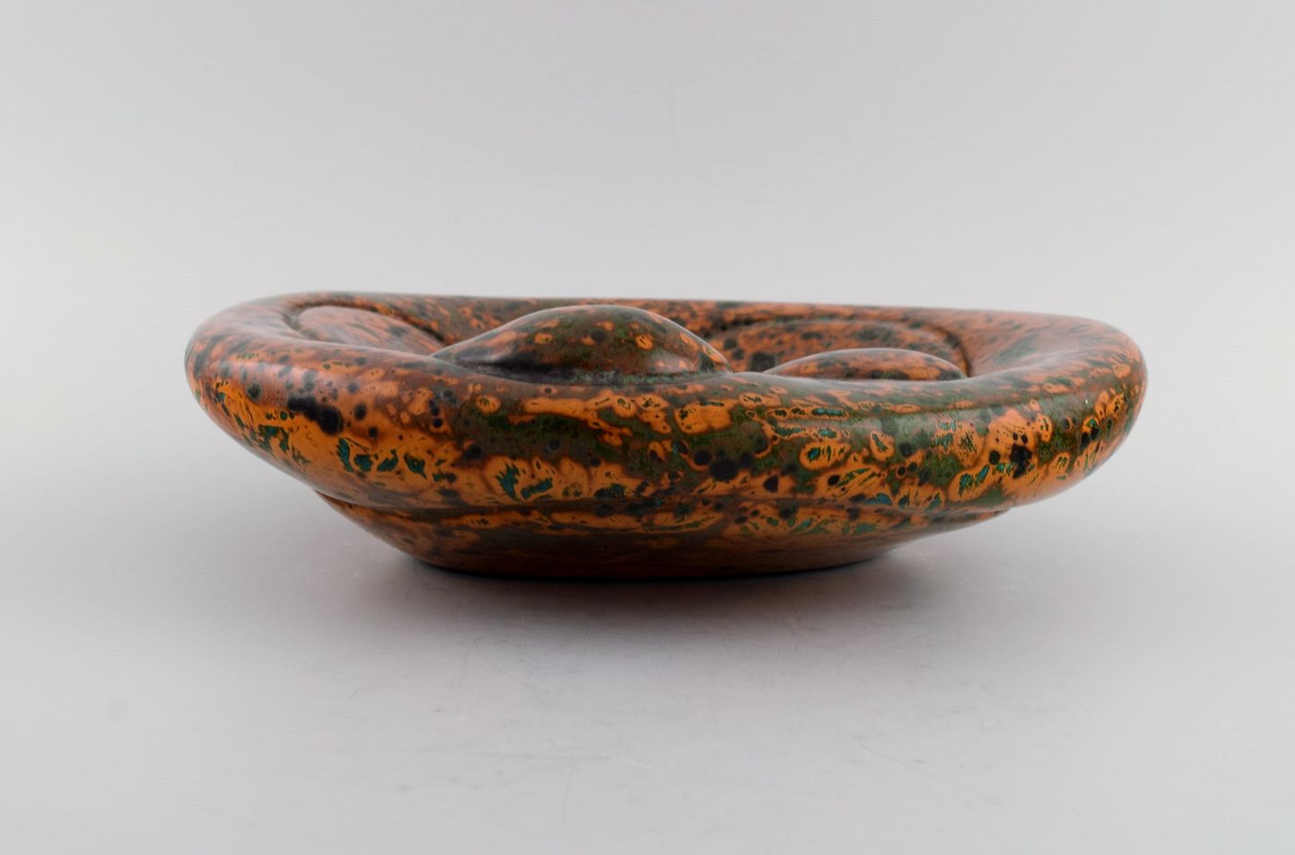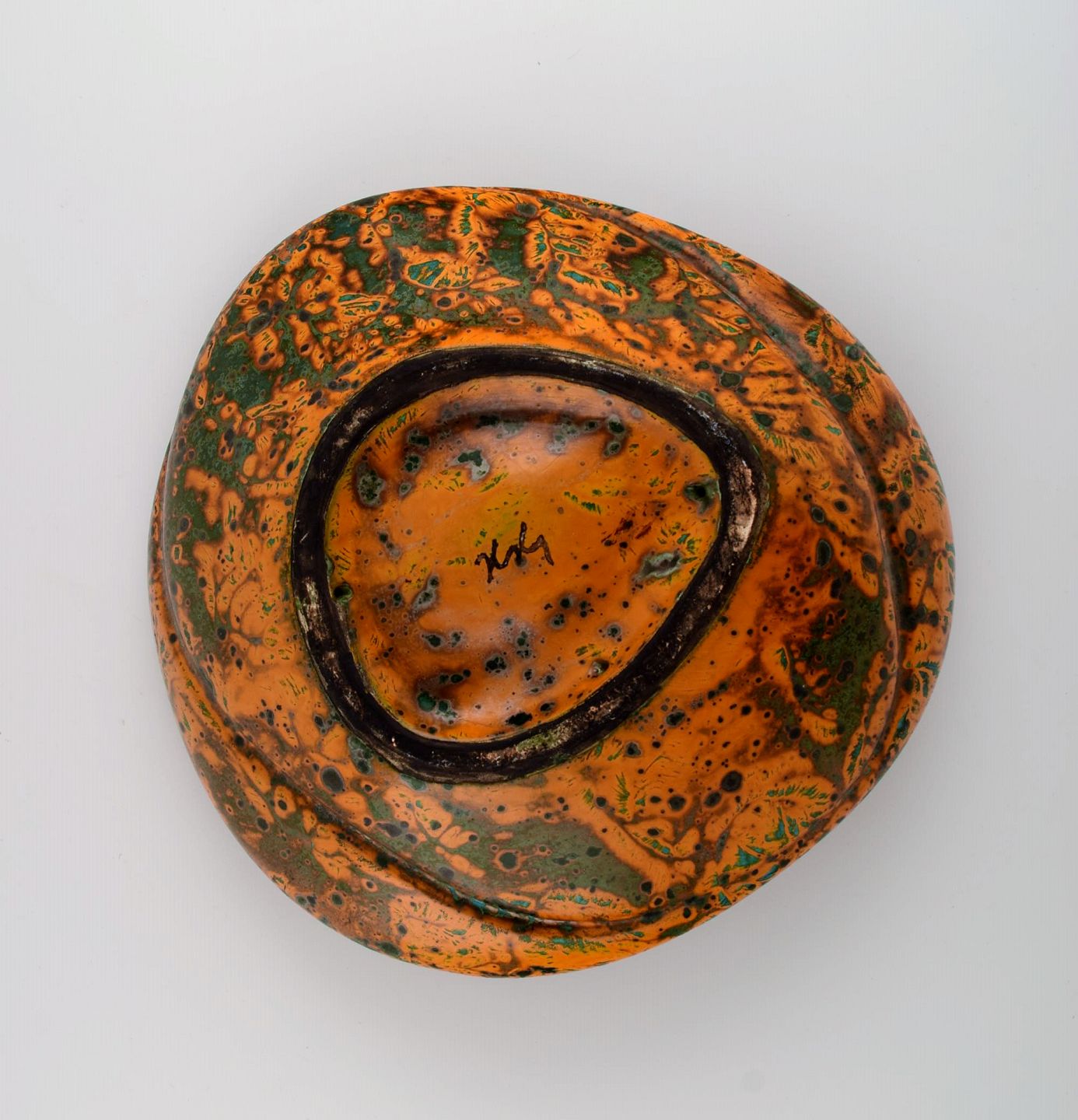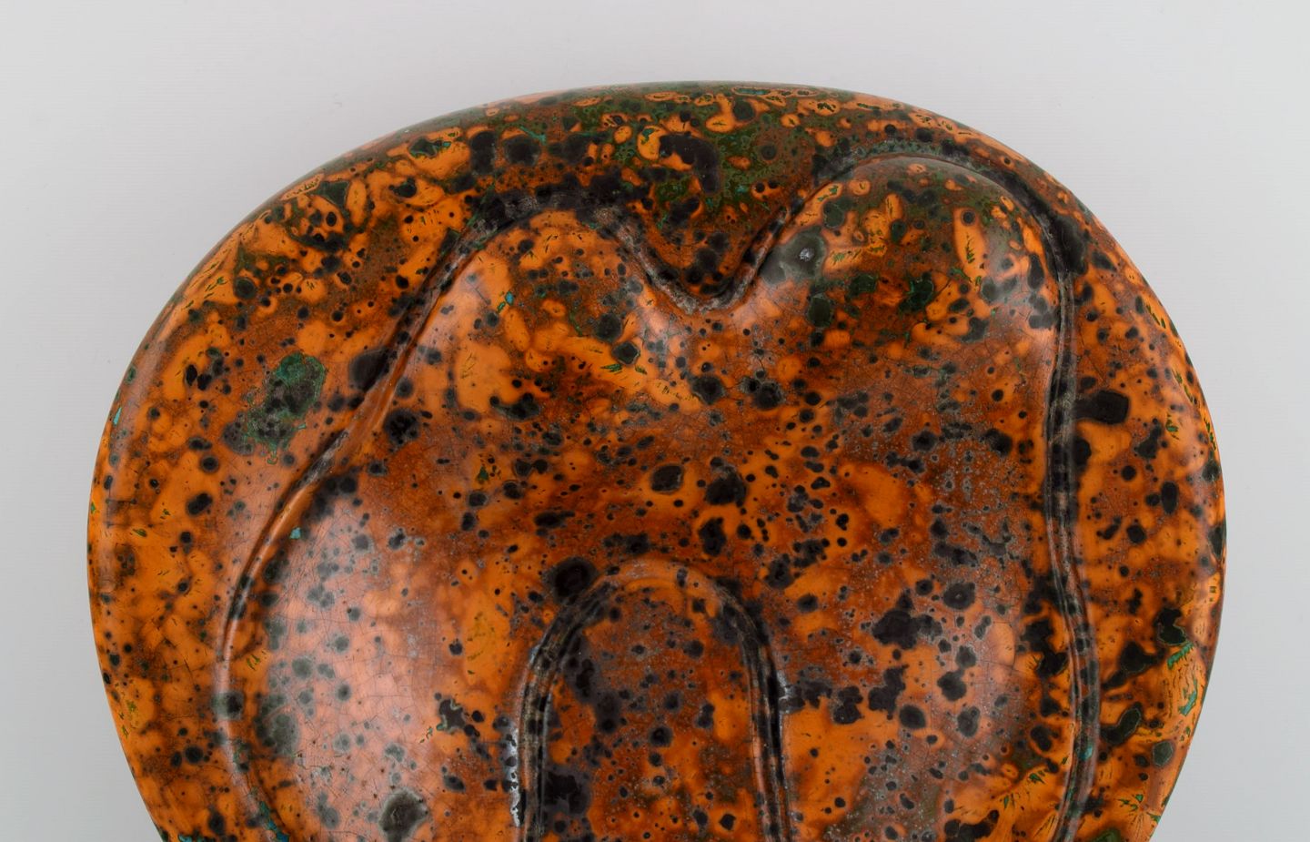 Hans Hedberg (1917-2007), Sverige. Unika skål i glaseret keramik fra Hedbergs eget værksted i Biot, Sydfrankrig. Smuk spættet glasur i orange nuancer. 1980'erne.