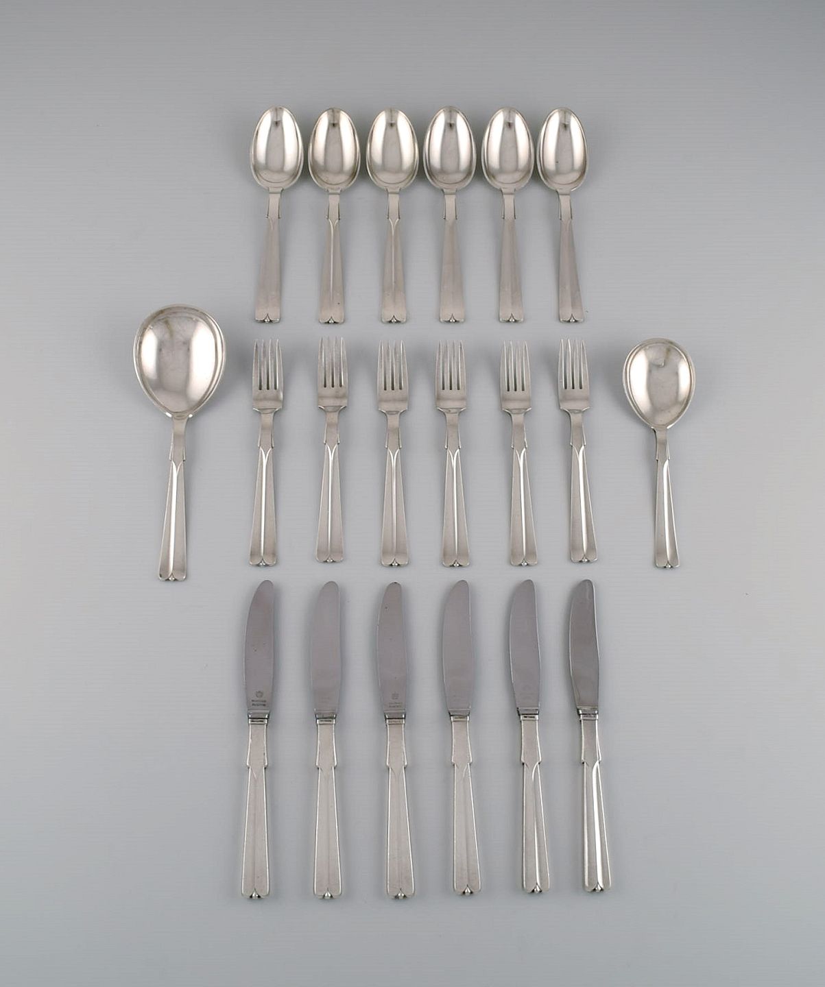 Bestående af seks middagsknive, seks middagsgafler, seks spiseskeer og to serveringsskeer.