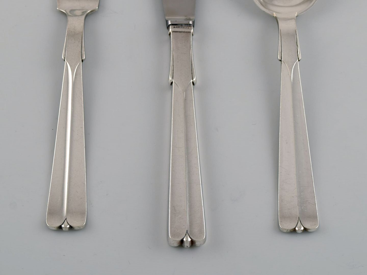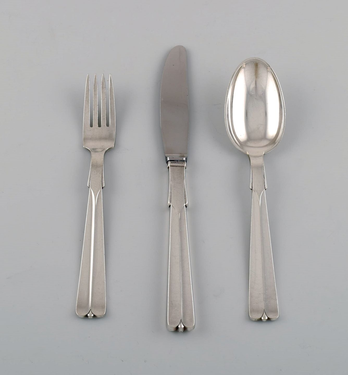 Hans Hansen sølvtøj Arvesølv nr. 7. Art deco middagsservice i tretårnet sølv til seks personer. 1930'erne.