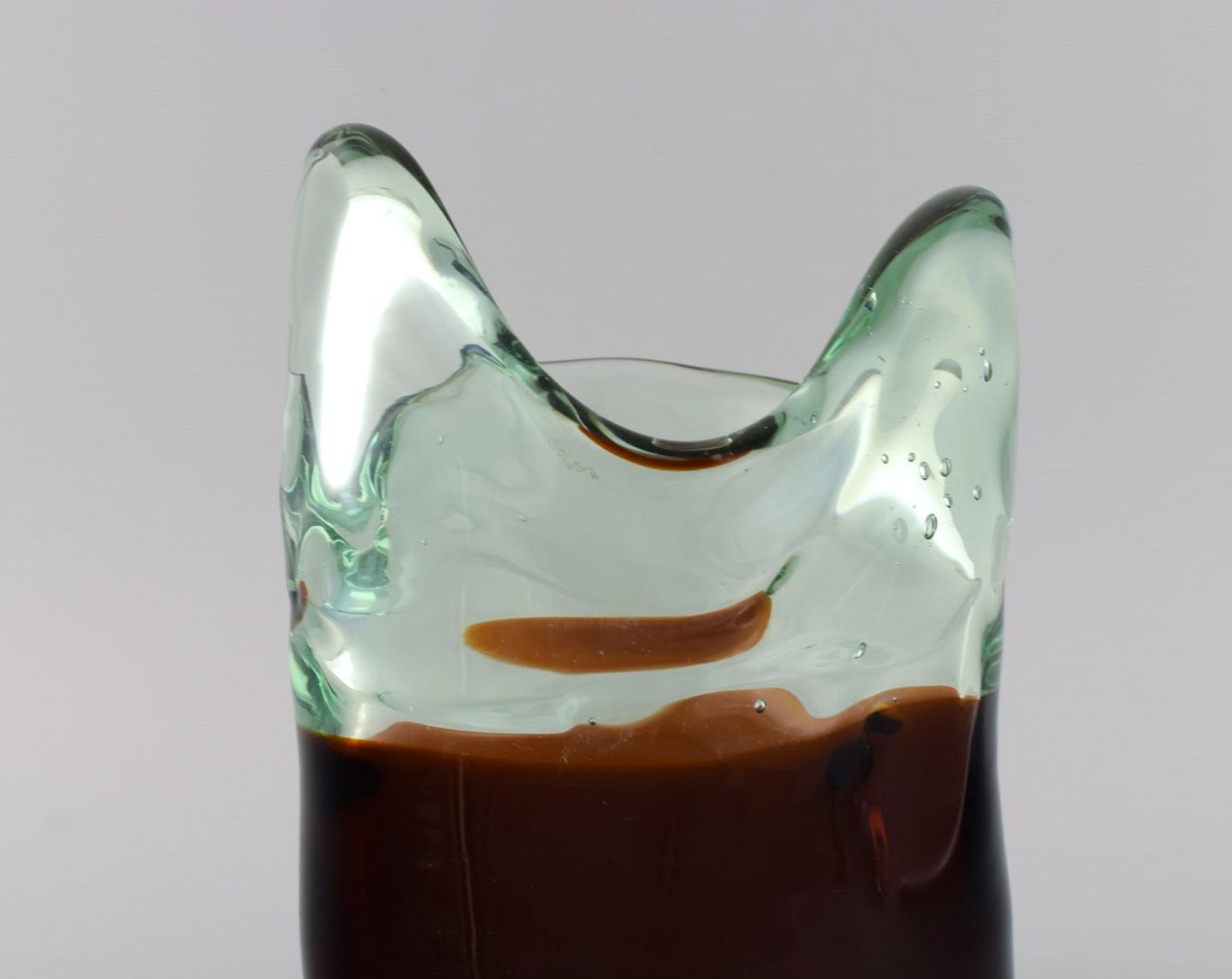 Stor Murano vase i mundblæst kunstglas med bølget kant. Italiensk design, 1960'erne. Måler: 21,5 x 17 cm I flot stand.
