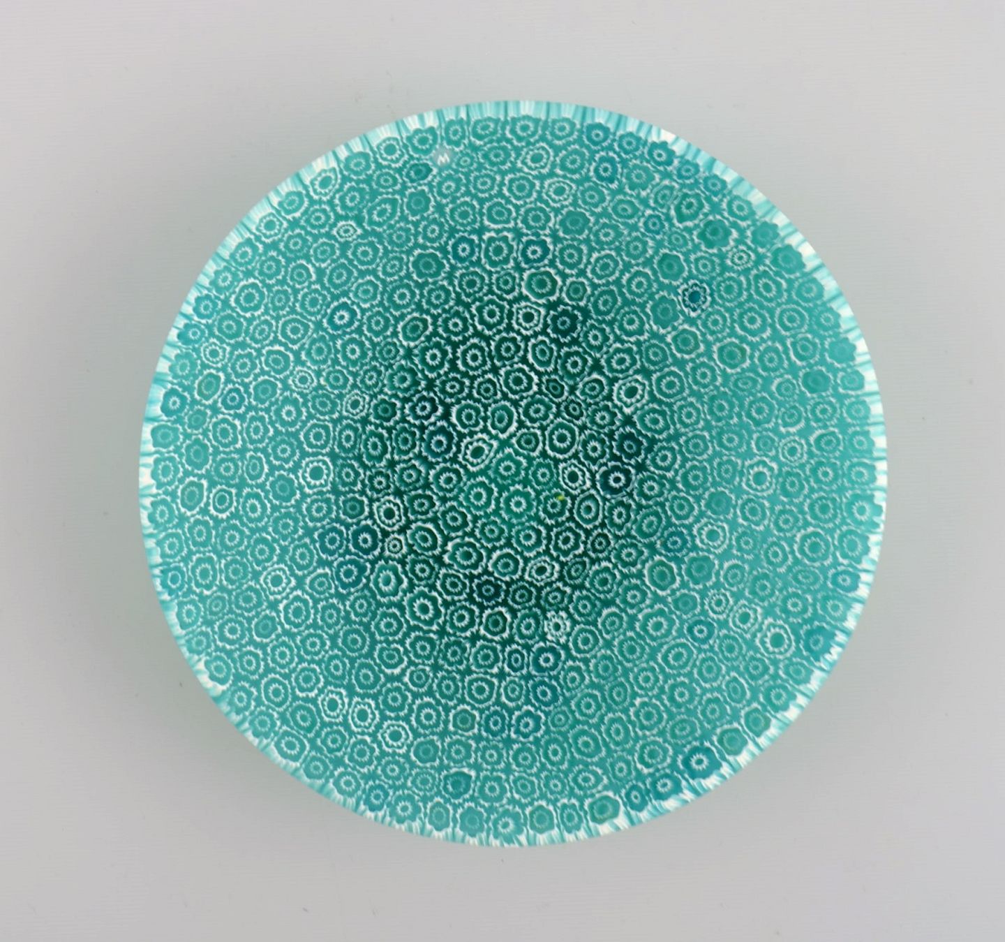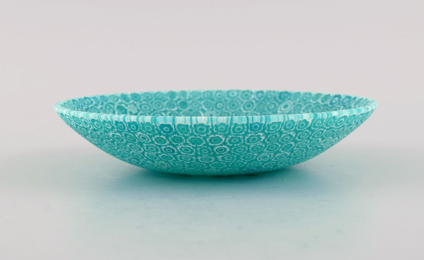 Murano Mille Fiori skål i turkis mundblæst kunstglas. Italiensk design, 1960'erne. Måler: 14 x 3 cm I flot stand.