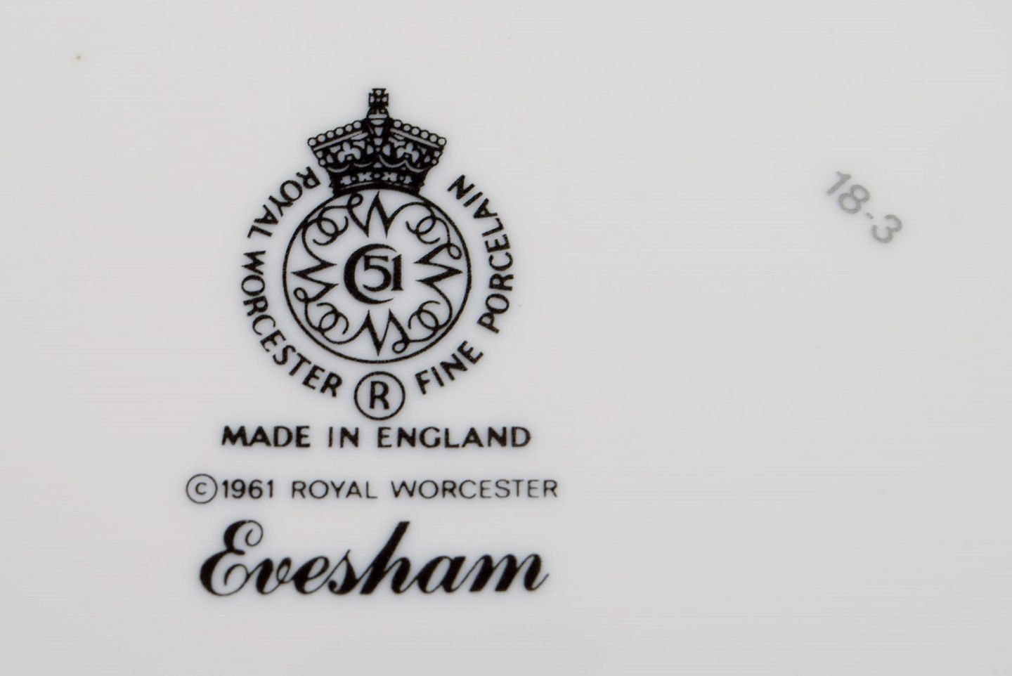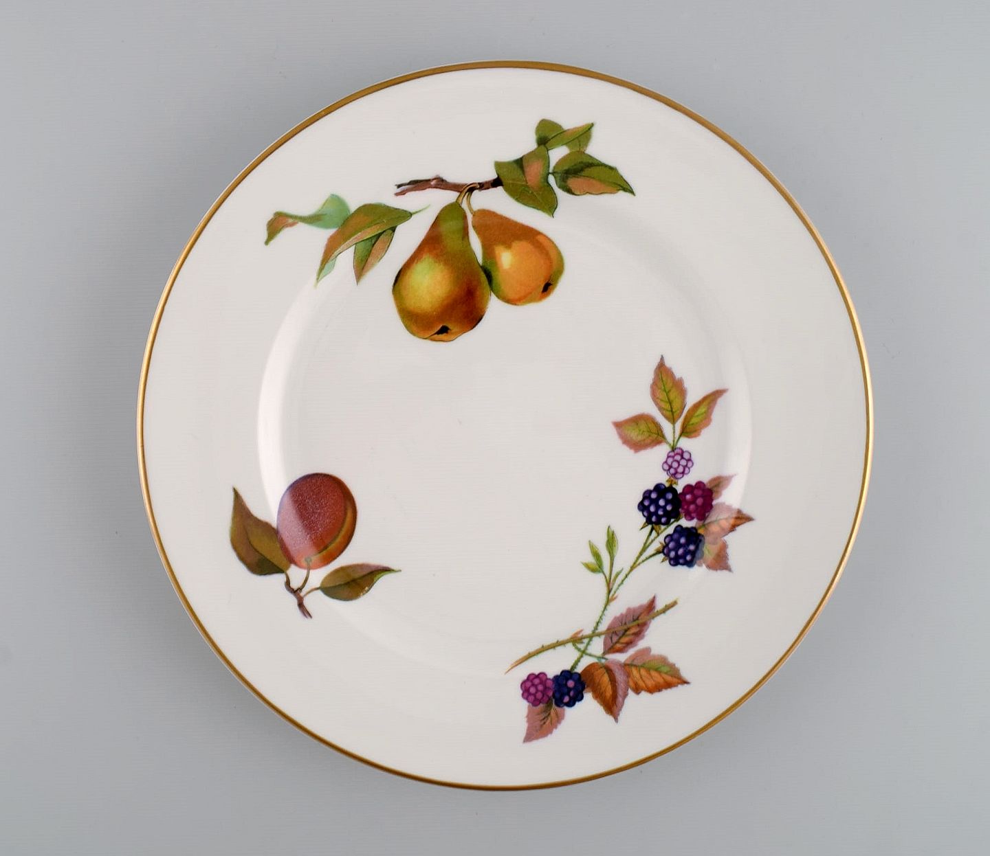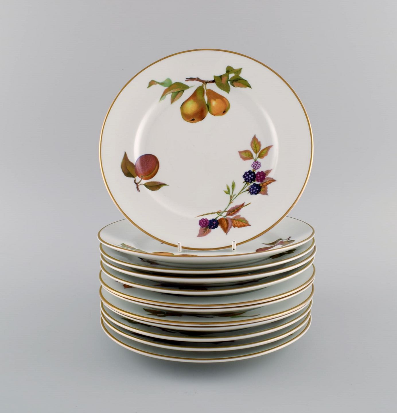 Royal Worcester, England. Tolv Evesham frokosttallerkener i porcelæn dekoreret med frugter og guldkant. 1980'erne. Diameter: 21 cm. I flot stand. Stemplet.