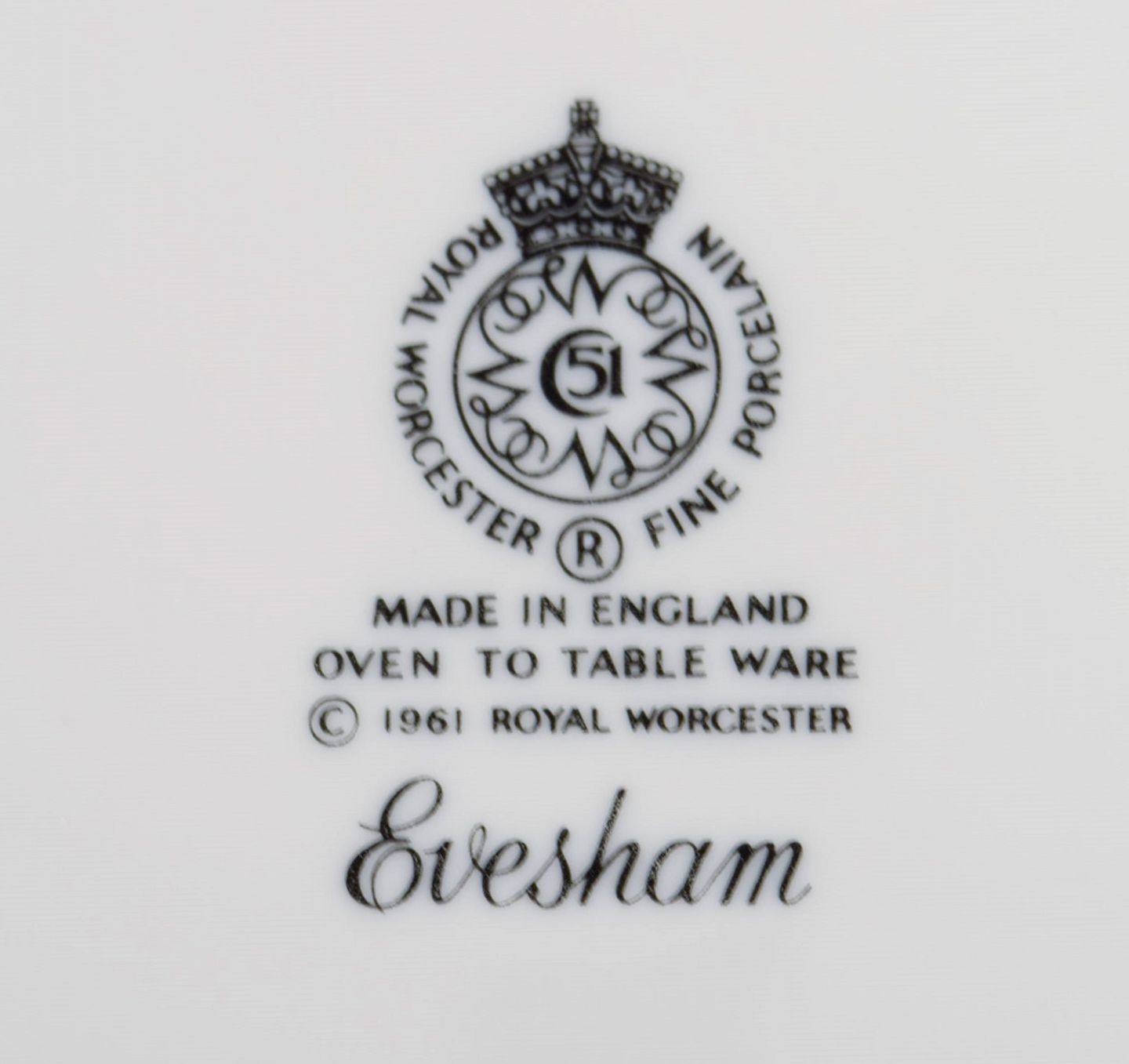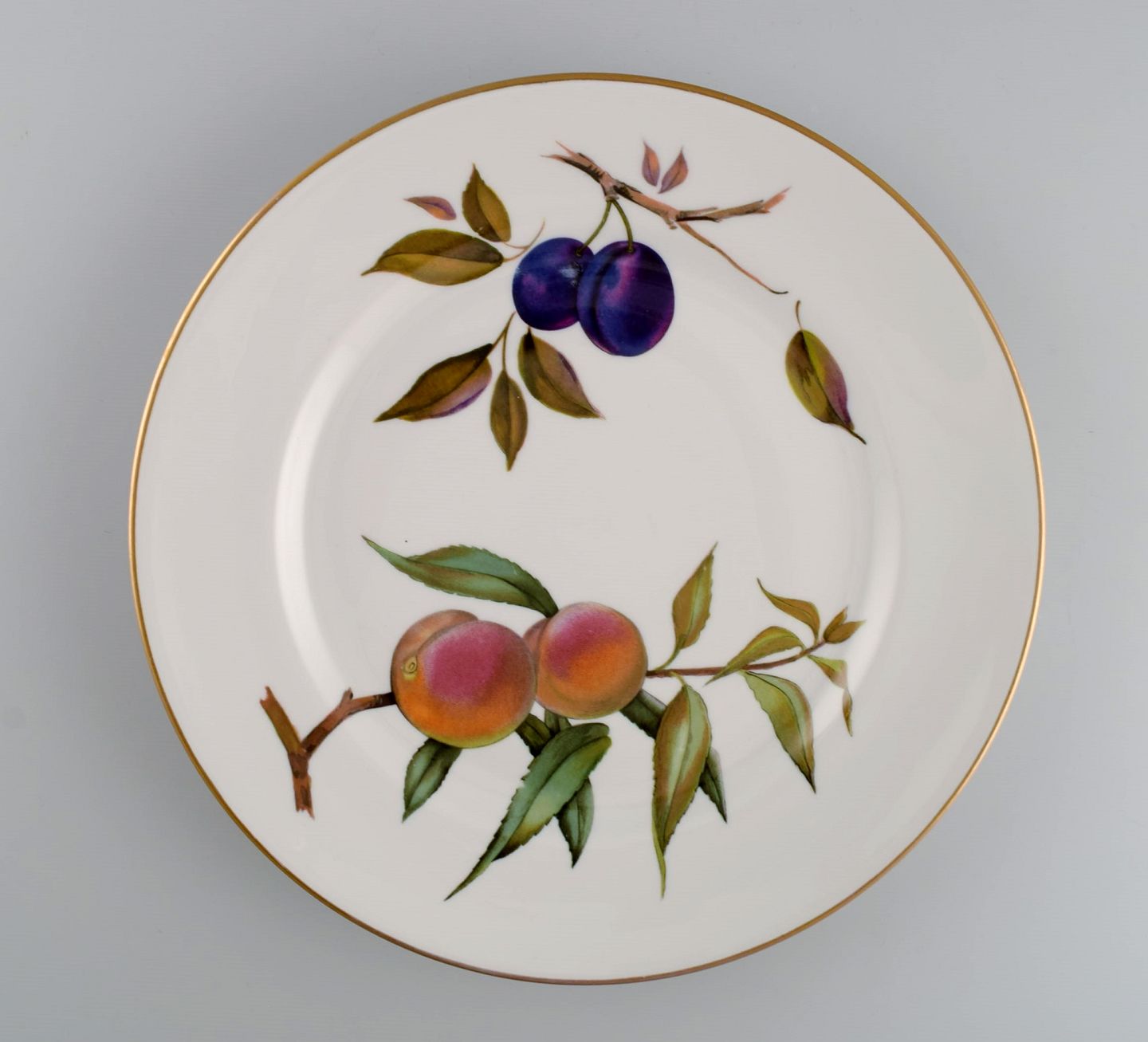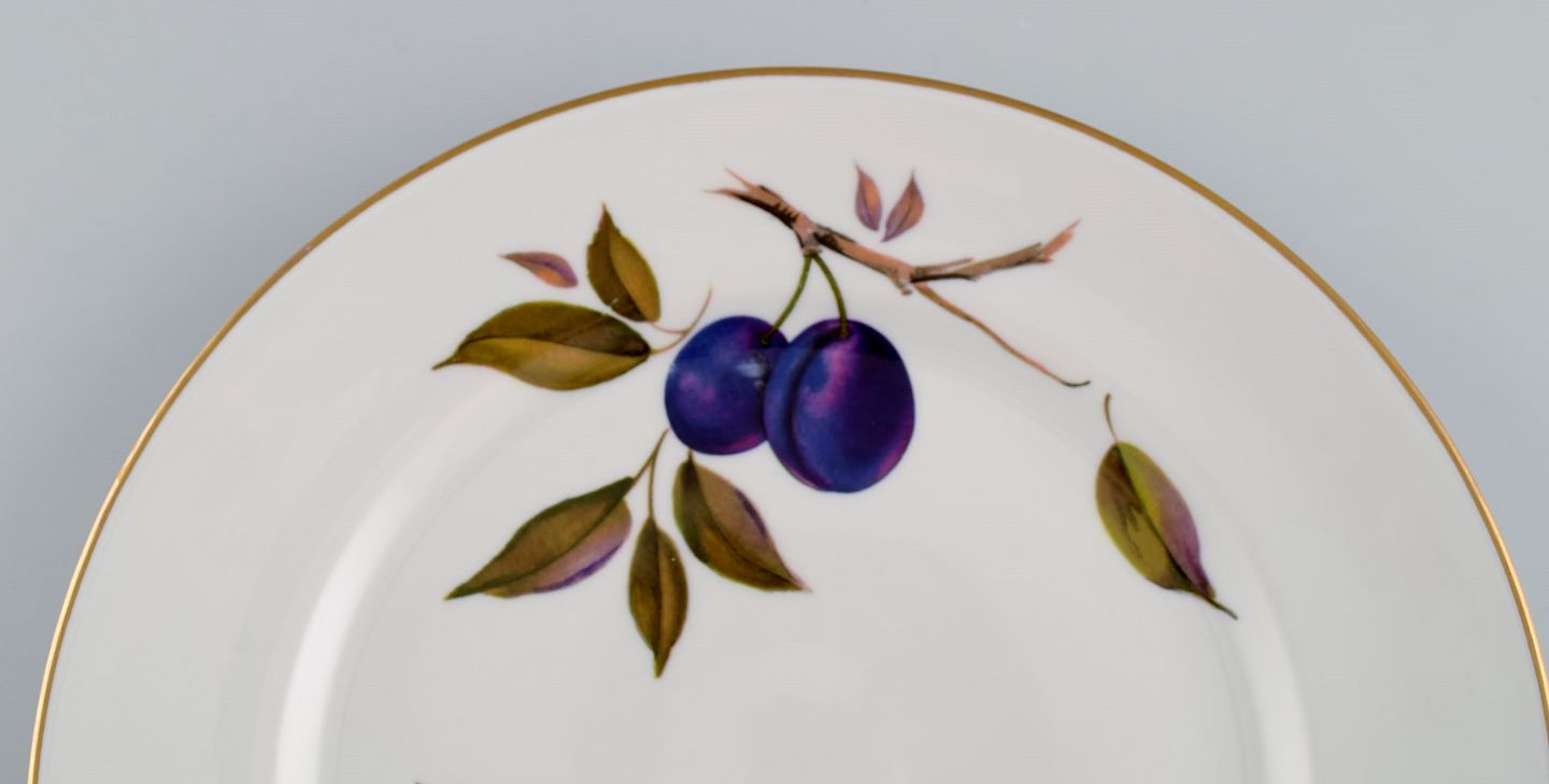 Royal Worcester, England. Fem Evesham middagstallerkener i porcelæn dekoreret med frugter og guldkant. 1980'erne. Diameter: 25,5 cm. I flot stand. Stemplet.