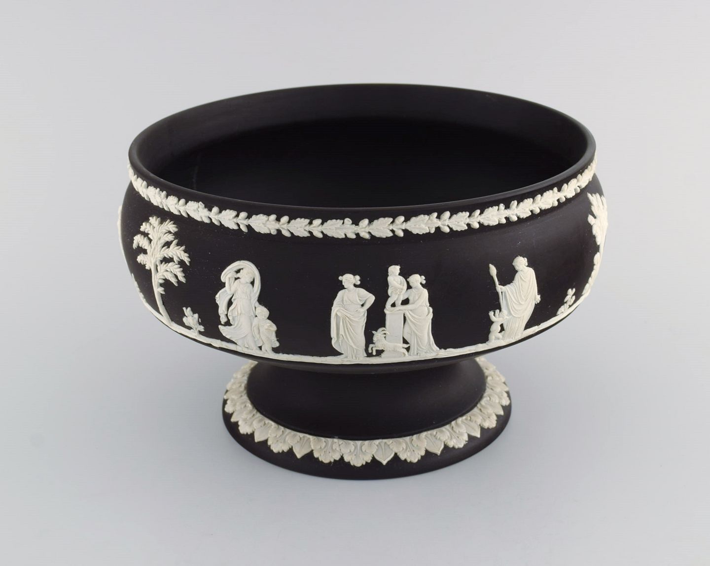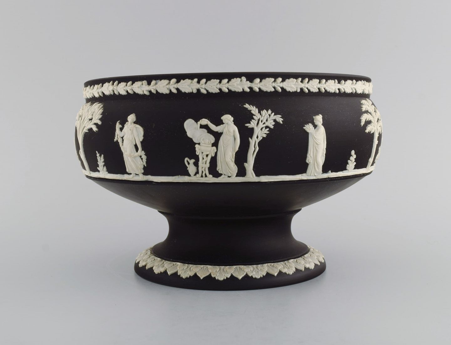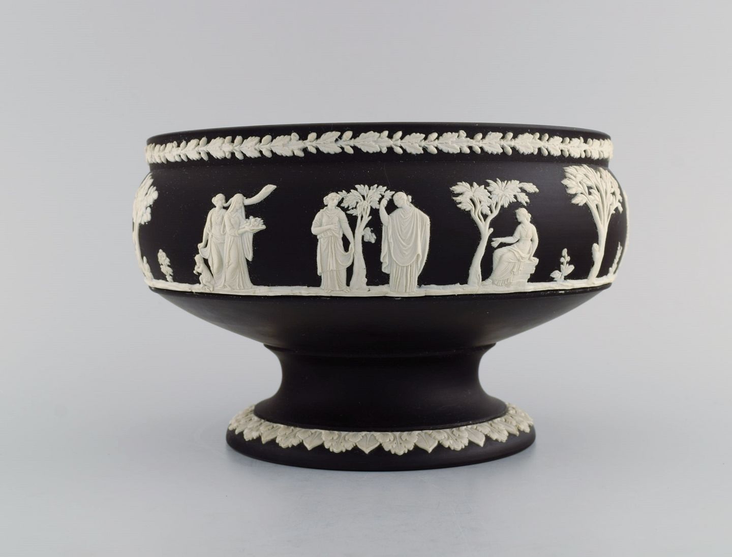Wedgwood, England. Sjælden skål i sort stentøj med klassicistiske scener i hvidt. 1930'erne. Måler: 22 x 15 cm. Stemplet. I flot stand.