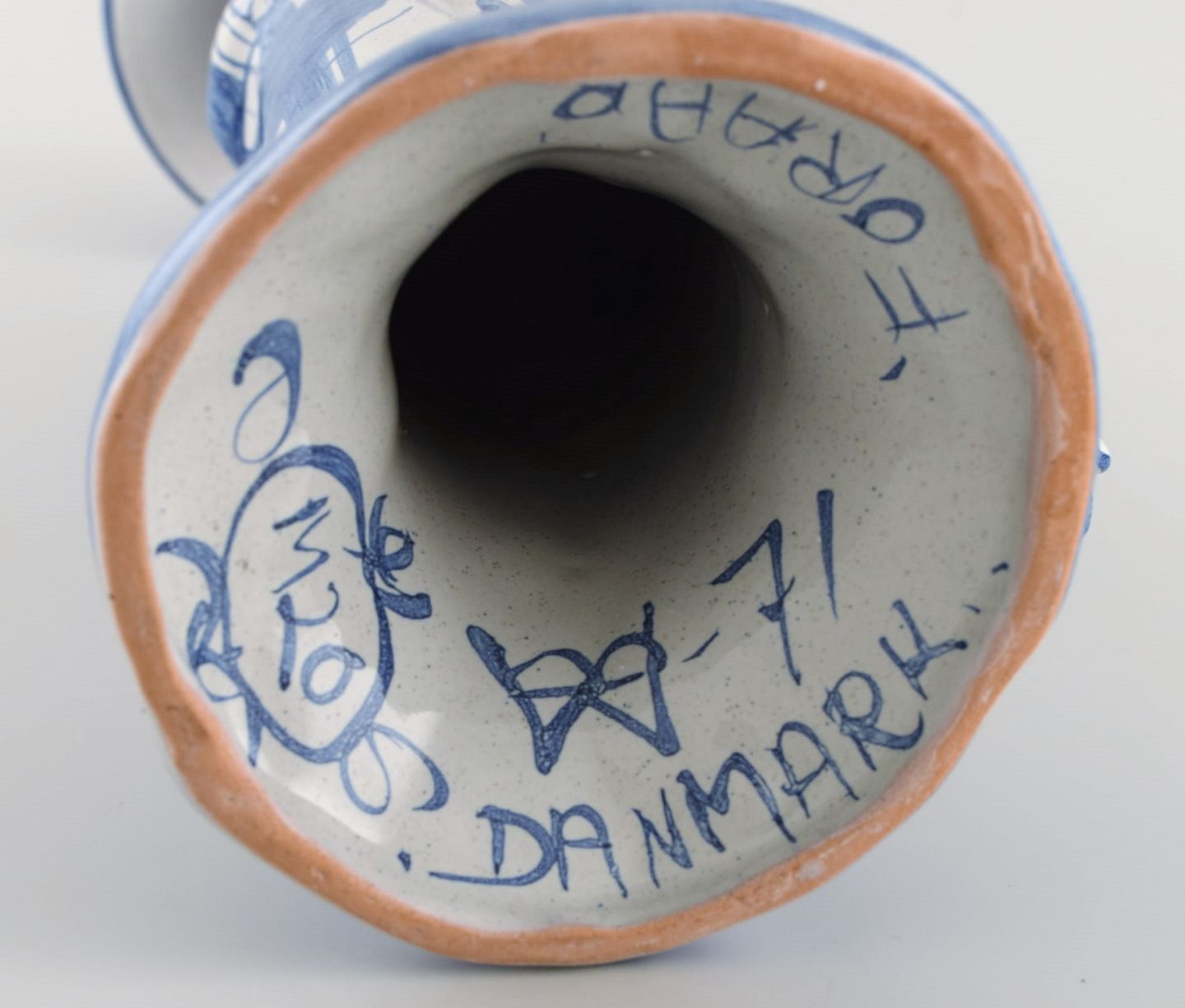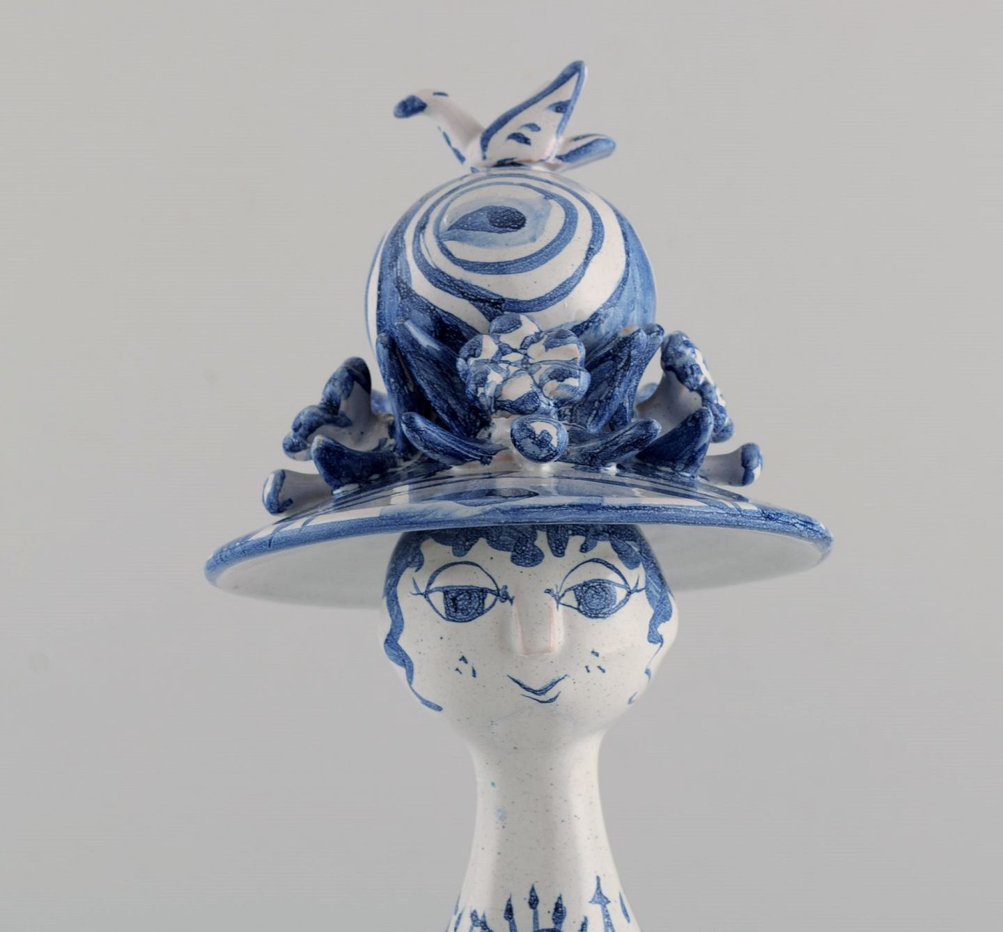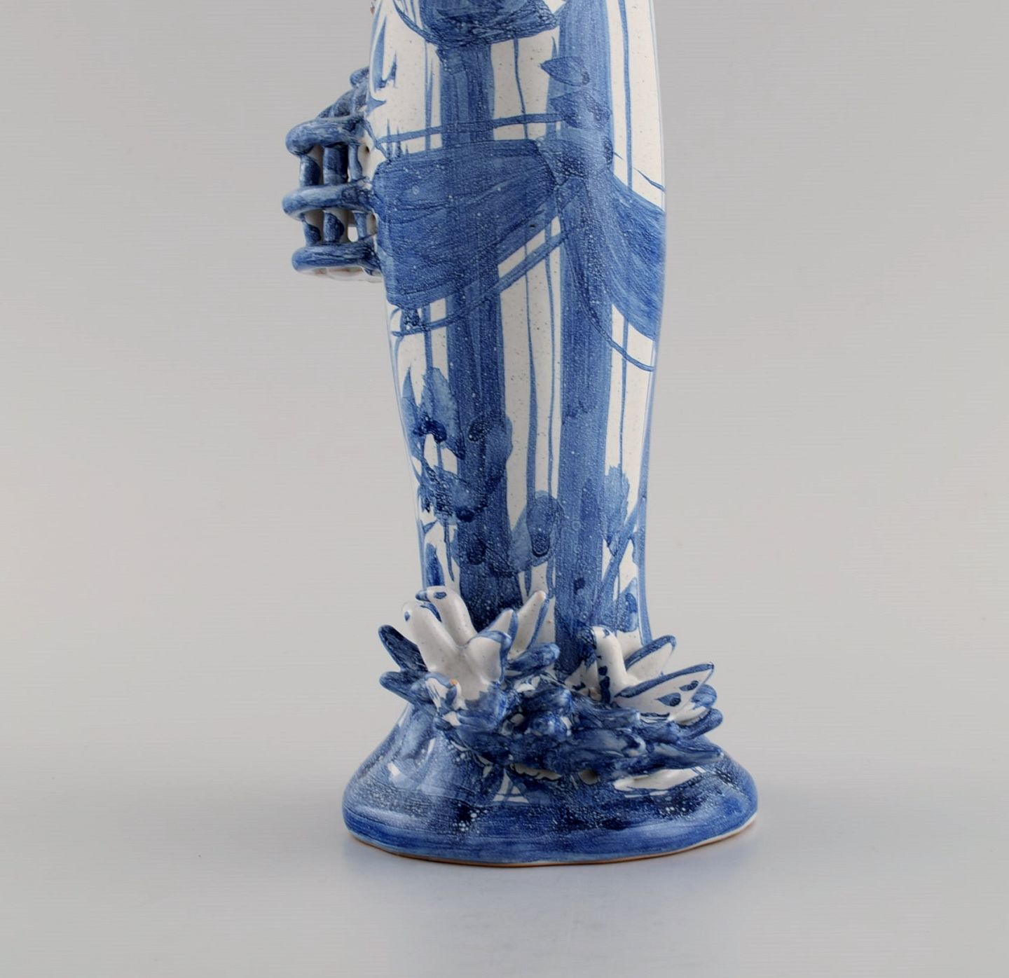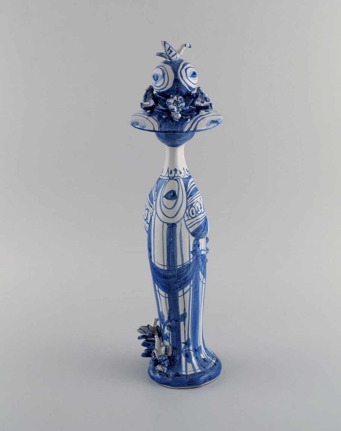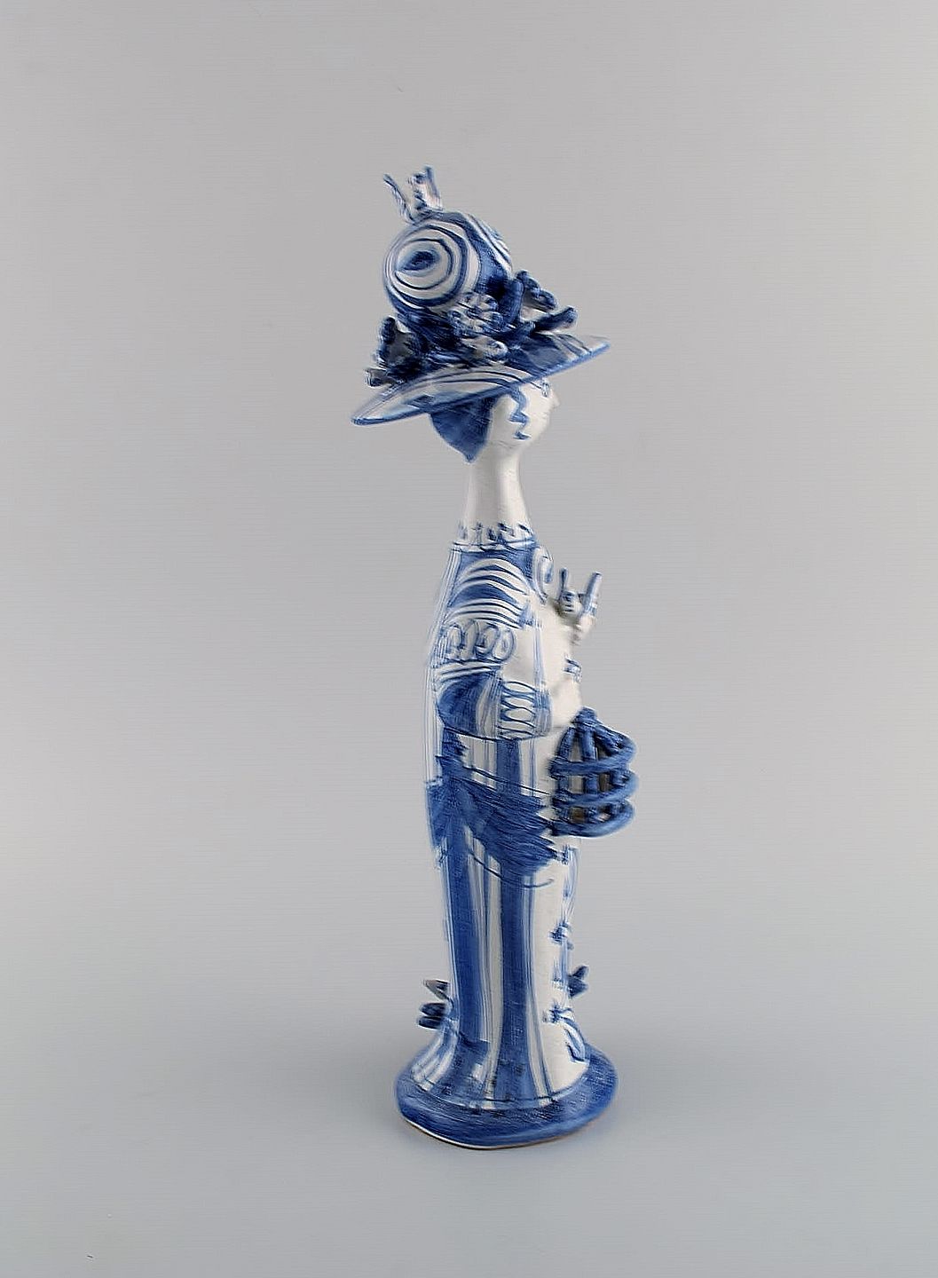 Bjørn Wiinblad unik keramik figur. "Forår" i blå "Årstiderne" fra 1971. Signeret og dateret. Måler: 36 x 10 cm. I flot stand.