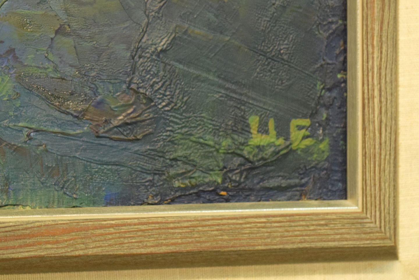 Ulla Ekman-Dahlbäck (1924-2011), svensk kunstner. Stort maleri. Olie på lærred. Abstrakt komposition. 1960'erne. Lærredet måler: 108 x 63 cm. Rammen måler: 5 cm. I flot stand. Signeret.