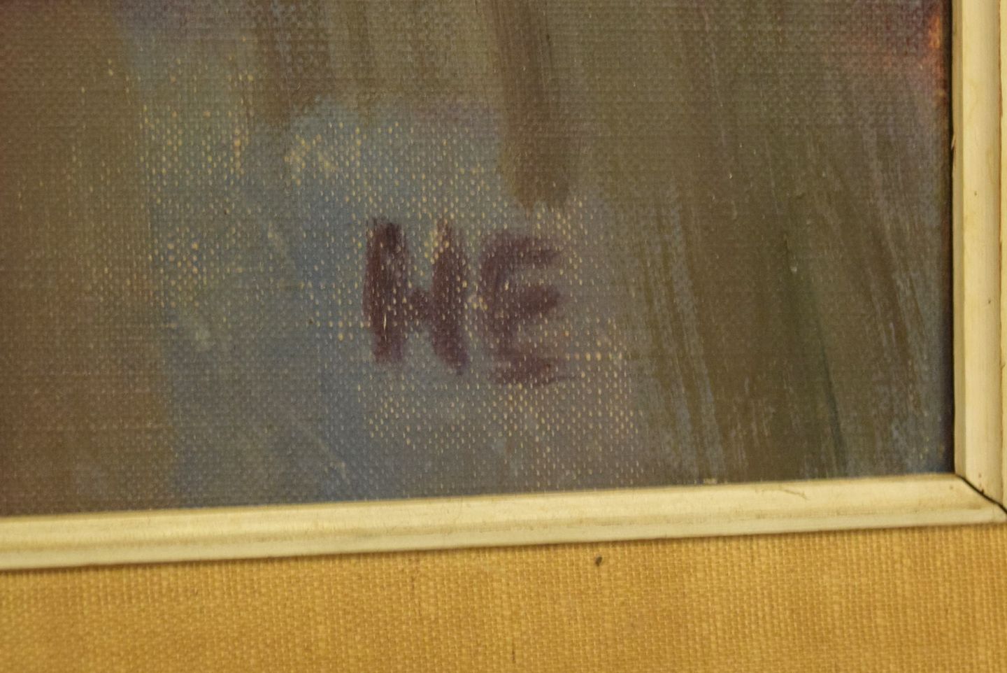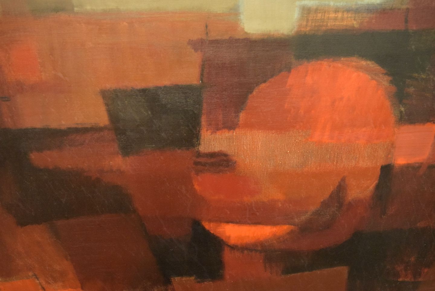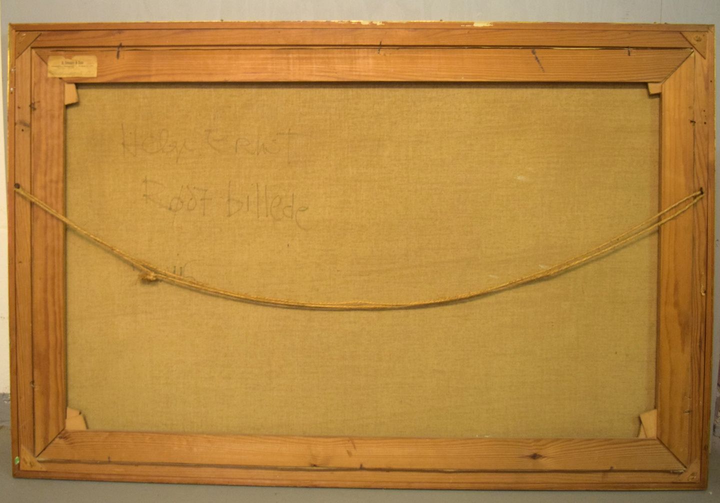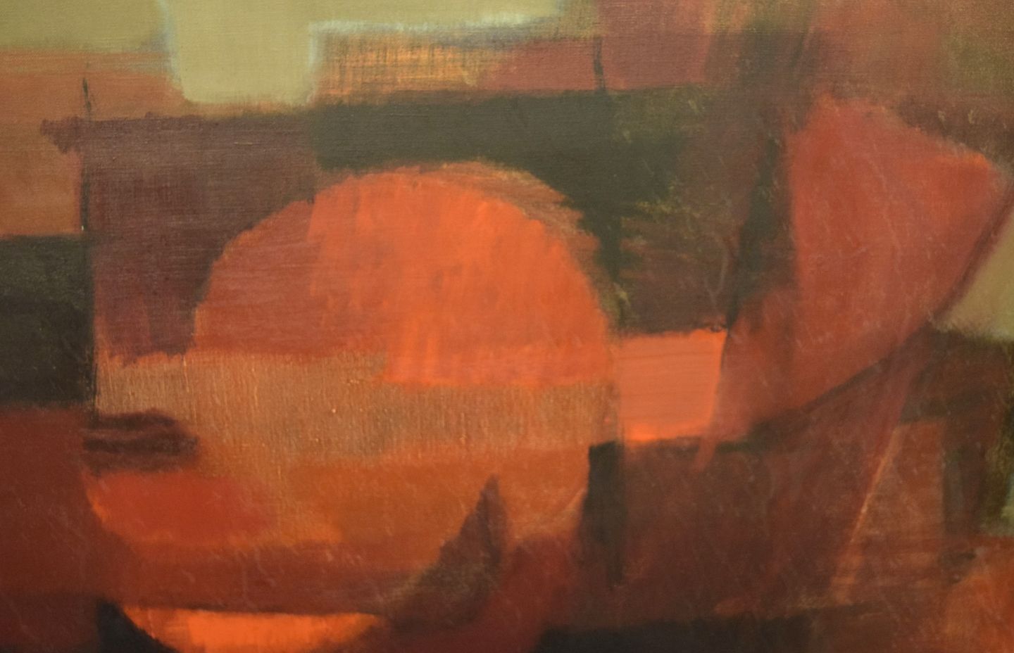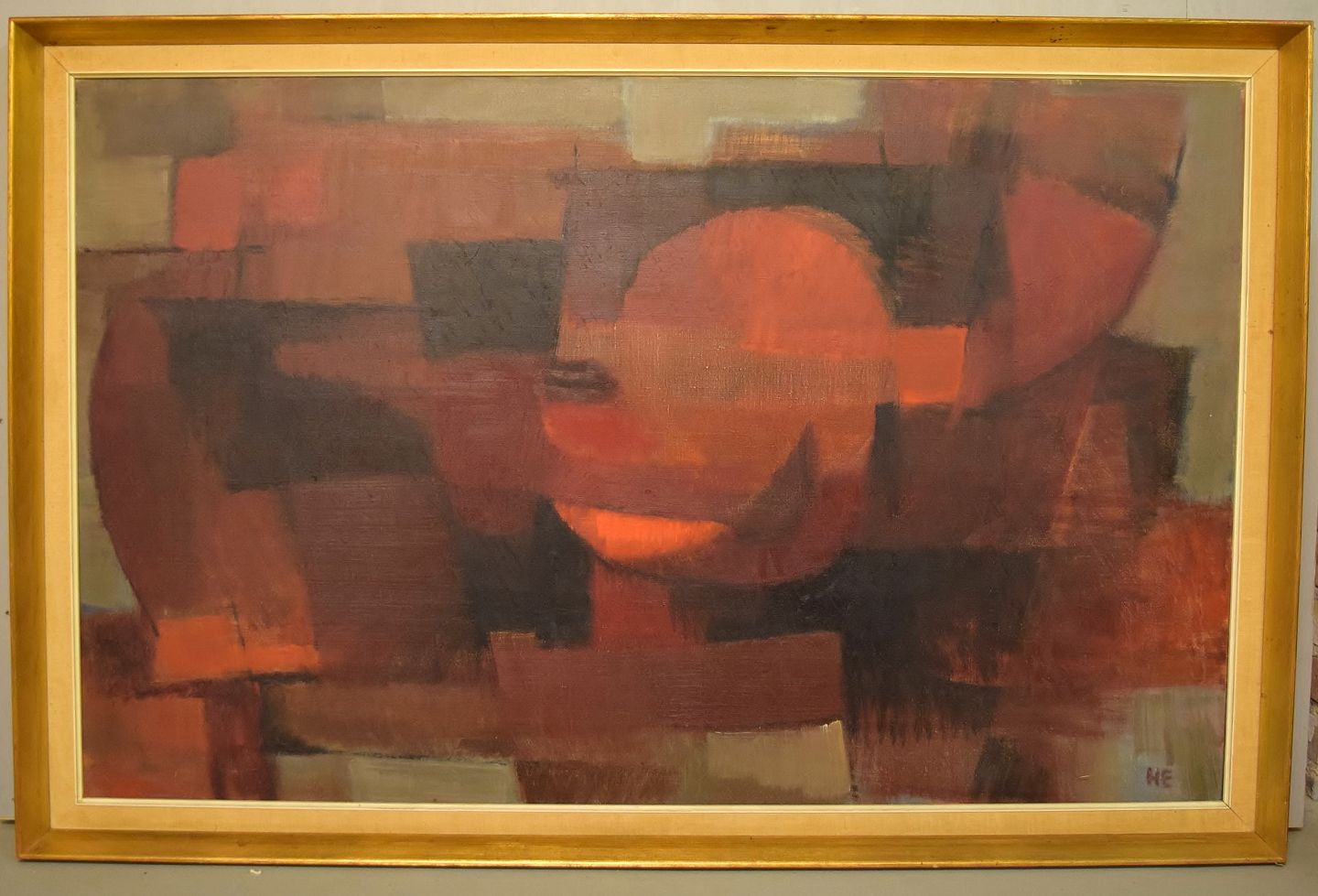 Helge Ernst (1916-1991), dansk kunstner. Stort maleri. Olie på lærred. Abstrakt komposition. 1970'erne.