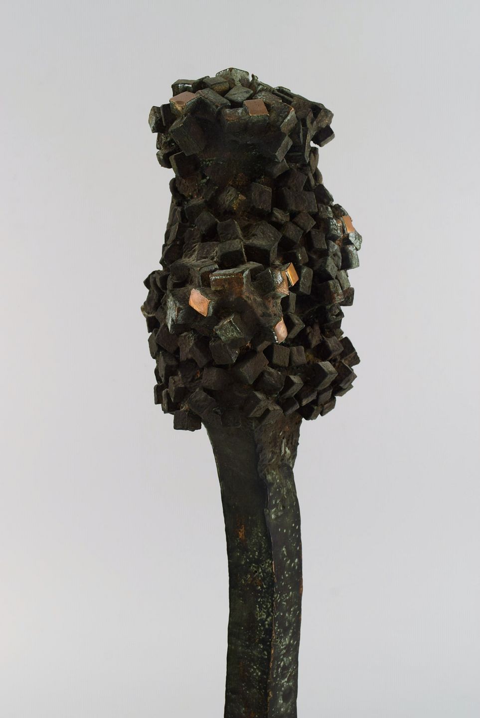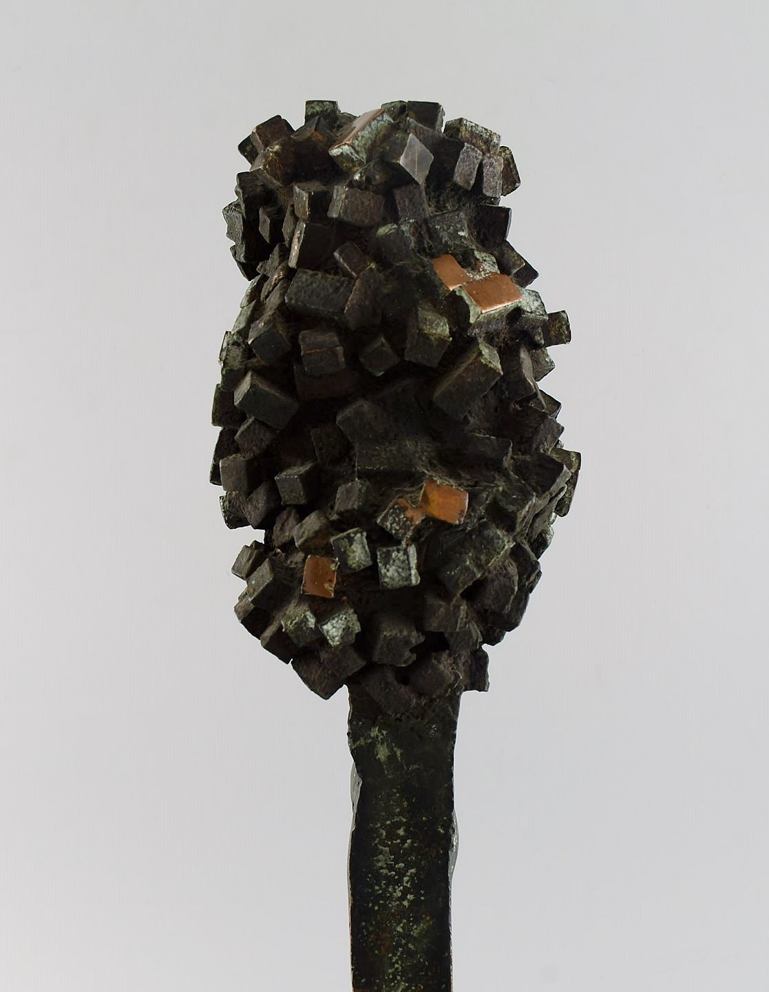 Max Seidenfaden (f. 1947), Danmark. "Gestalt". Organisk skulptur af rå, poleret og eloxeret bronze. Udgået fra galleri Max Seidenfaden. Cirka 1985. Usigneret. Måler: 48 cm. x 12 cm. I flot stand.
