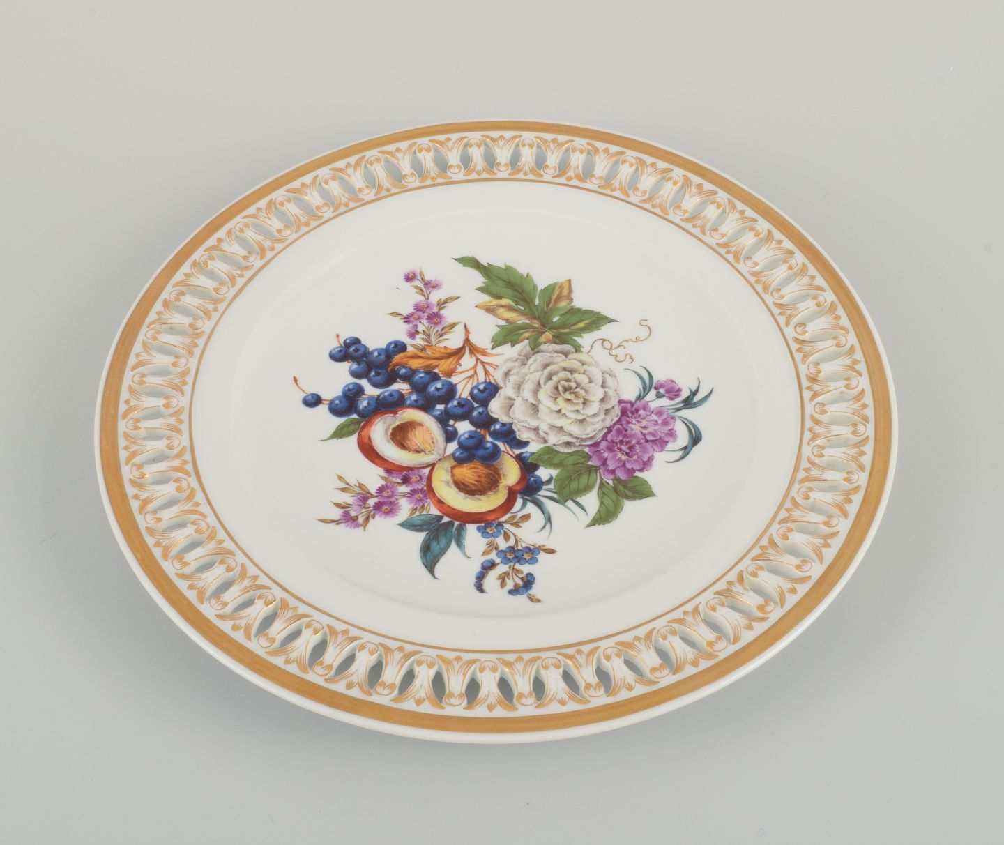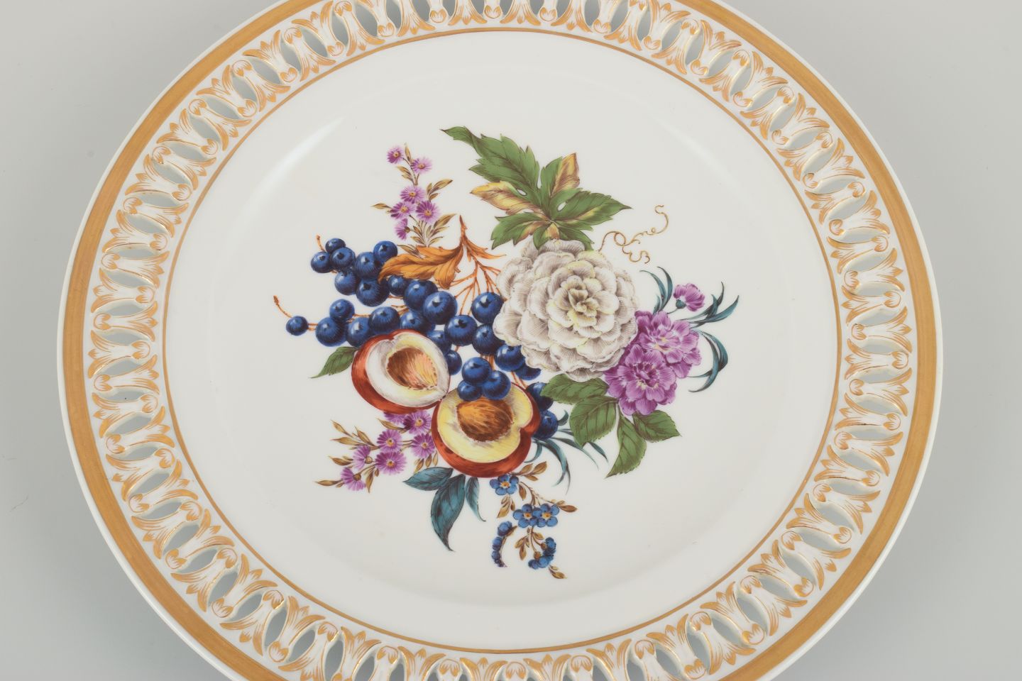 Antik Meissen gennembrudt tallerken i håndmalet porcelæn med blomster og gulddekoration. Sent 1800tallet. Måler: D 24,5 X H 3,0 I flot stand. 2. Sortering.